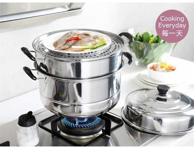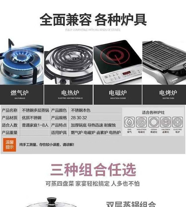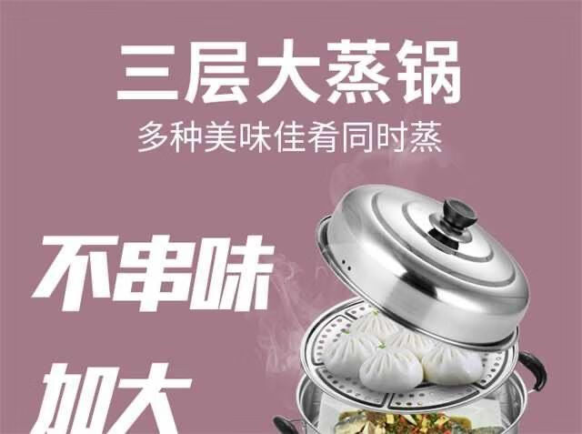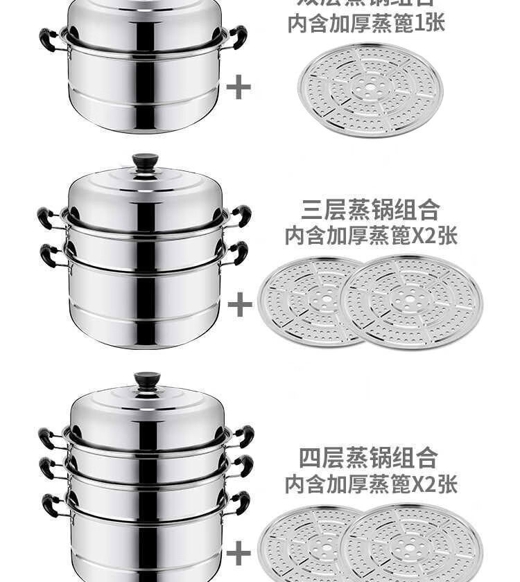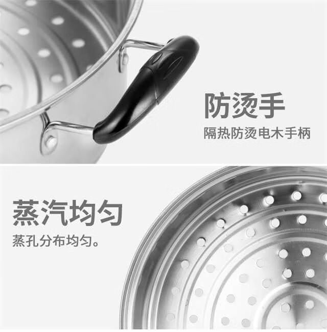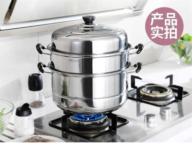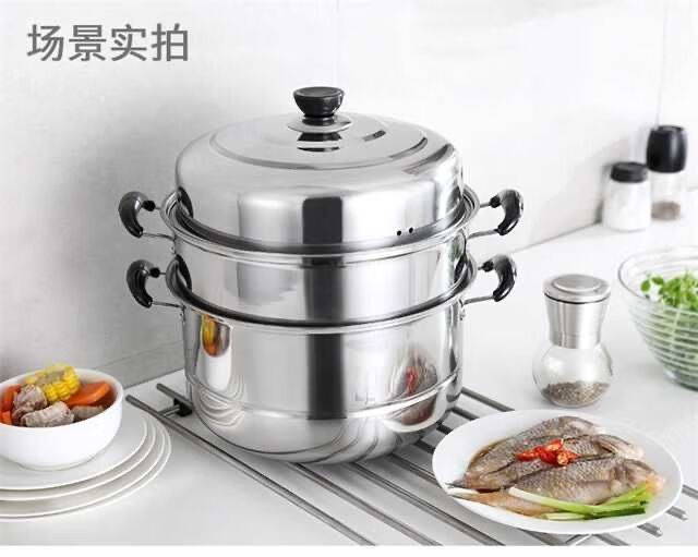 Stainless steel three-layer double 2-layer thickened steamer soup pot magnetic stove gas pot universal stove 30cm 2-layer universal stove