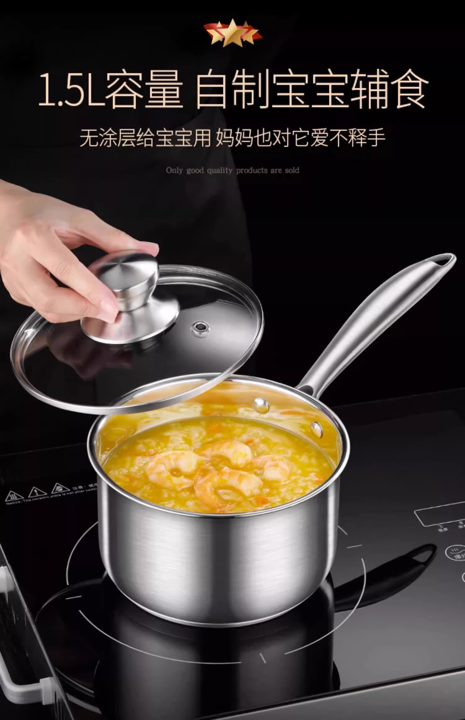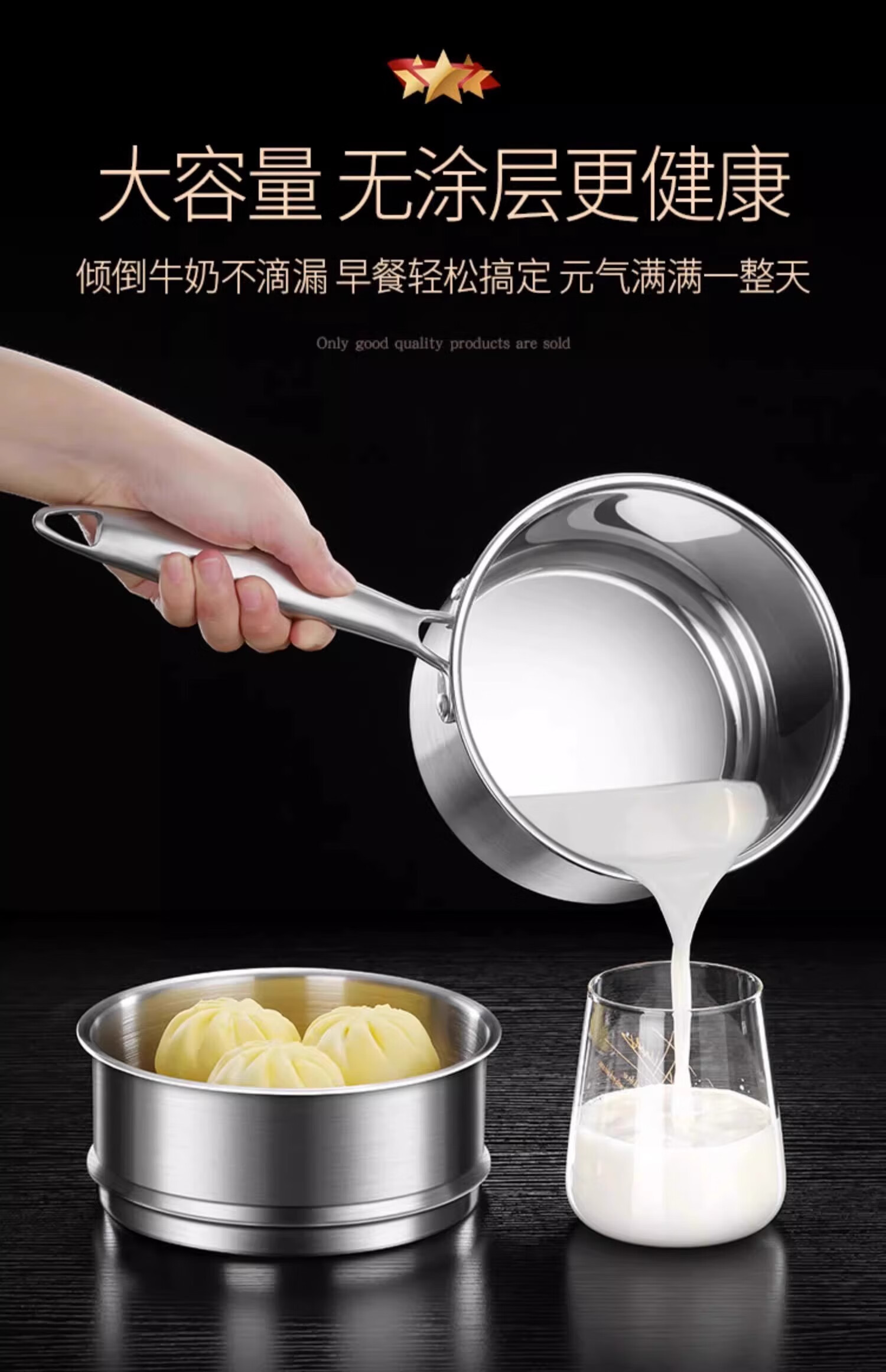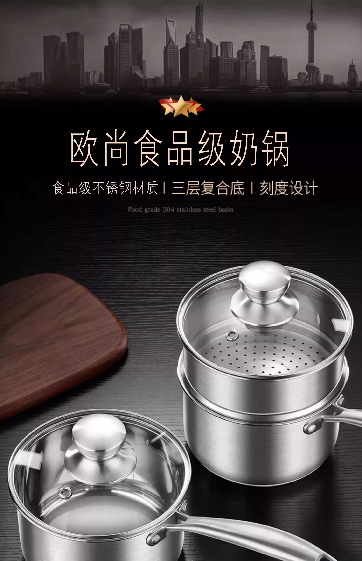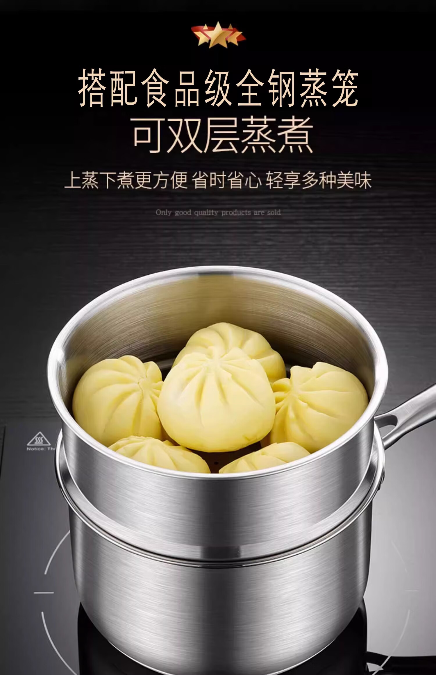 Stainless steel milk pot steaming pot household soup pot instant noodle pot baby baby food pot anti-scalding handle hollow heat insulation steel handle milk pot + steaming grid 22cm