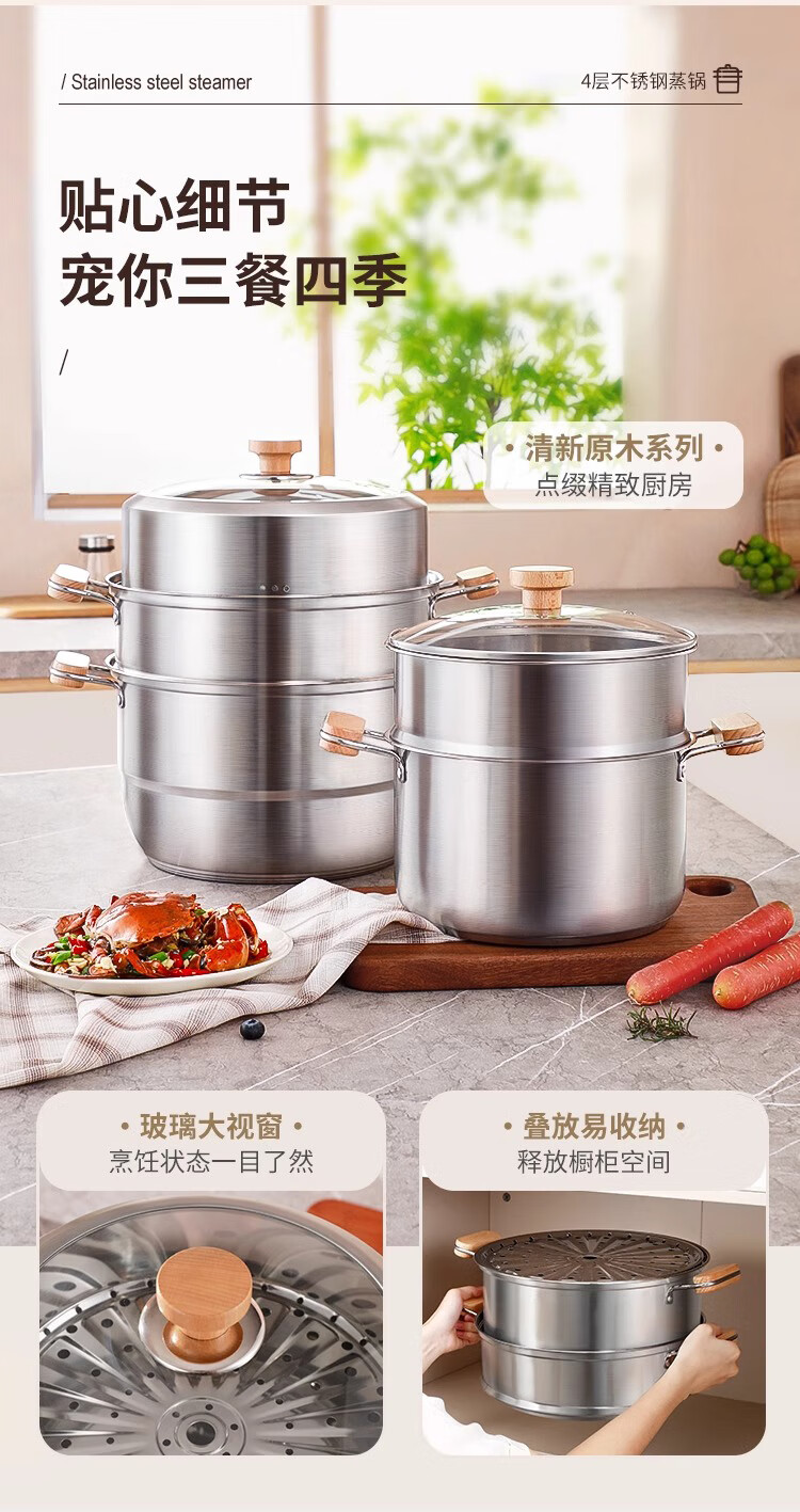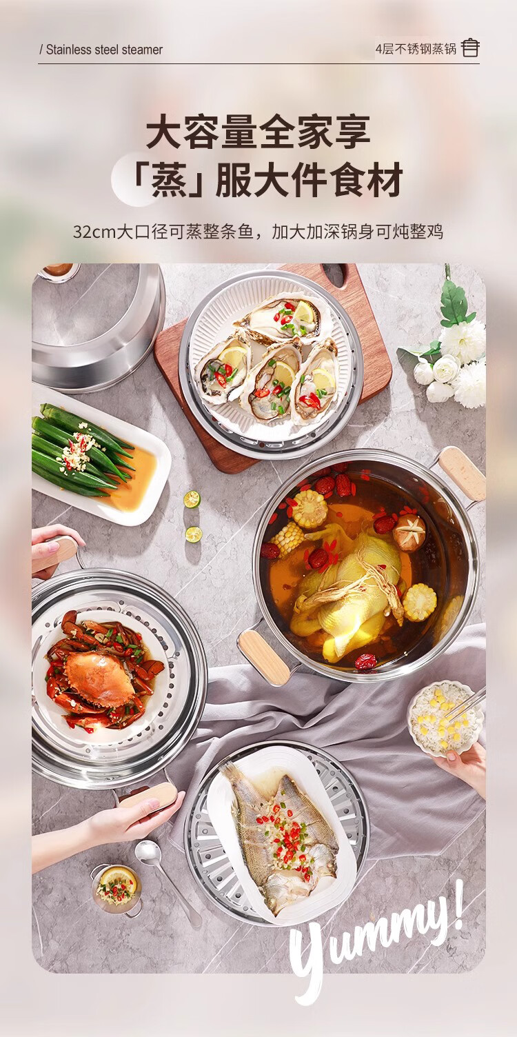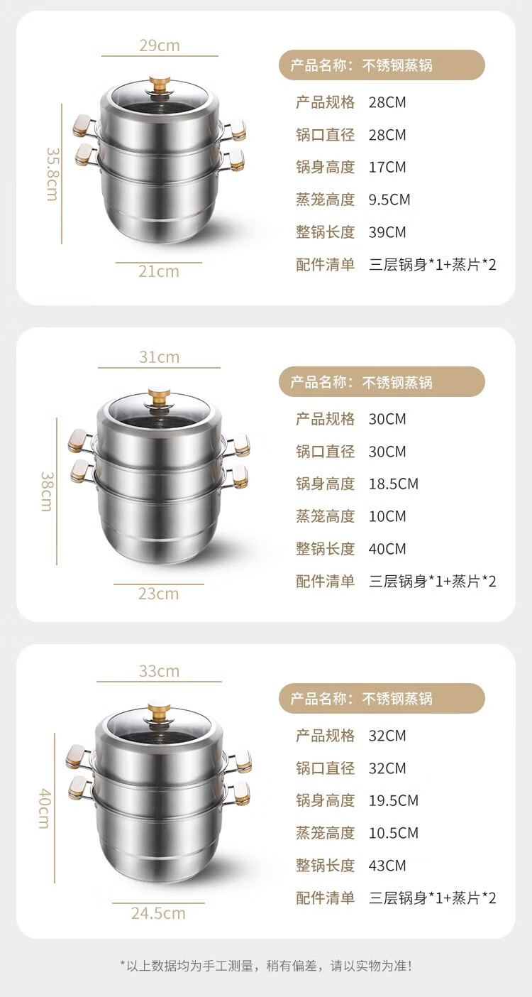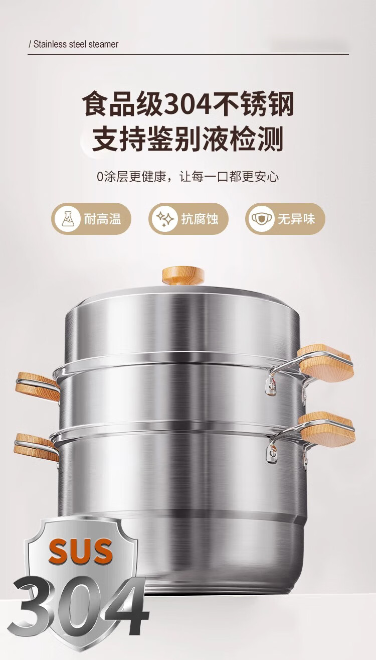 Royalstar Supplier Real 304 stainless steel household steamer three-layer thickened steamer steamer fish steamer soup pot Real 304 stainless steel pot 30cm three-layer