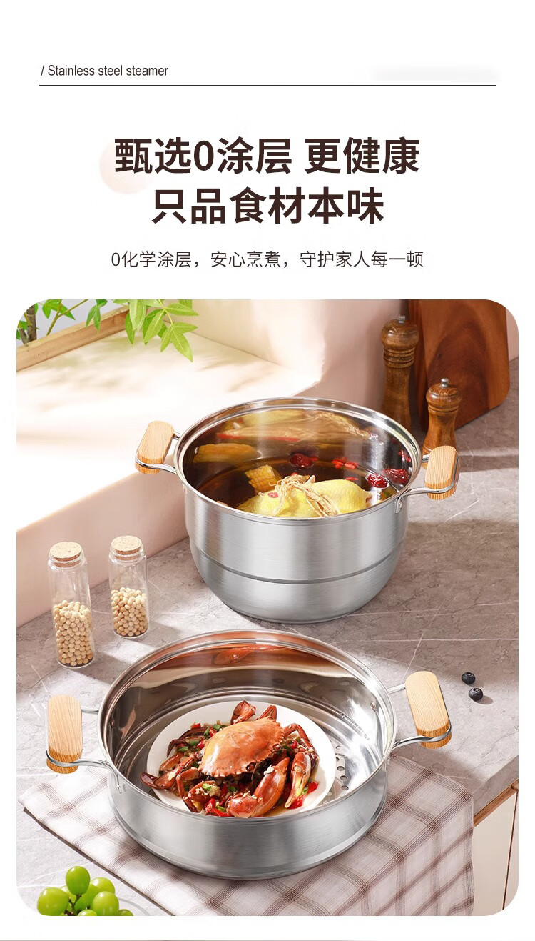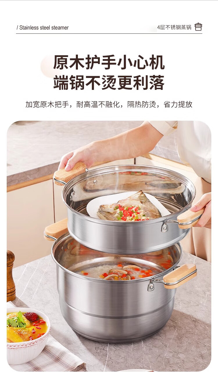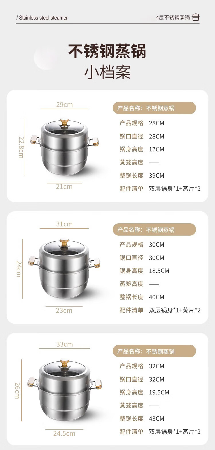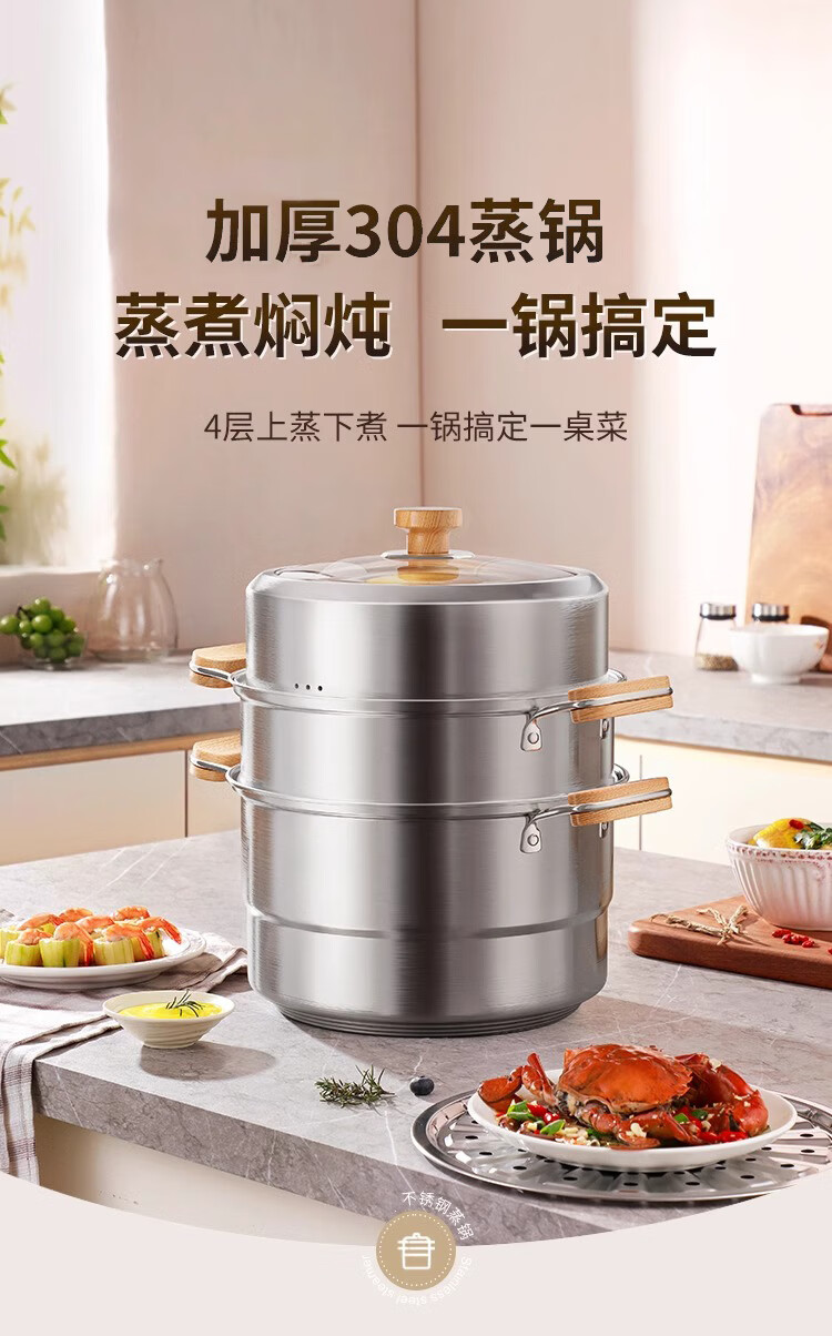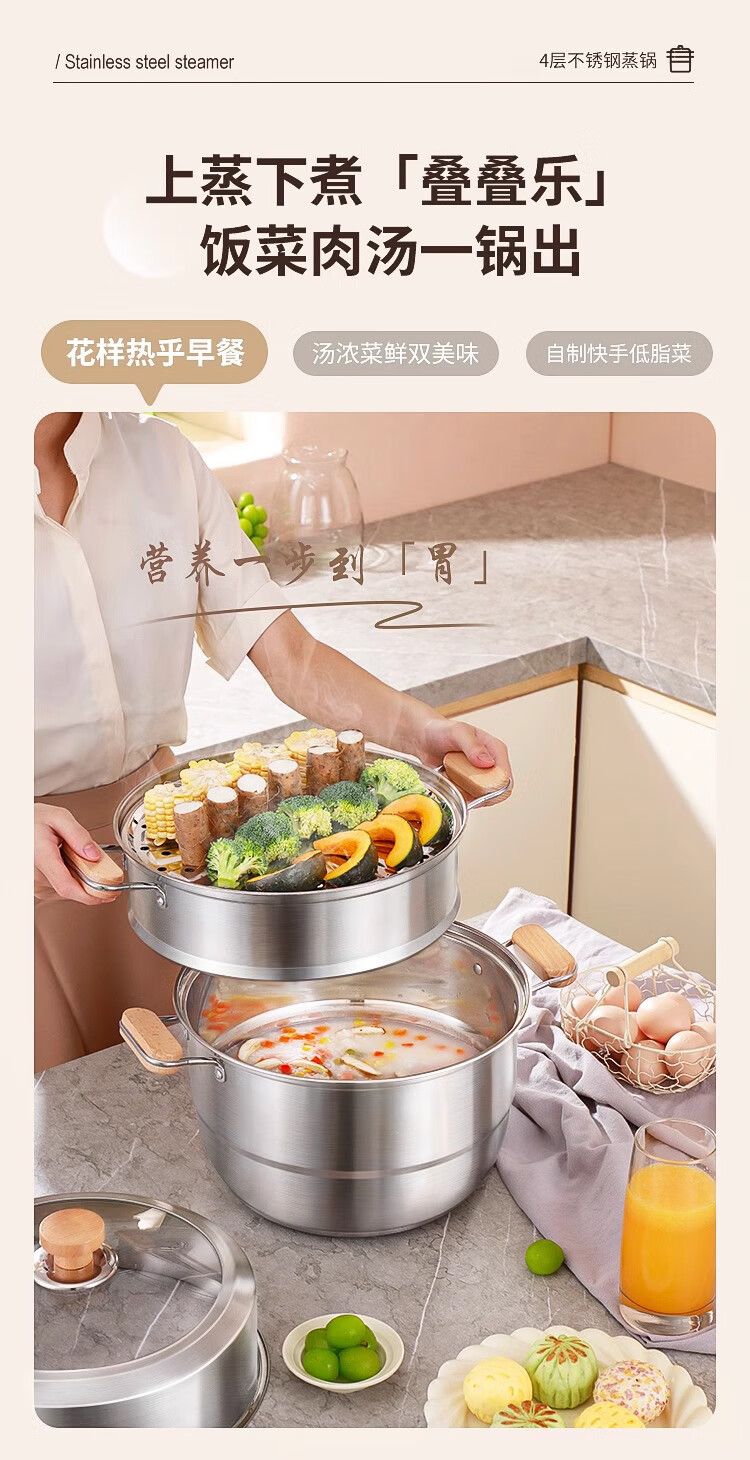 Royalstar Supplier Real 304 stainless steel household steamer three-layer thickened steamer steamer fish steamer soup pot Real 304 stainless steel pot 30cm three-layer