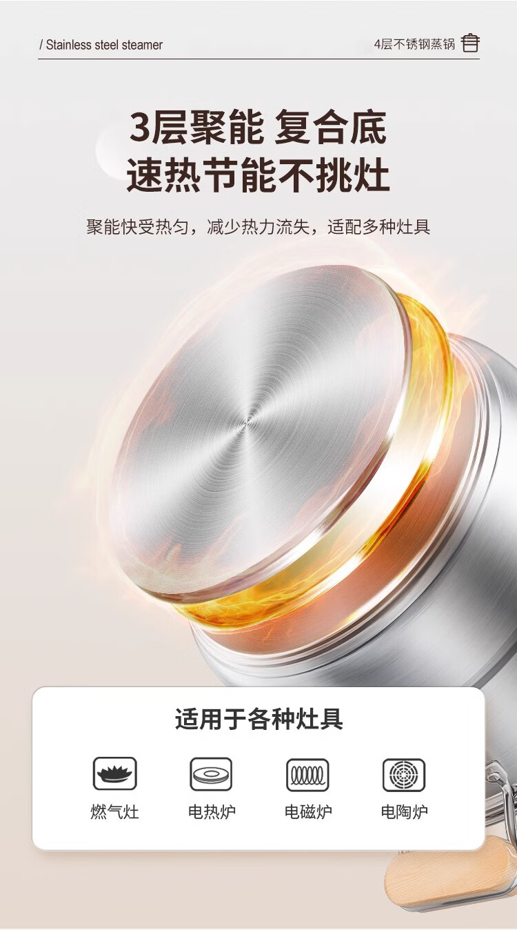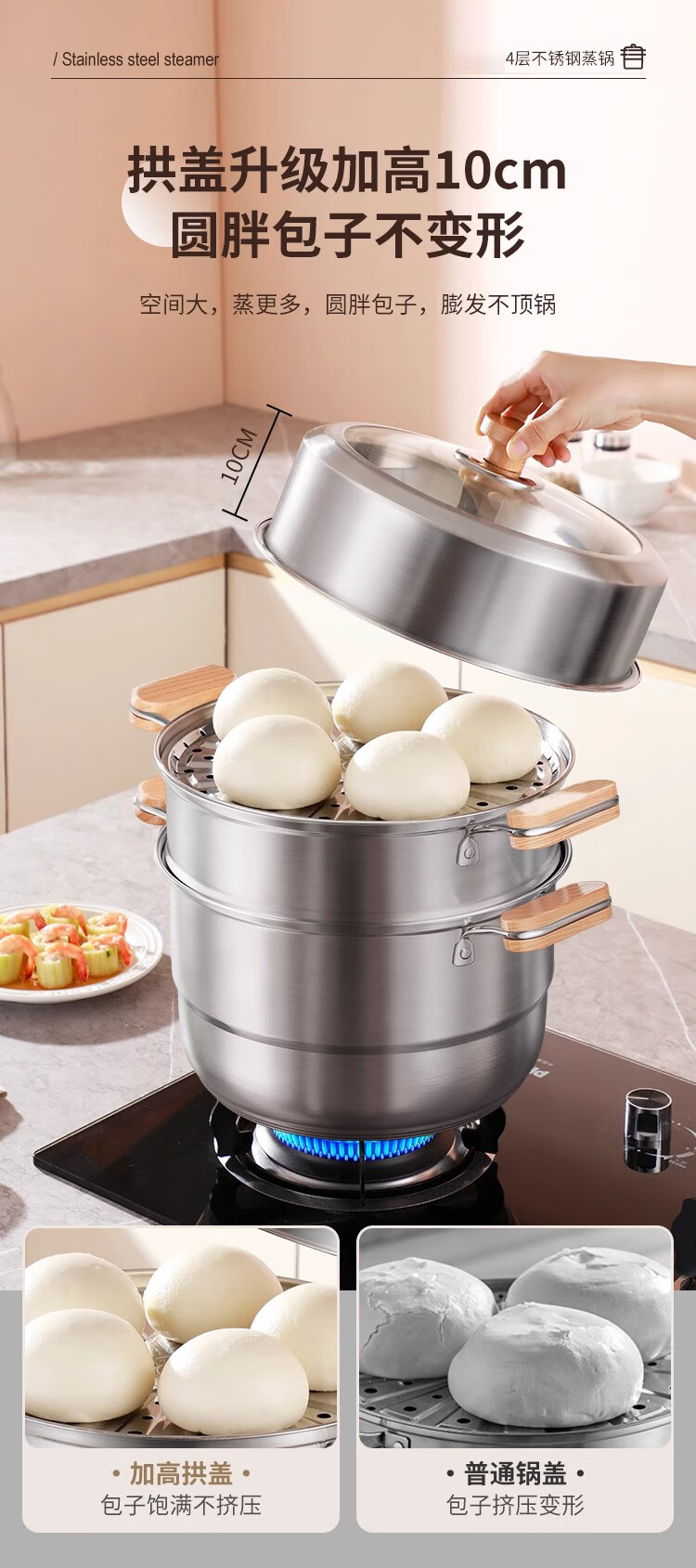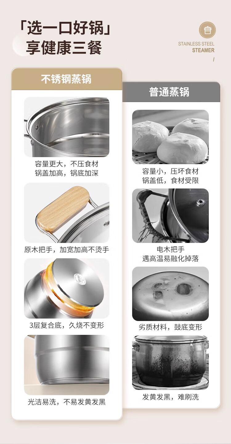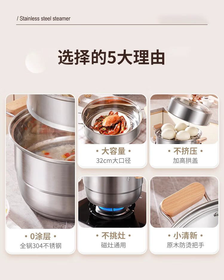 Royalstar Supplier Real 304 stainless steel household steamer three-layer thickened steamer steamer fish steamer soup pot Real 304 stainless steel pot 30cm three-layer