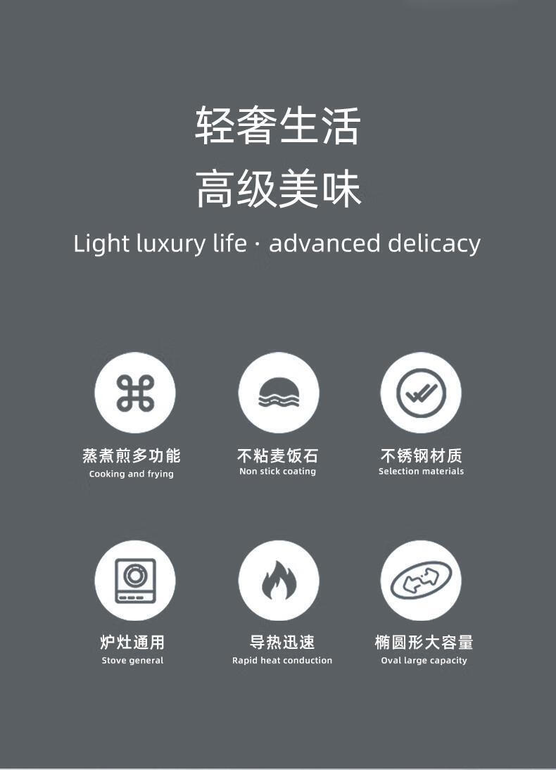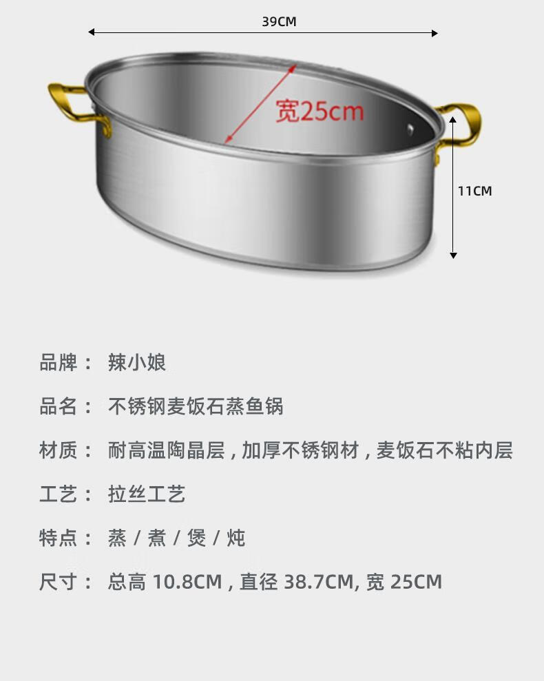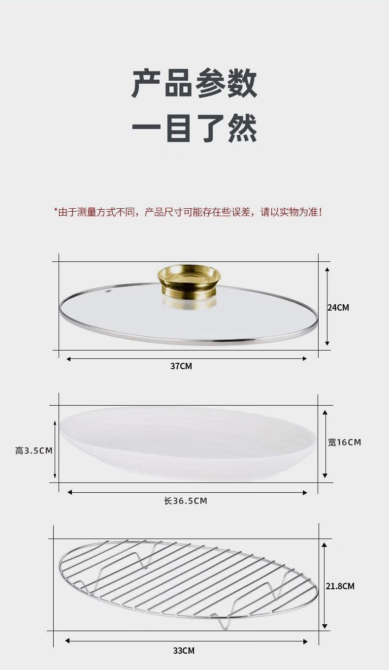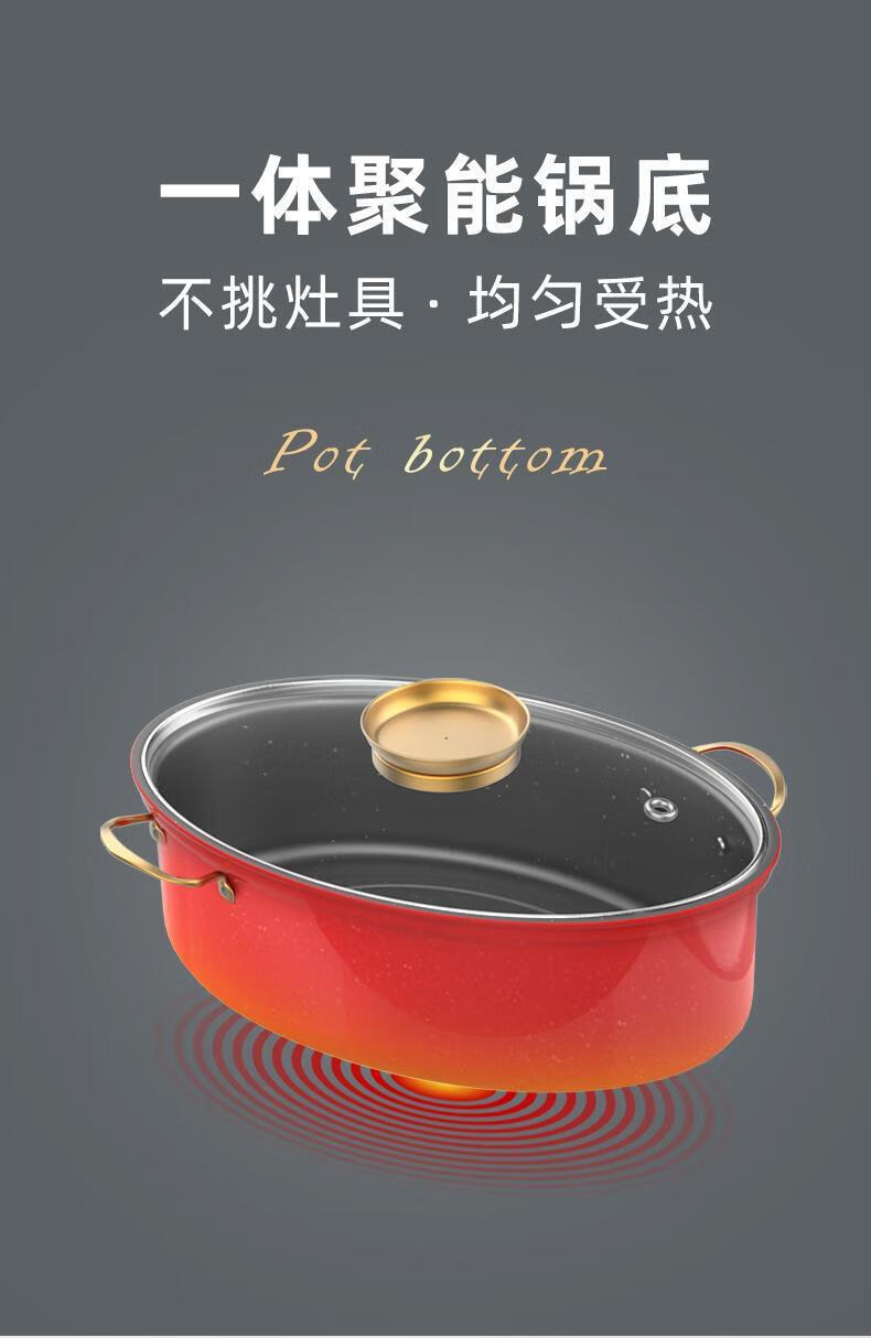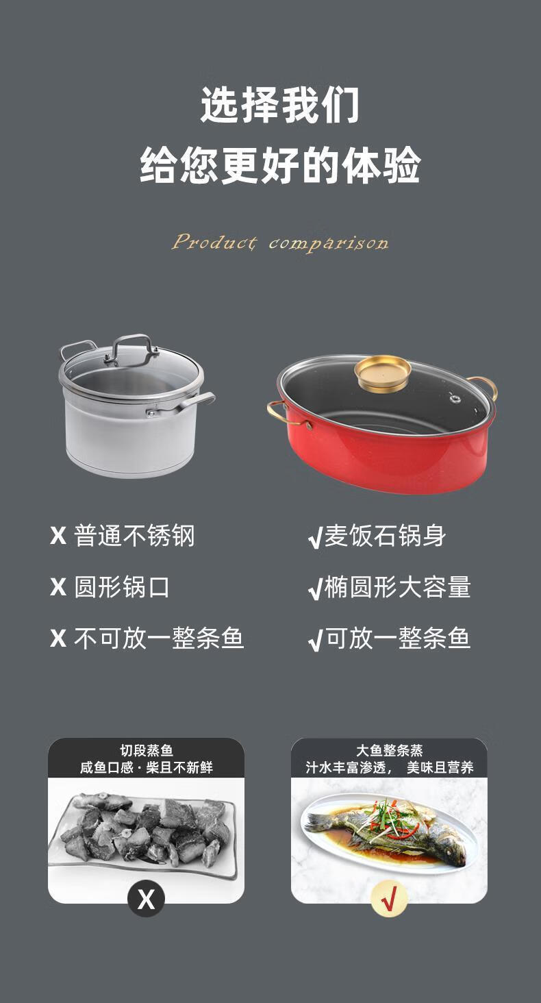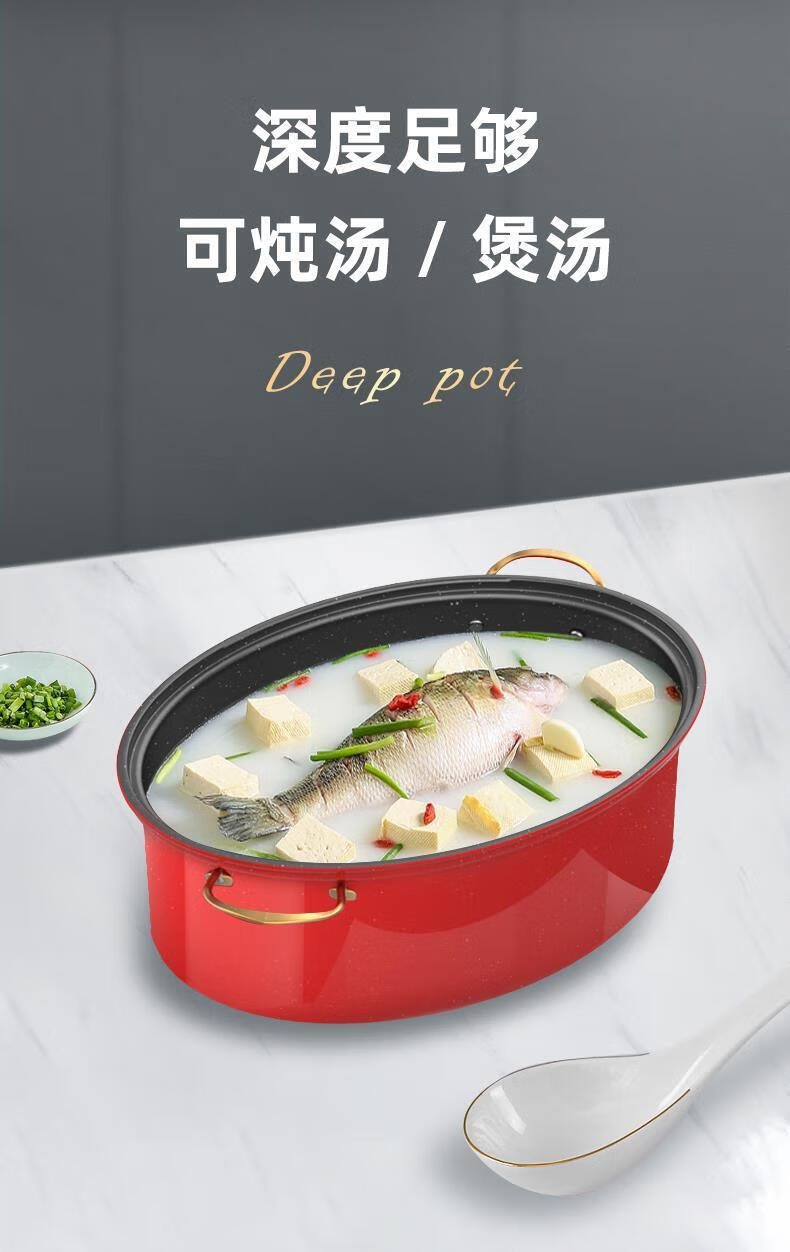 The same type of steaming fish pot, household oval medical stone multi-functional steamer, food-grade stainless steel leaky lid, Chinese red double-layered fish steaming pot (free three-piece set)