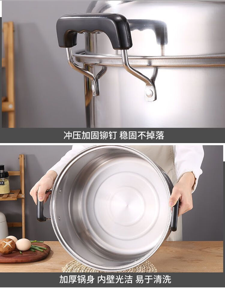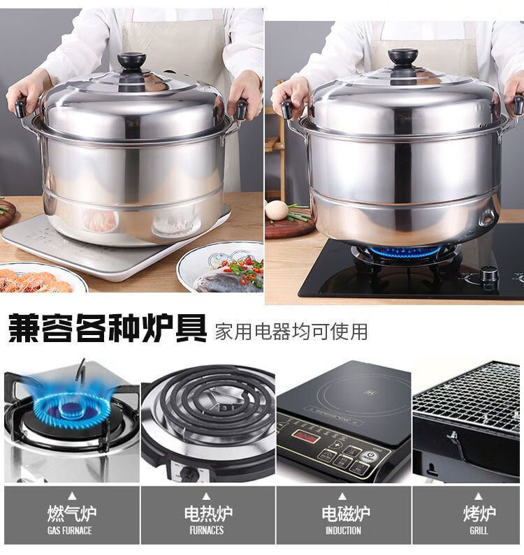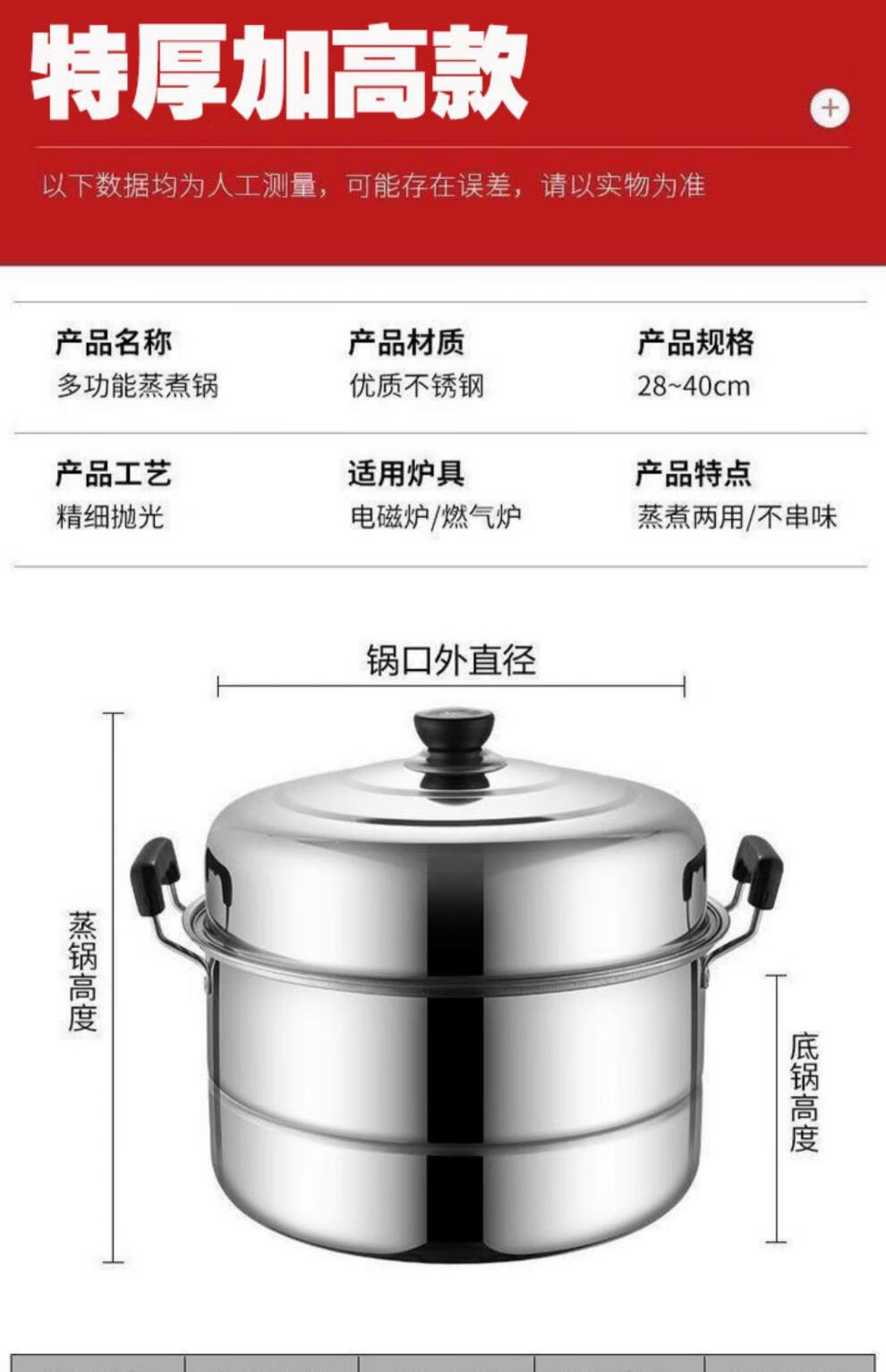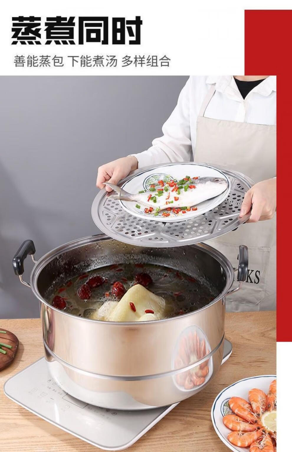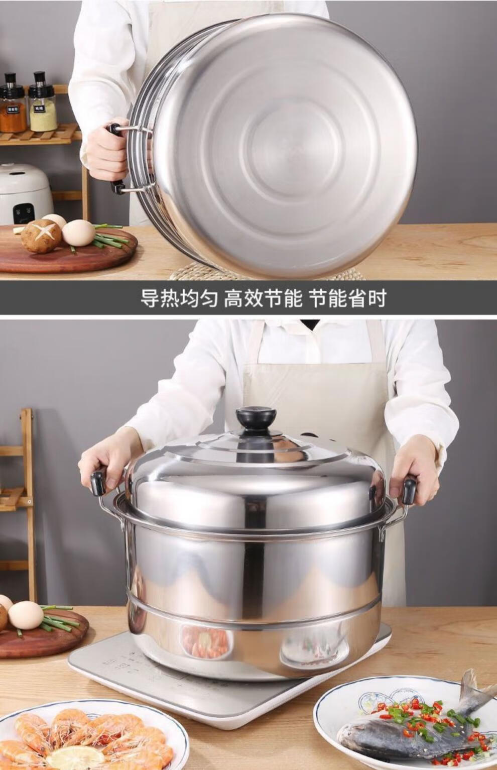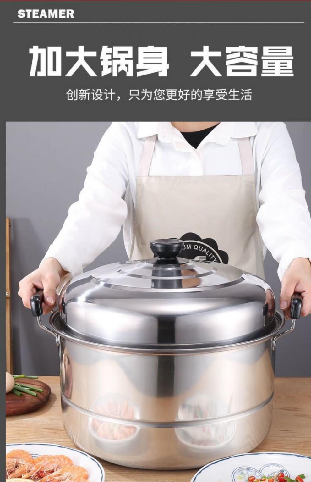 SUPOR steamer household large large capacity extra thick two-layer stainless steel steamed buns and fish pot 34 36 40cm commercial soup pot upgraded extra thick double layer heightening model (larger) 40cm Damage guaranteed One-year warranty