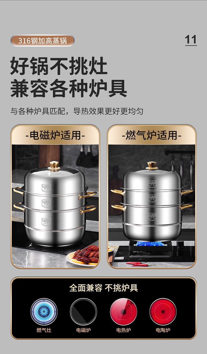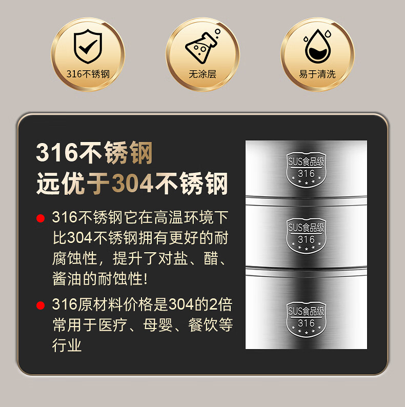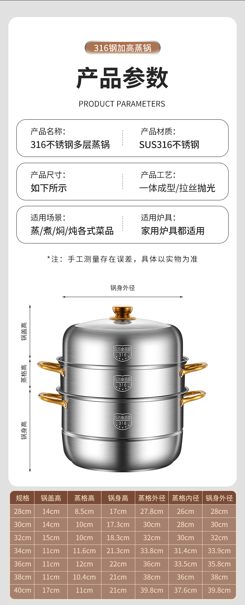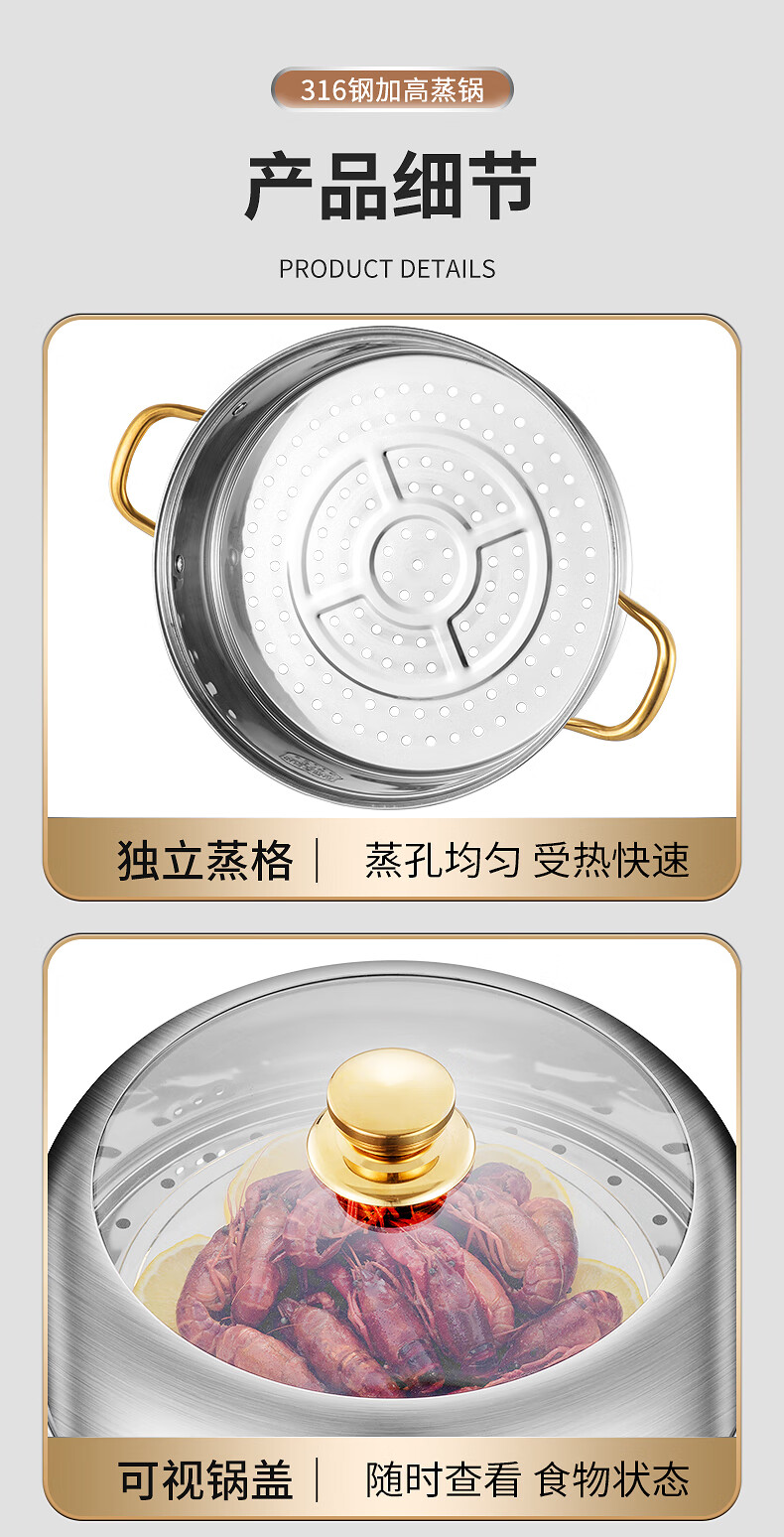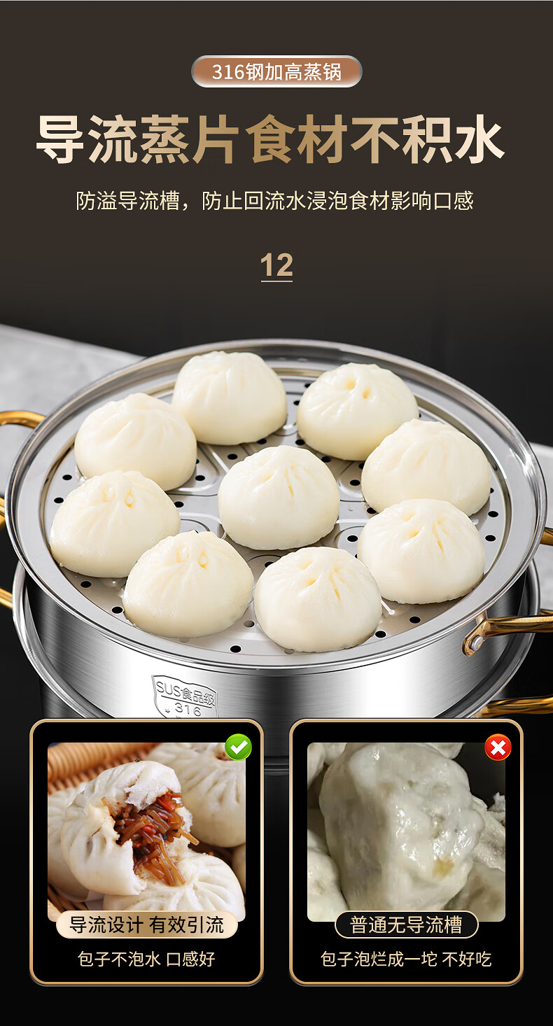 SUPOR steamer 316 stainless steel thickened household two-, three- and four-layer steamer for steaming steamed buns large-capacity induction cooker pot for gas 316 golden ear steamer two-layer 30cm extra thick flagship exclusive model + five-year warranty