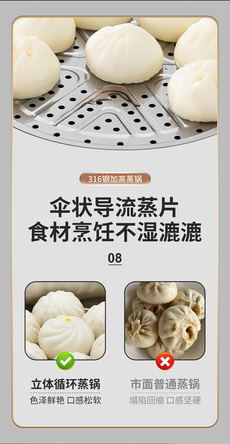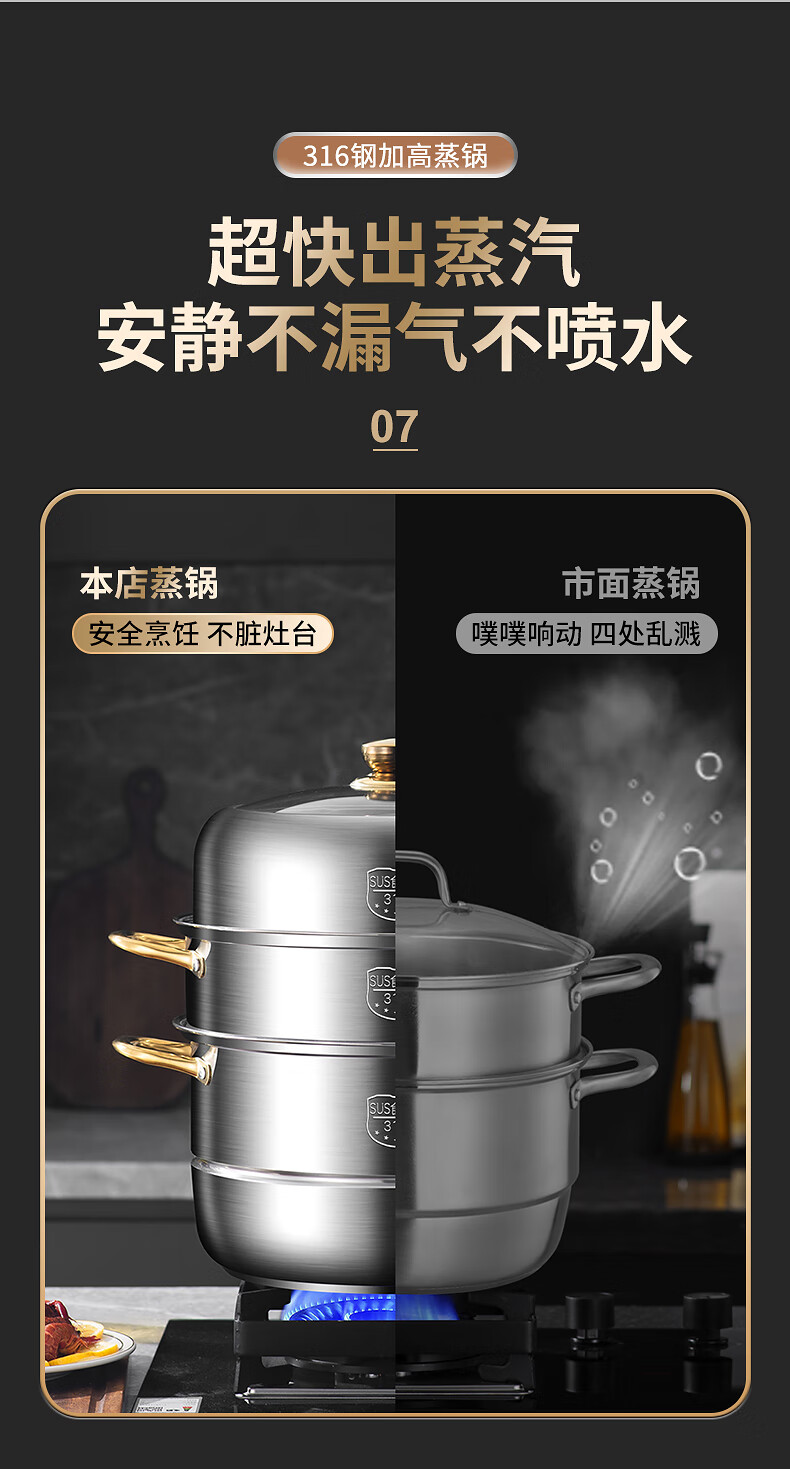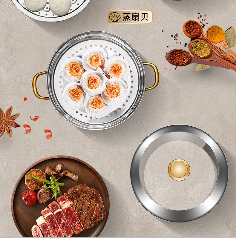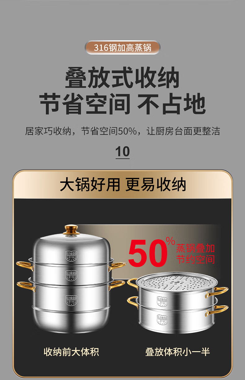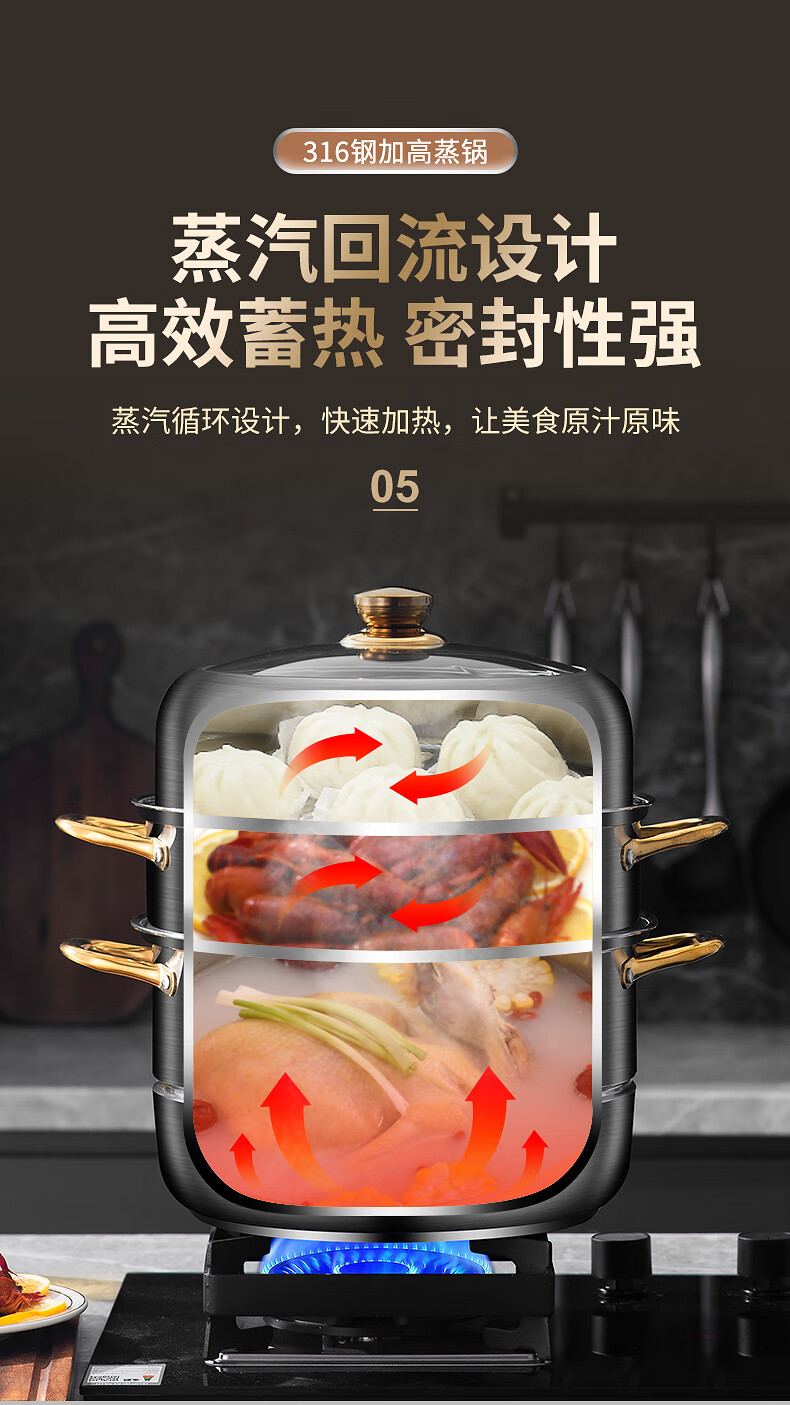 SUPOR steamer 316 stainless steel thickened household two-, three- and four-layer steamer for steaming steamed buns large-capacity induction cooker pot for gas 316 golden ear steamer two-layer 30cm extra thick flagship exclusive model + five-year warranty