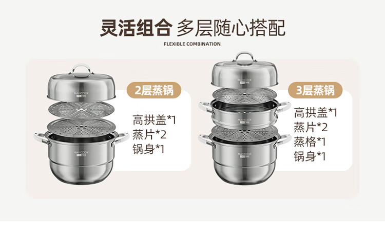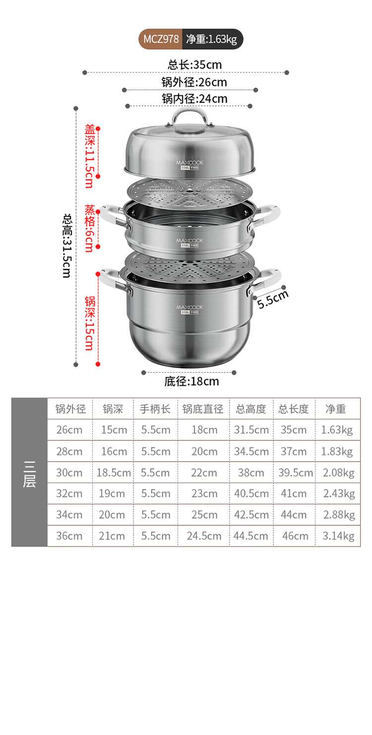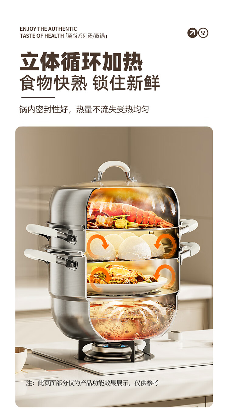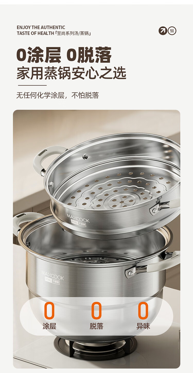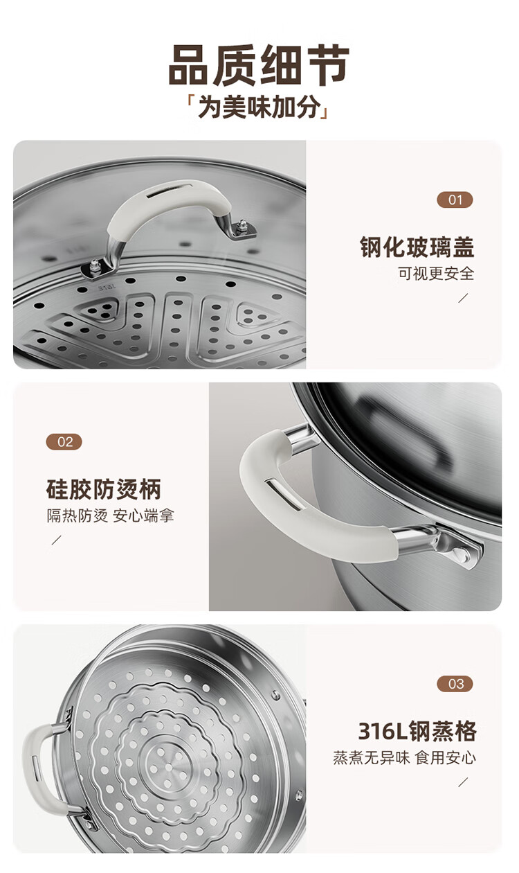 Meichu 316L stainless steel steamer anti-scalding food-grade steamer household stew all-in-one soup pot thickened bottom real 316L steel + anti-scalding handle 2 layers 30cm