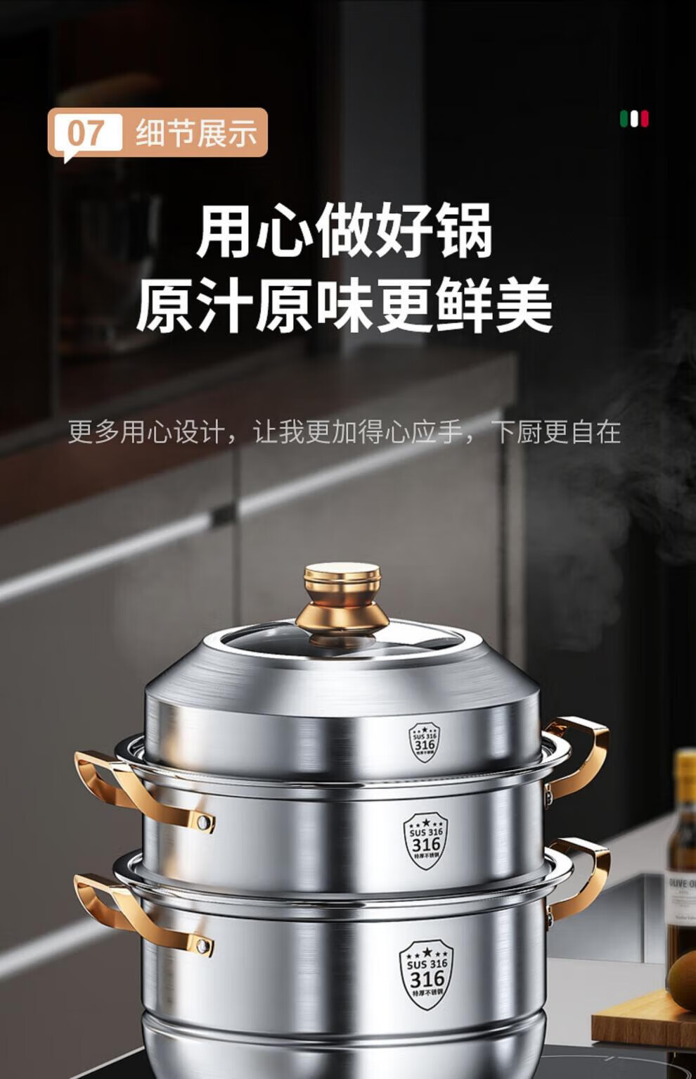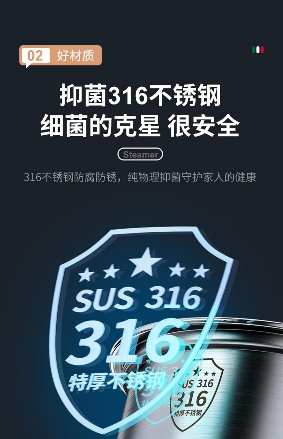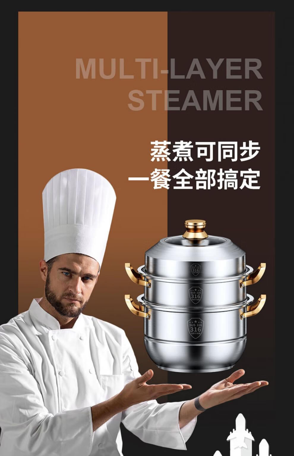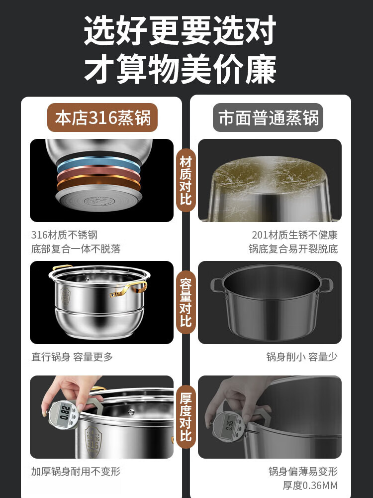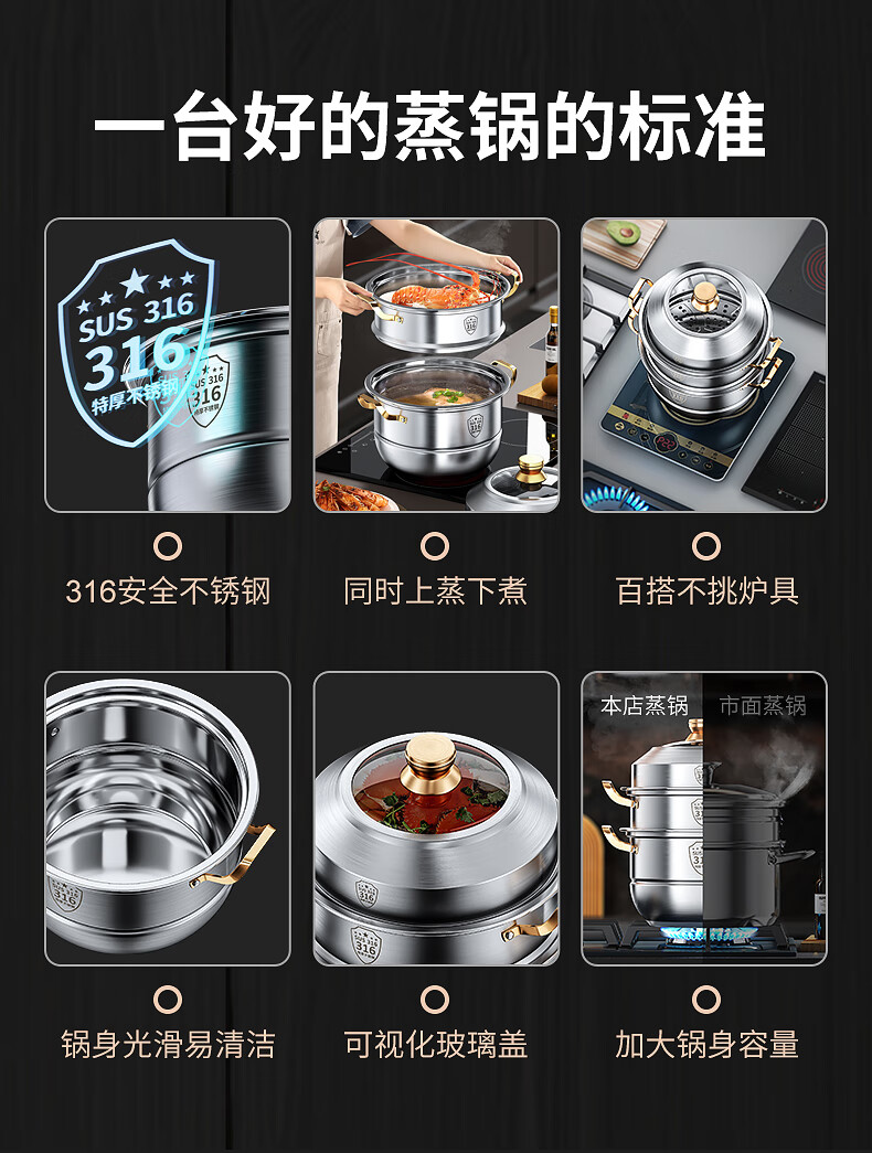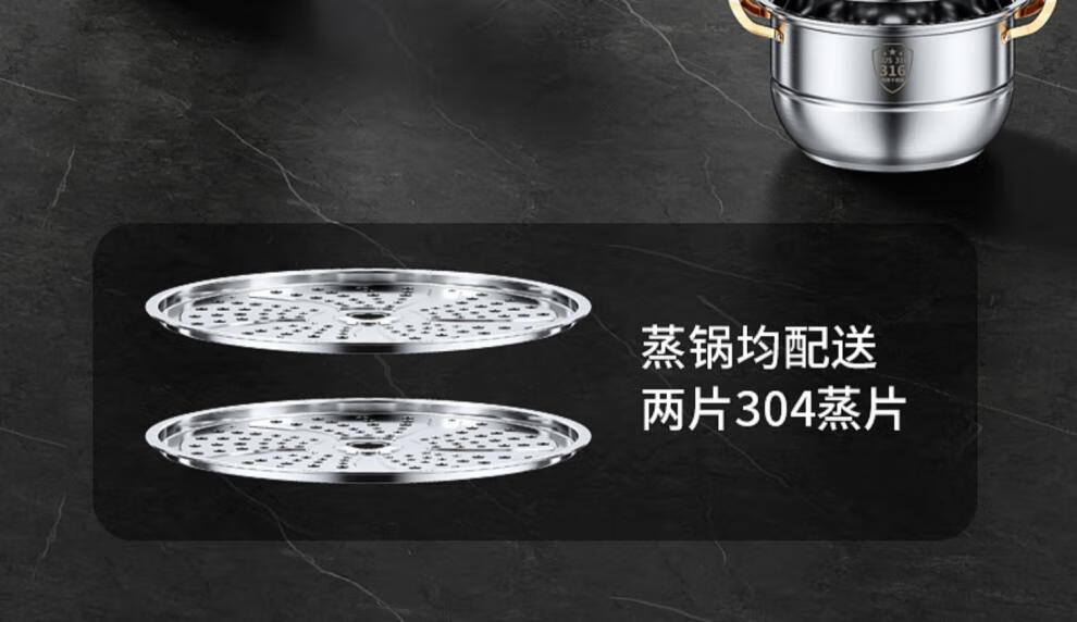 Fat Donglai's same stainless steel steamer household 316 food-grade cooking pot multi-function induction cooker gas universal flagship model two-layer thickened food grade 30cm