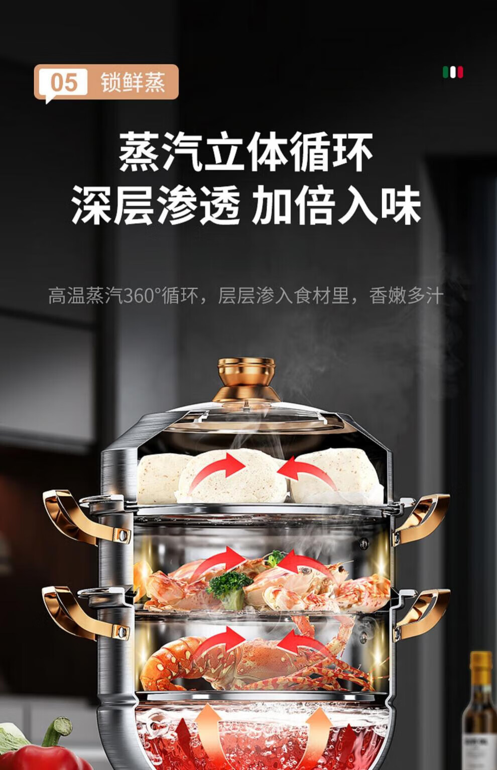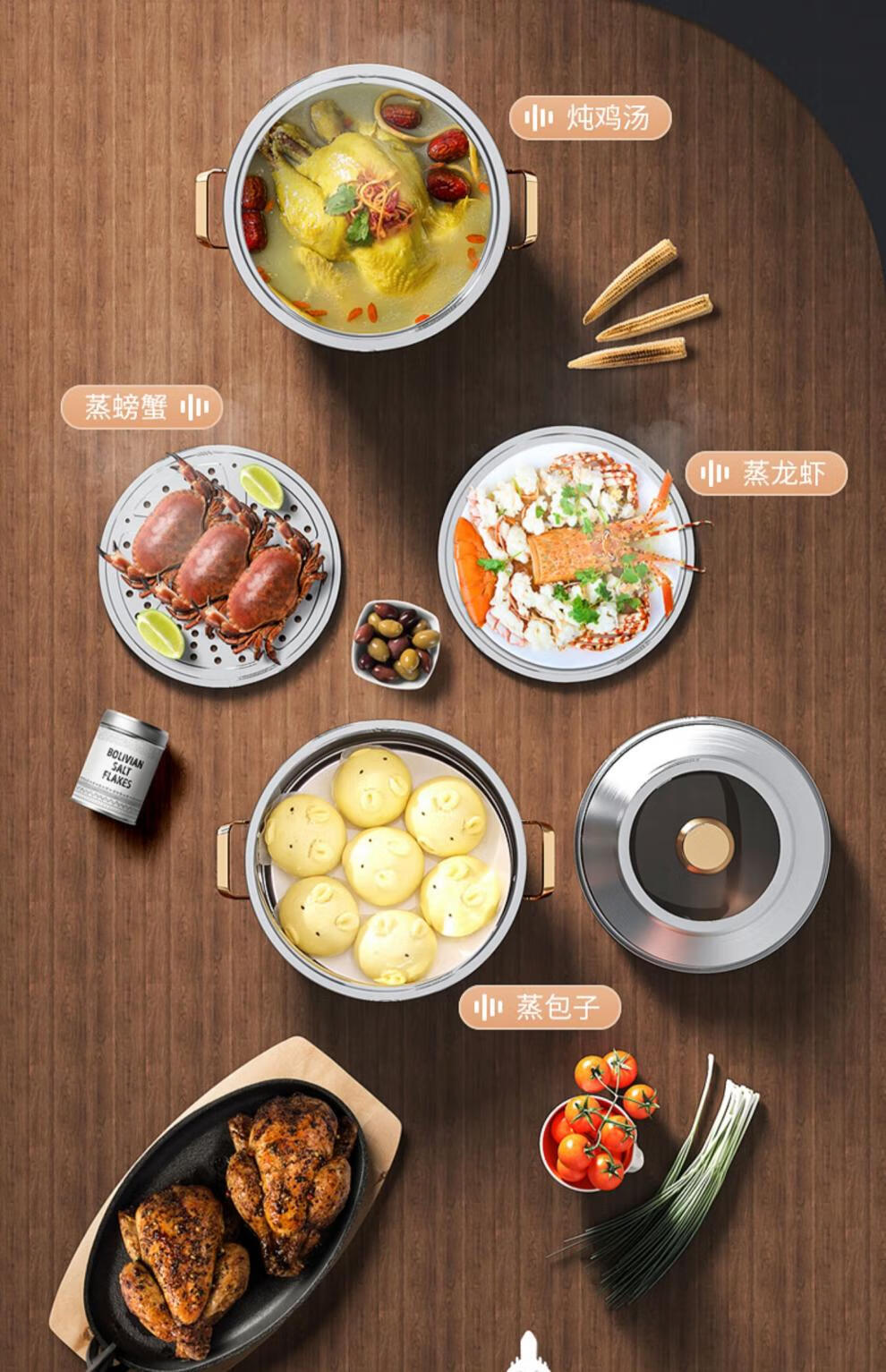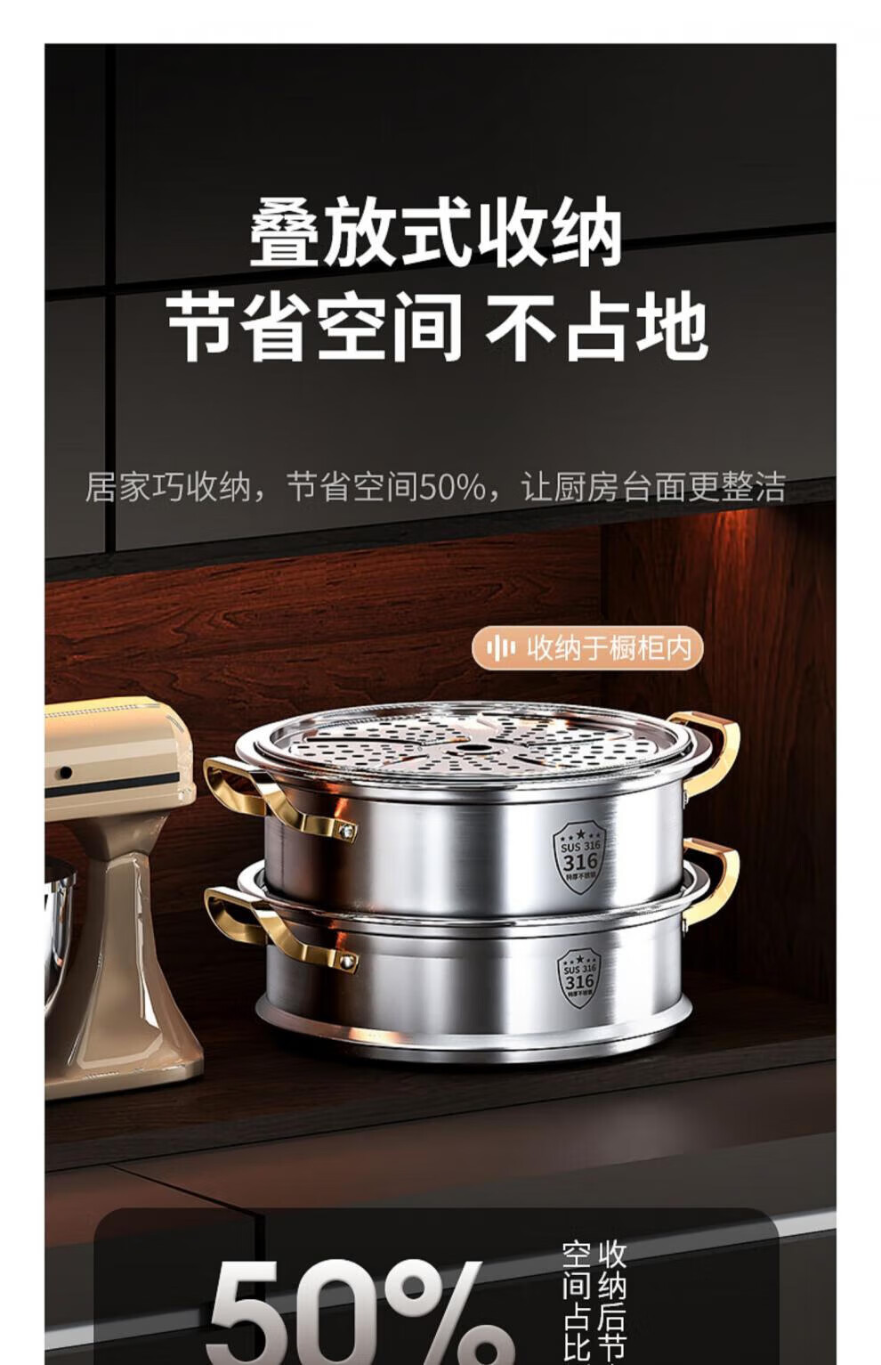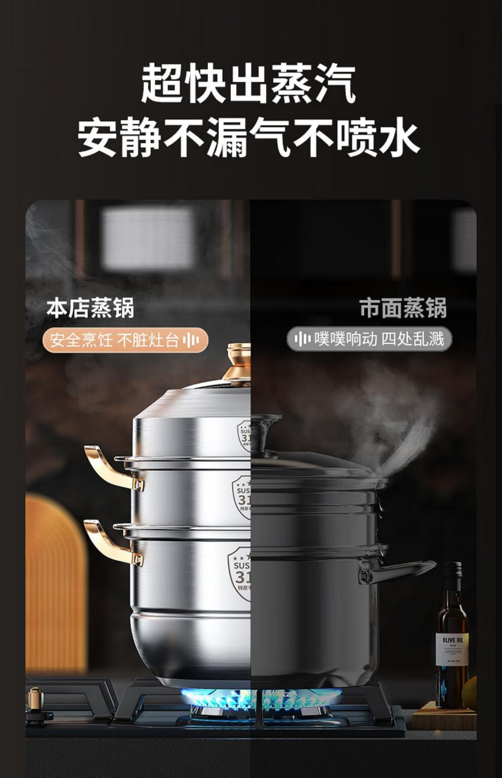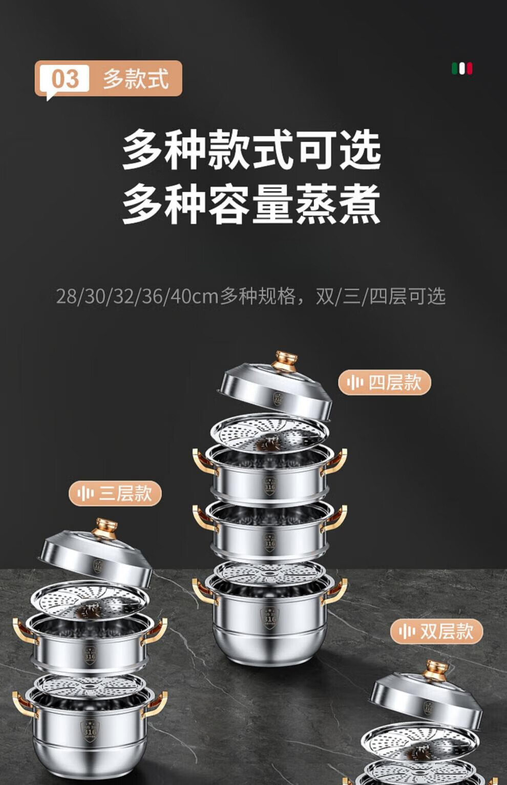 Fat Donglai's same stainless steel steamer household 316 food-grade cooking pot multi-function induction cooker gas universal flagship model two-layer thickened food grade 30cm