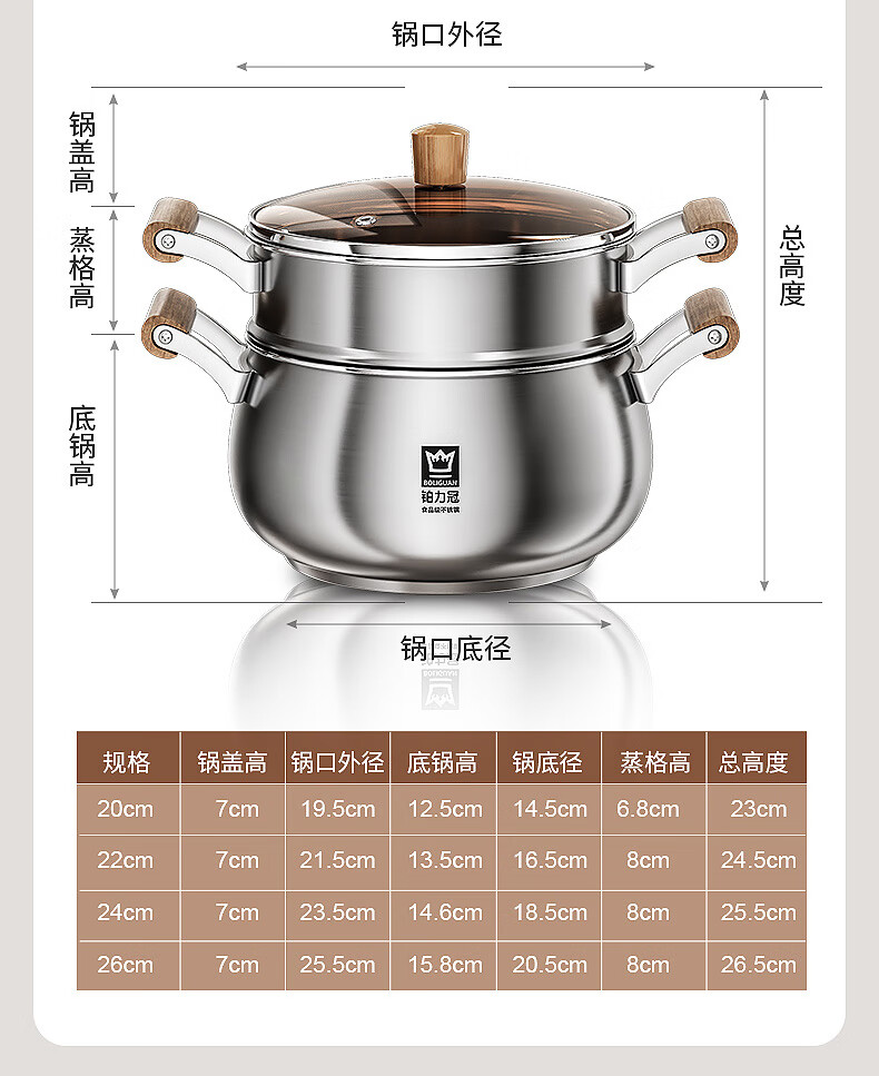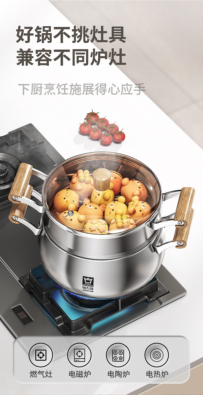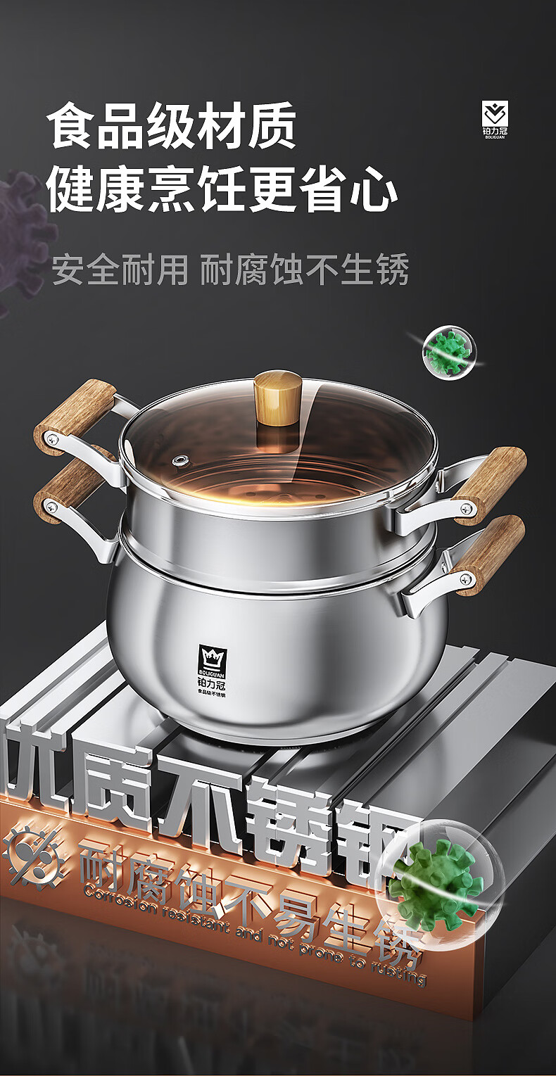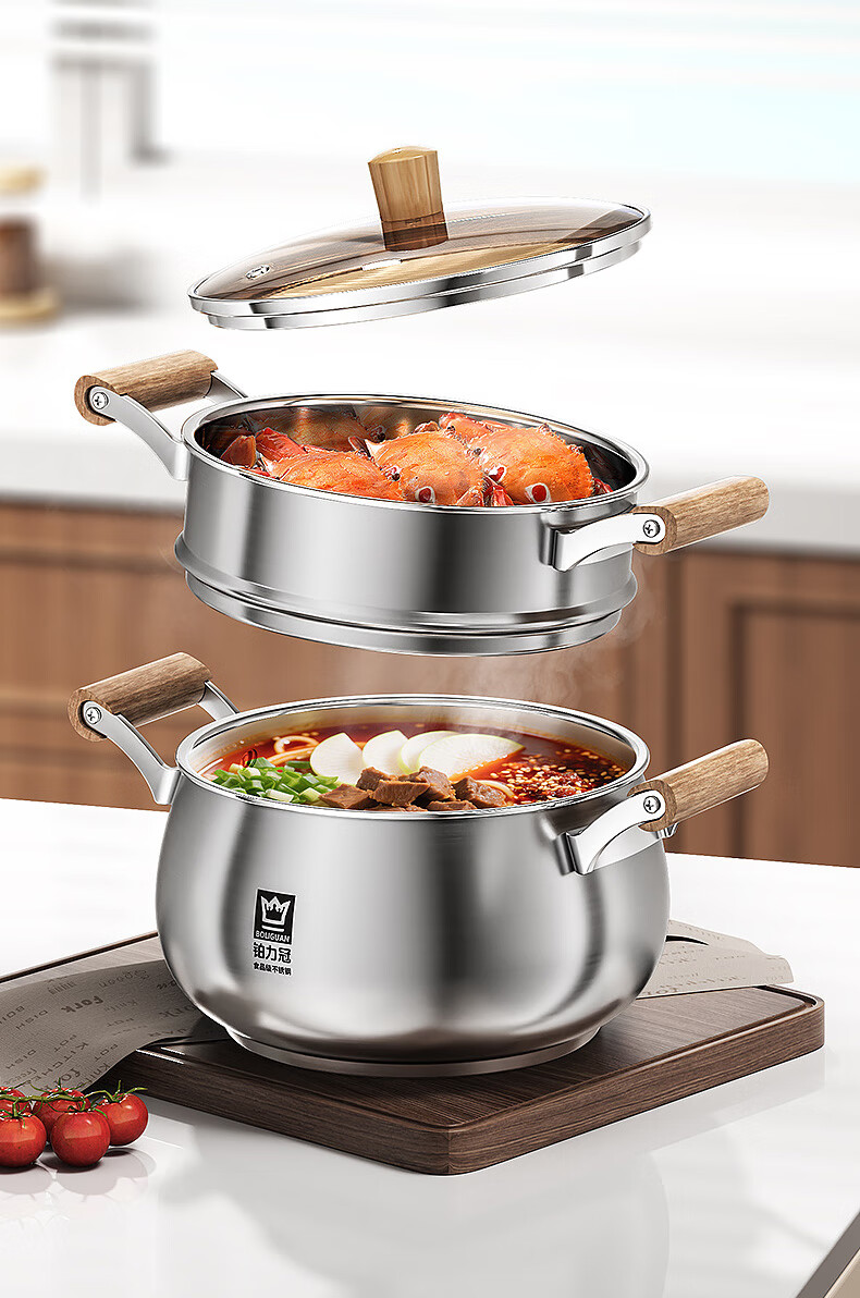 Fat Donglai Yangma recommends the new thickened steamer 316 stainless steel large capacity household multifunctional soup pot 316 food grade with steaming grid_( 24cm 20-26cm