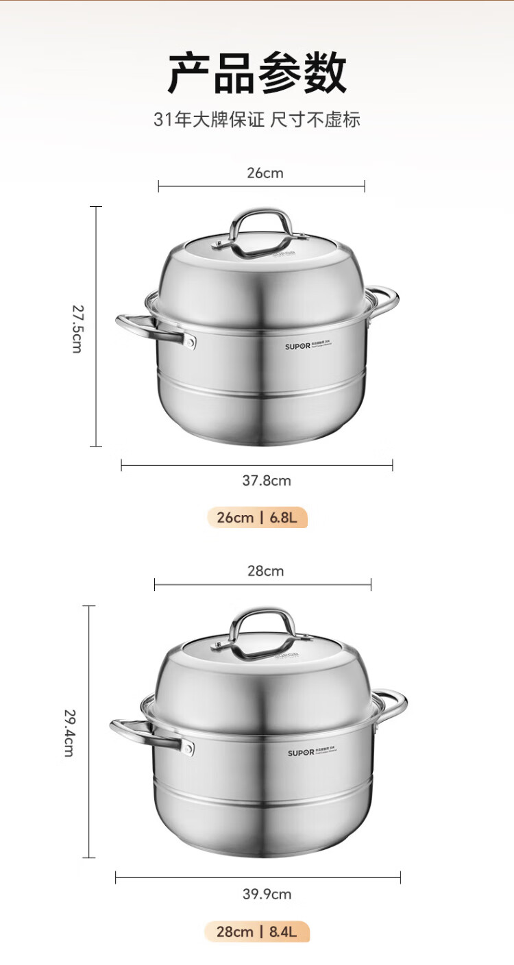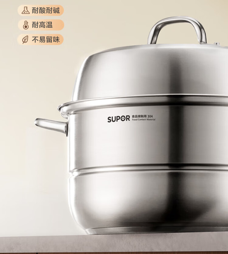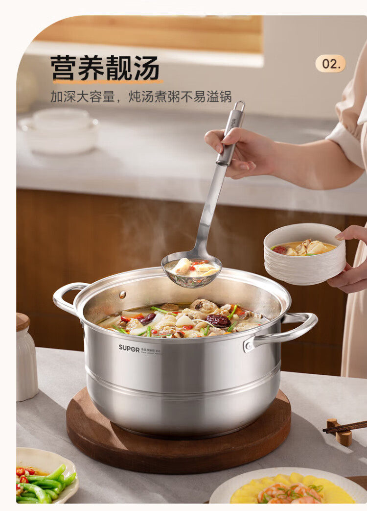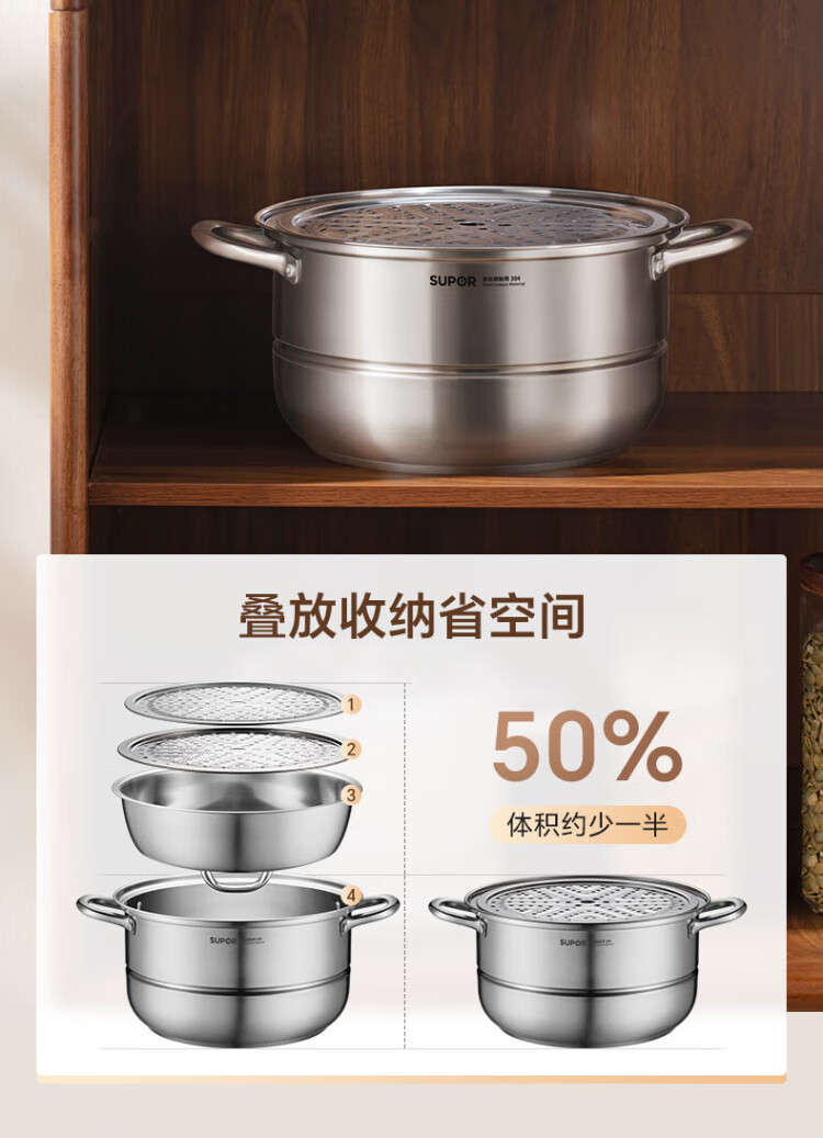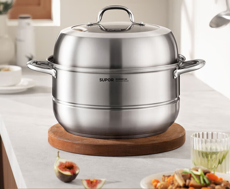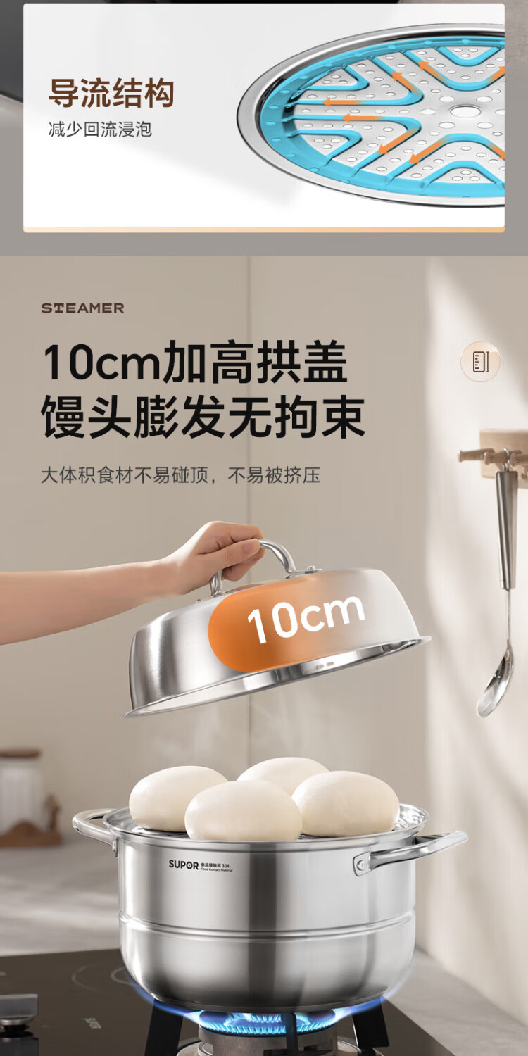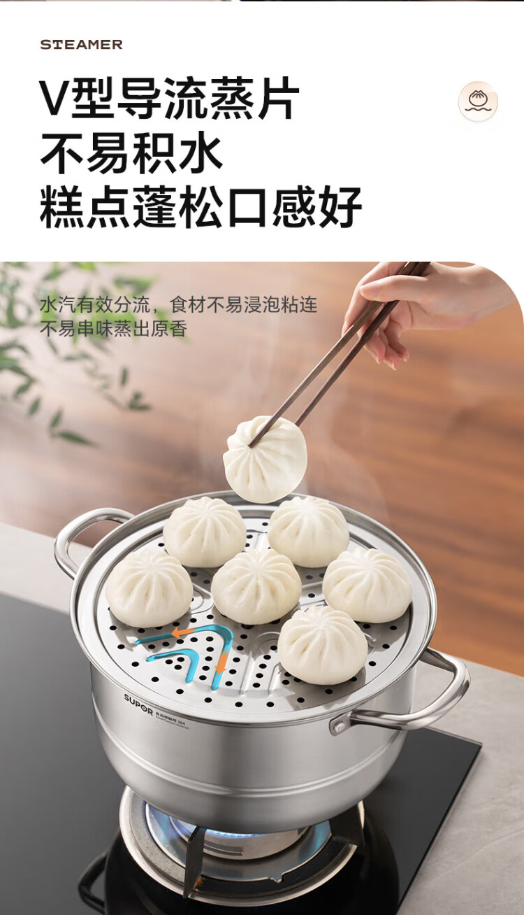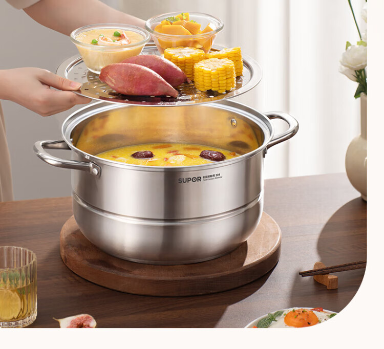 SUPOR steamer 304 stainless steel multi-functional soup steamer double-layer steaming rack stew steaming stir-fry large capacity induction cooker universal 6.8L丨304 stainless steel 2 layers 26cm