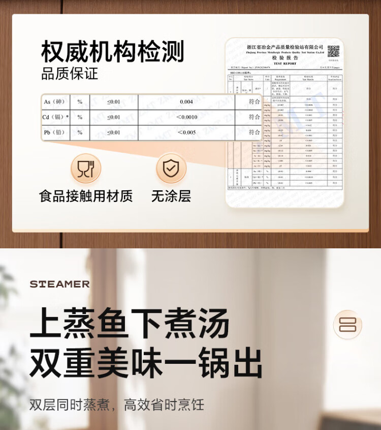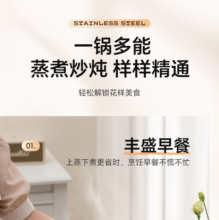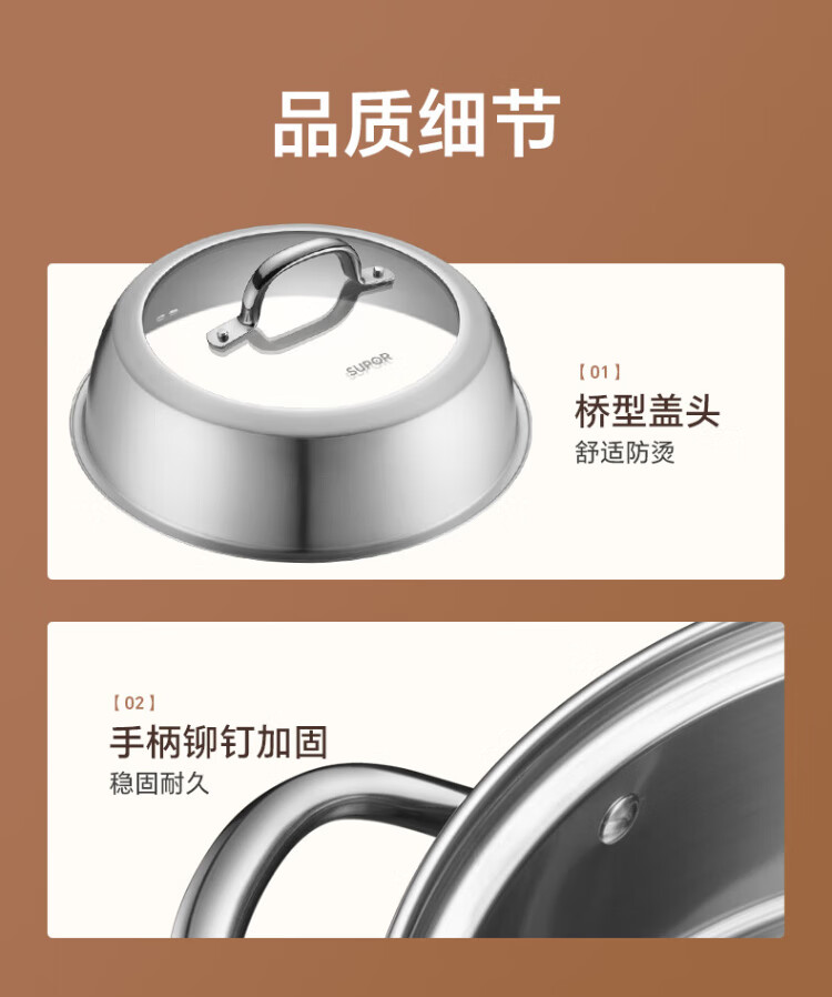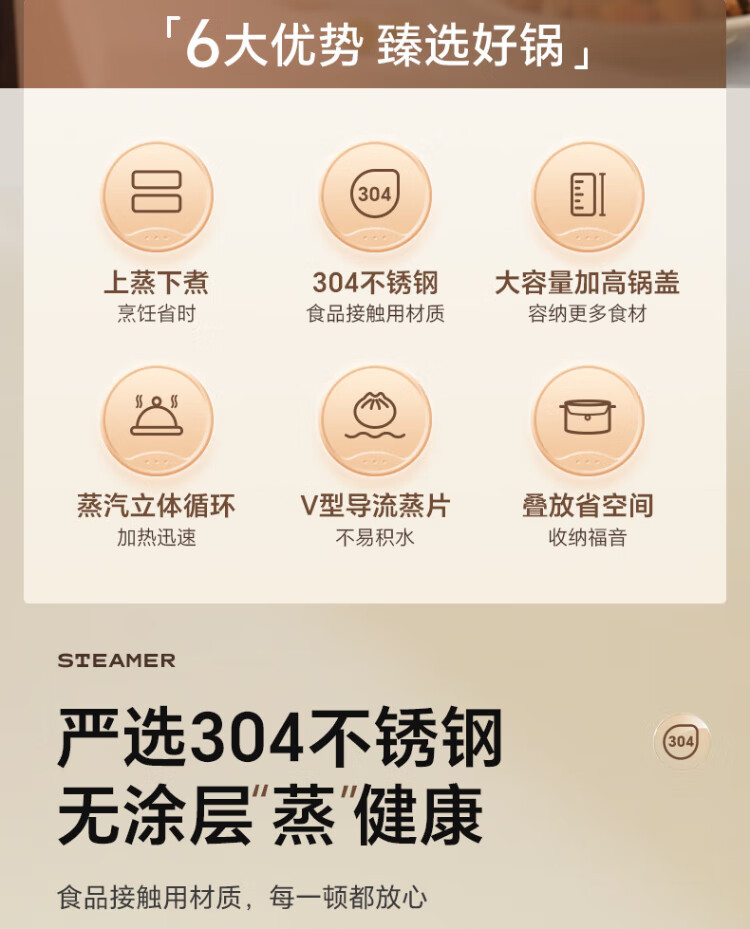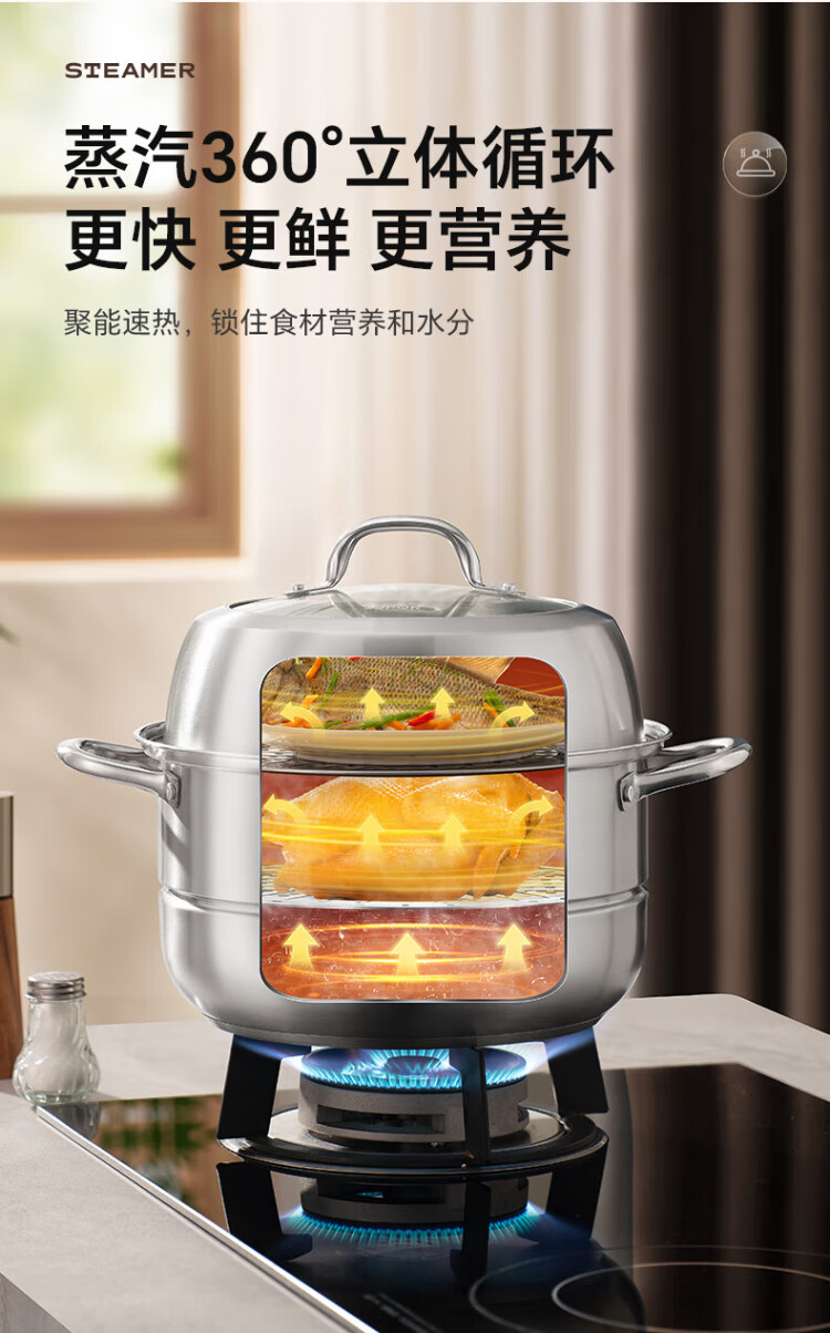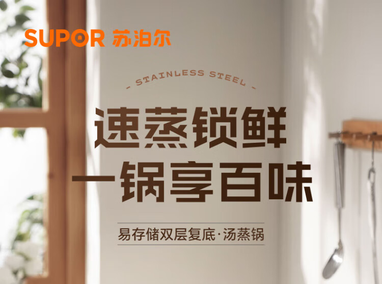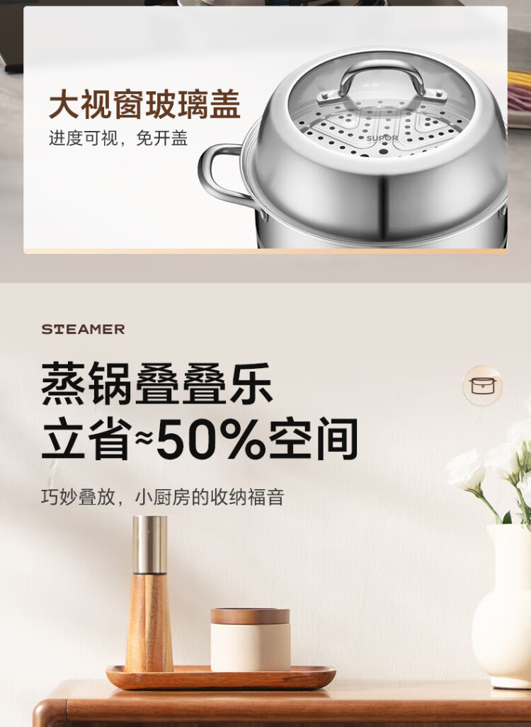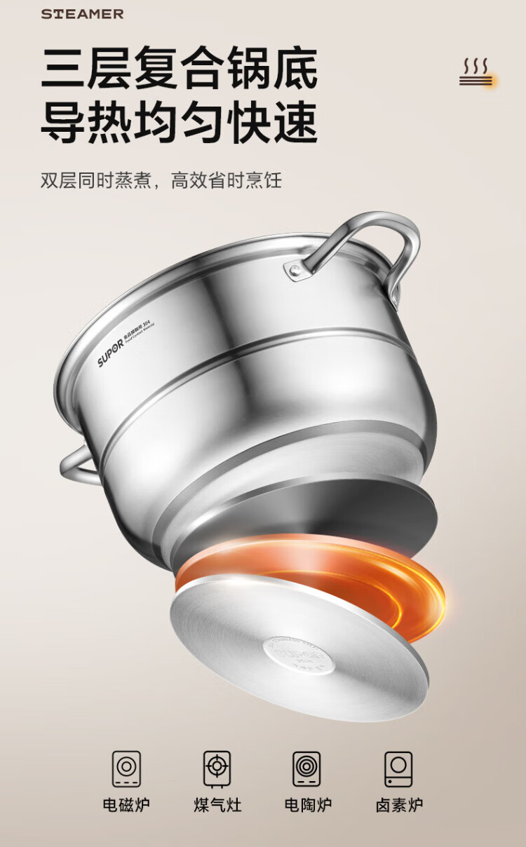 SUPOR steamer 304 stainless steel multi-functional soup steamer double-layer steaming rack stew steaming stir-fry large capacity induction cooker universal 6.8L丨304 stainless steel 2 layers 26cm