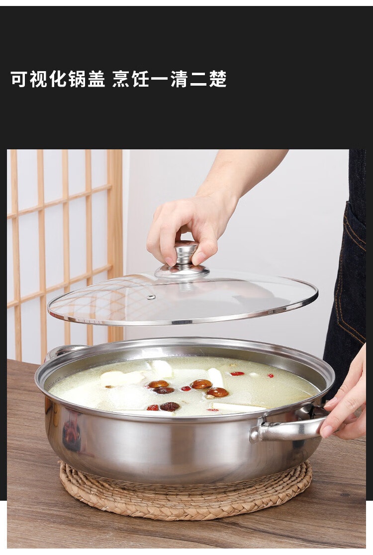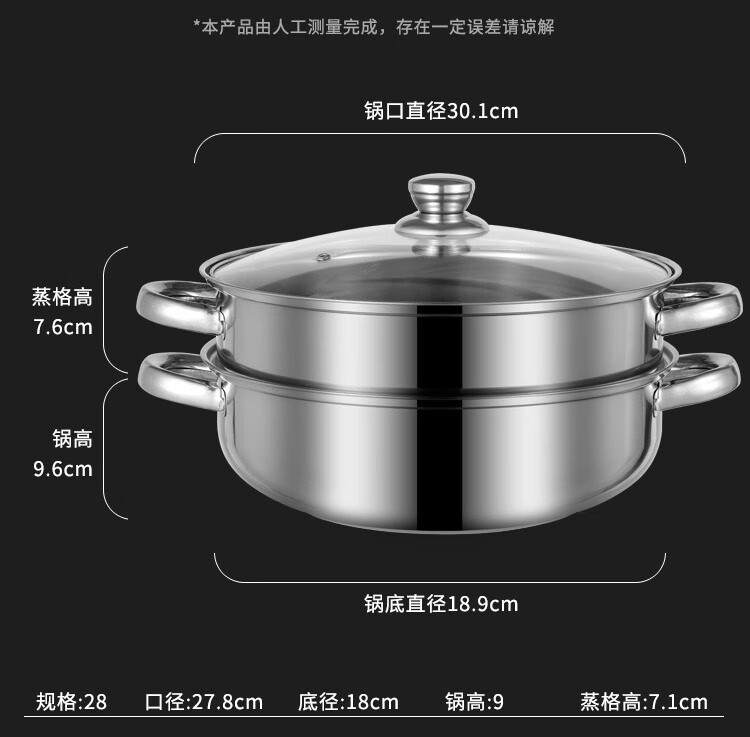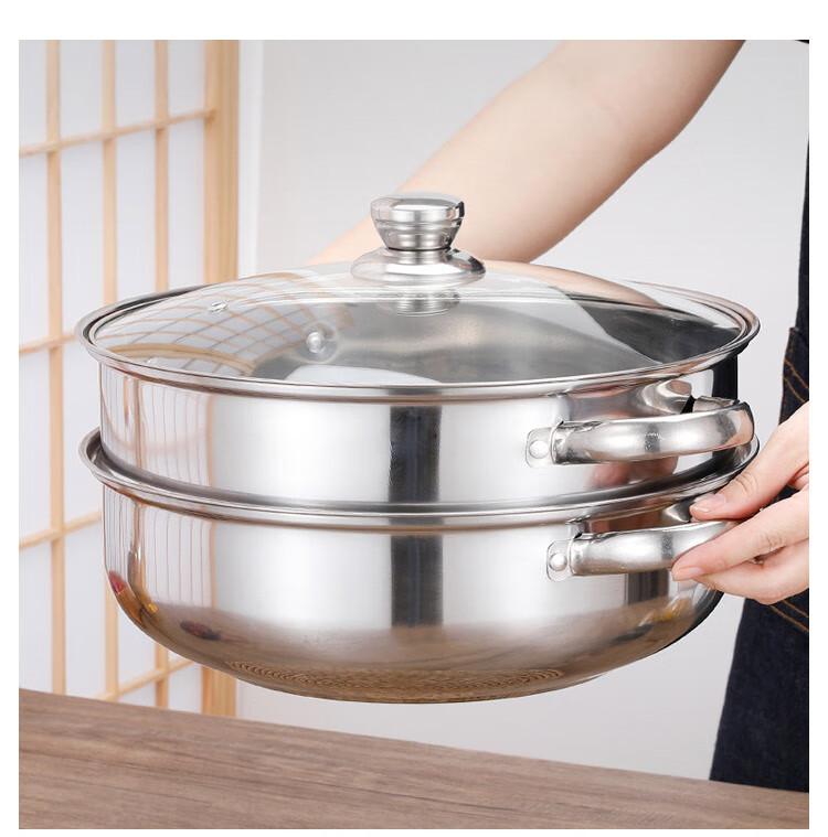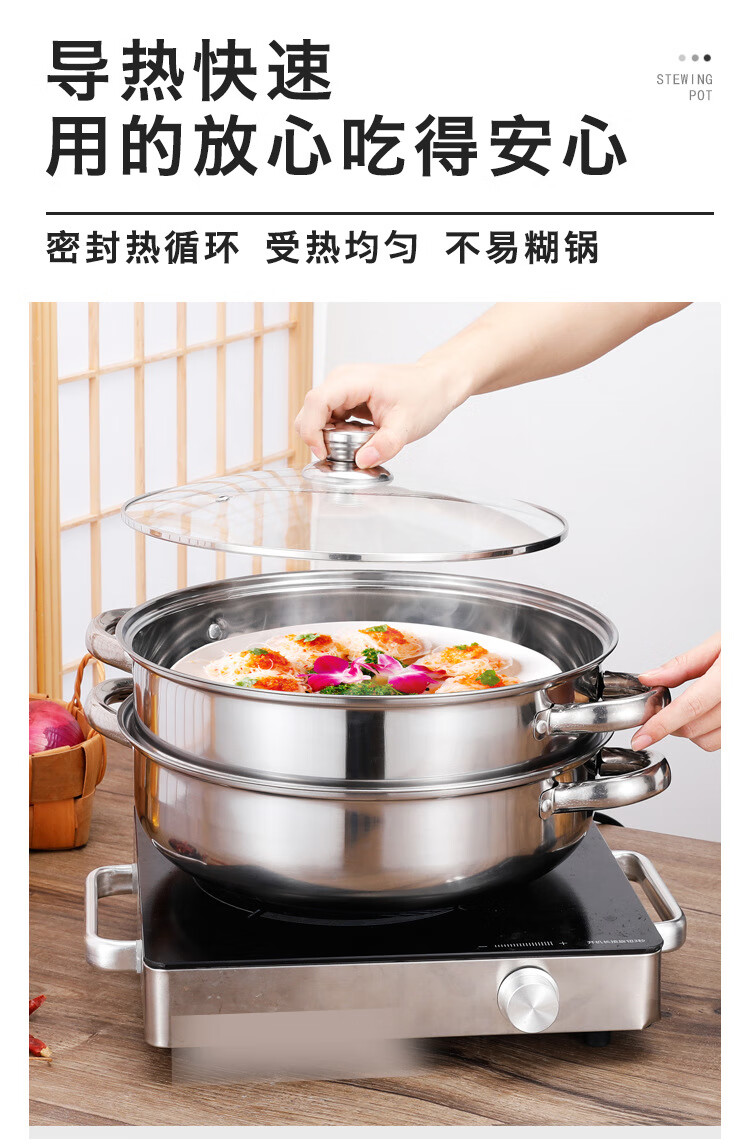 Visible in low light, double-layered stainless steel soup pot with handle, 28cm stew steamer, thickened gas stove, induction cooker, stainless steel steamer, double-layered, double-eared, thick 28cm