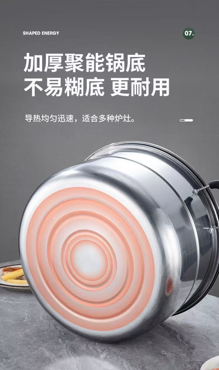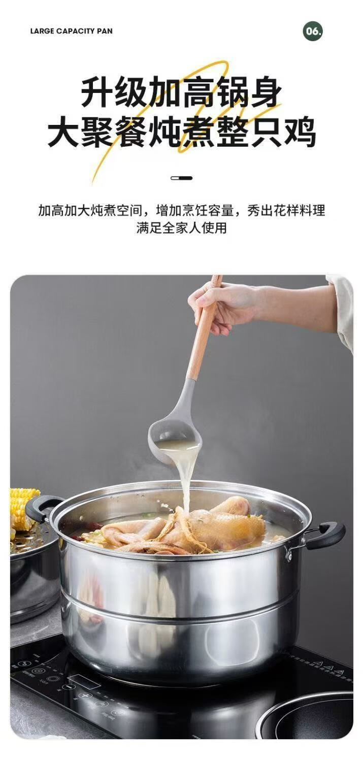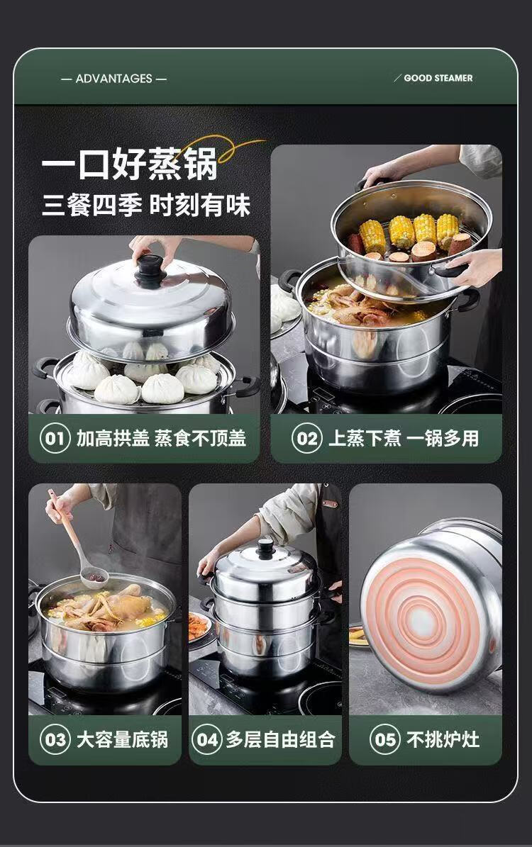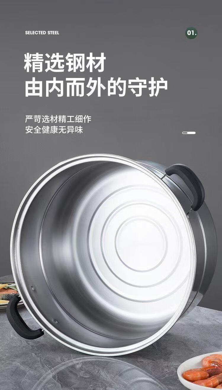 Thickened stainless steel double-layer steamer household two- and three-layer pot large soup pot steamed buns steamed fish pot induction cooker gas stove thickened version 3 layers 32cm