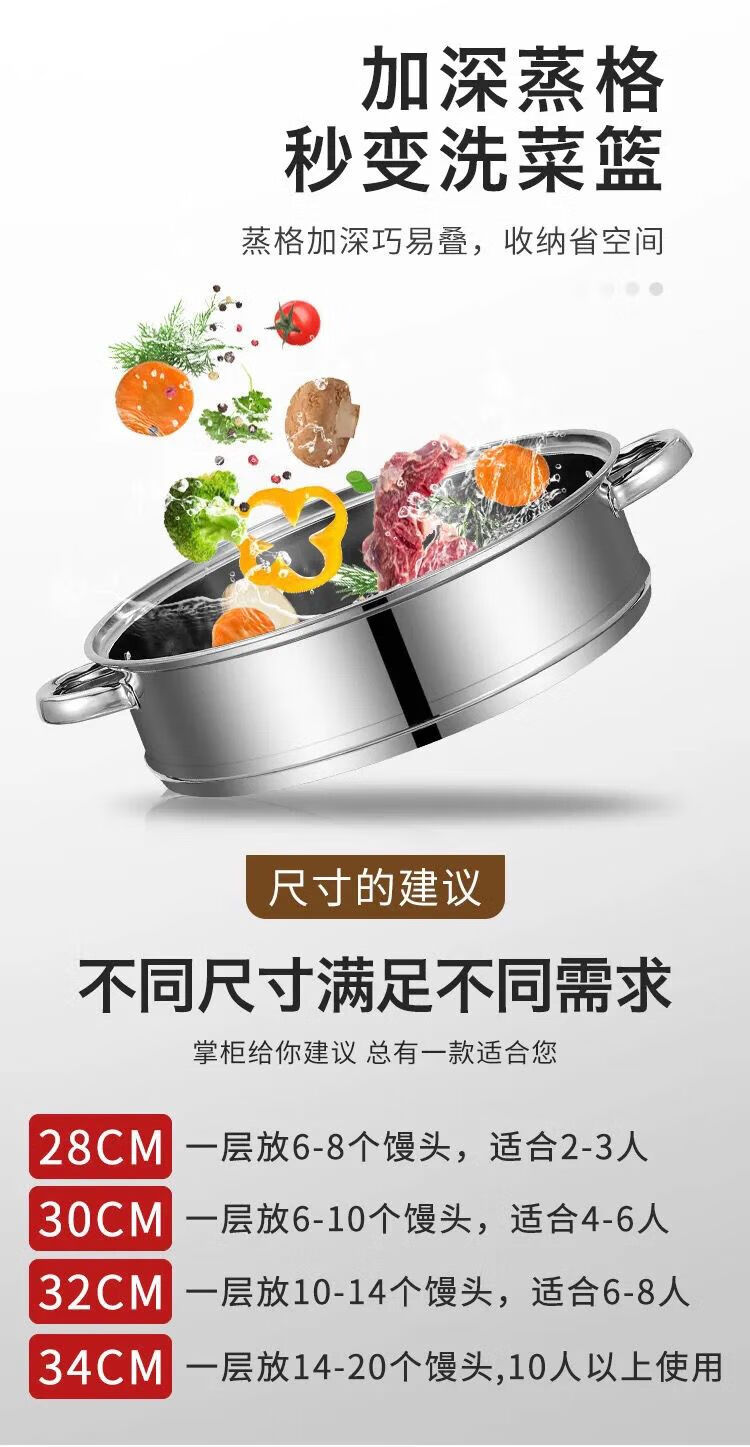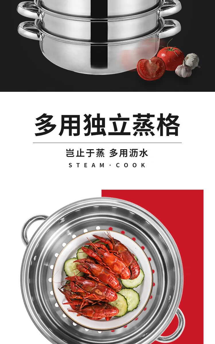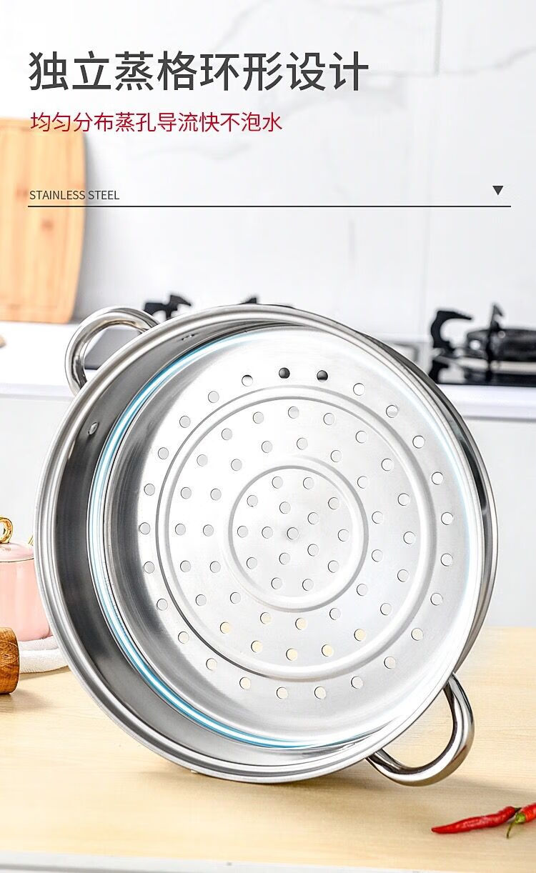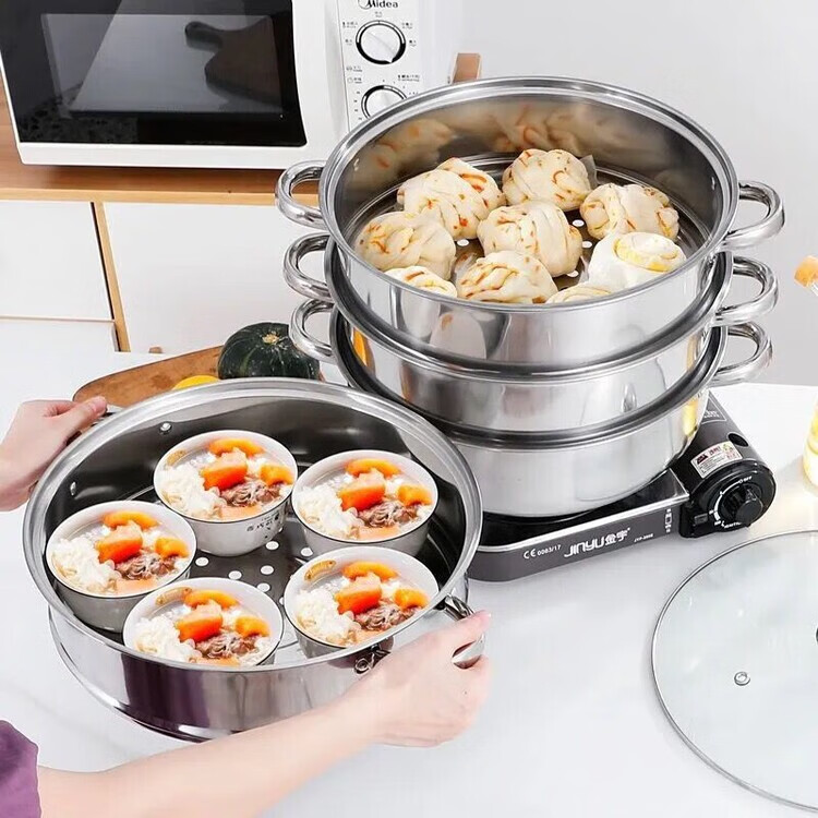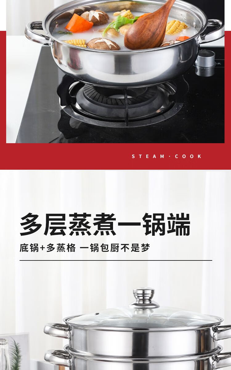 Hua Muxi thickened stainless steel steamer steamed buns soup pot hot pot two-layer three-layer multi-layer steamer induction cooker gas stove pot extra thick and deepened 34cm five layers 1 pot + 4 steamers free steaming cloth scouring pad