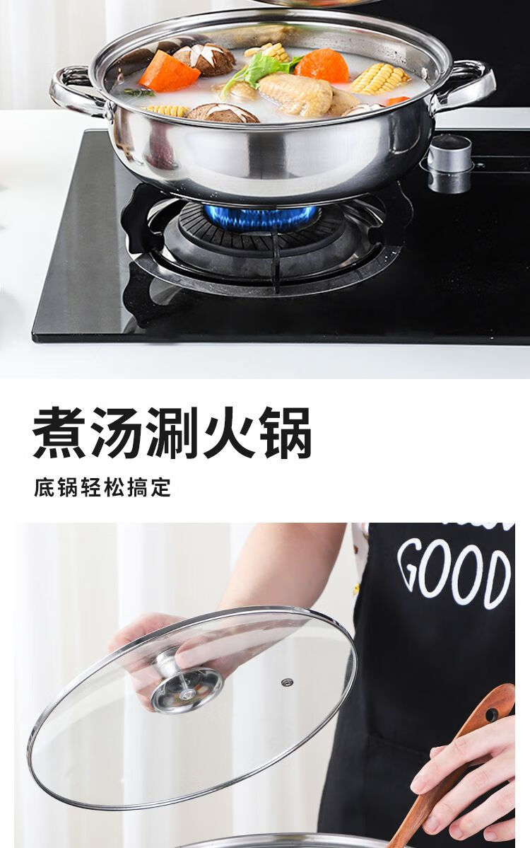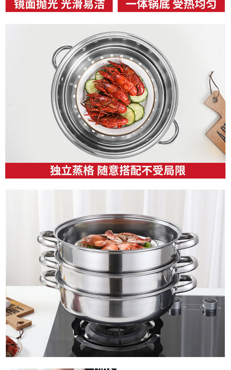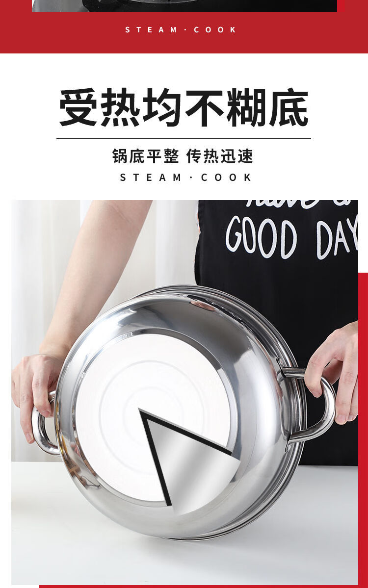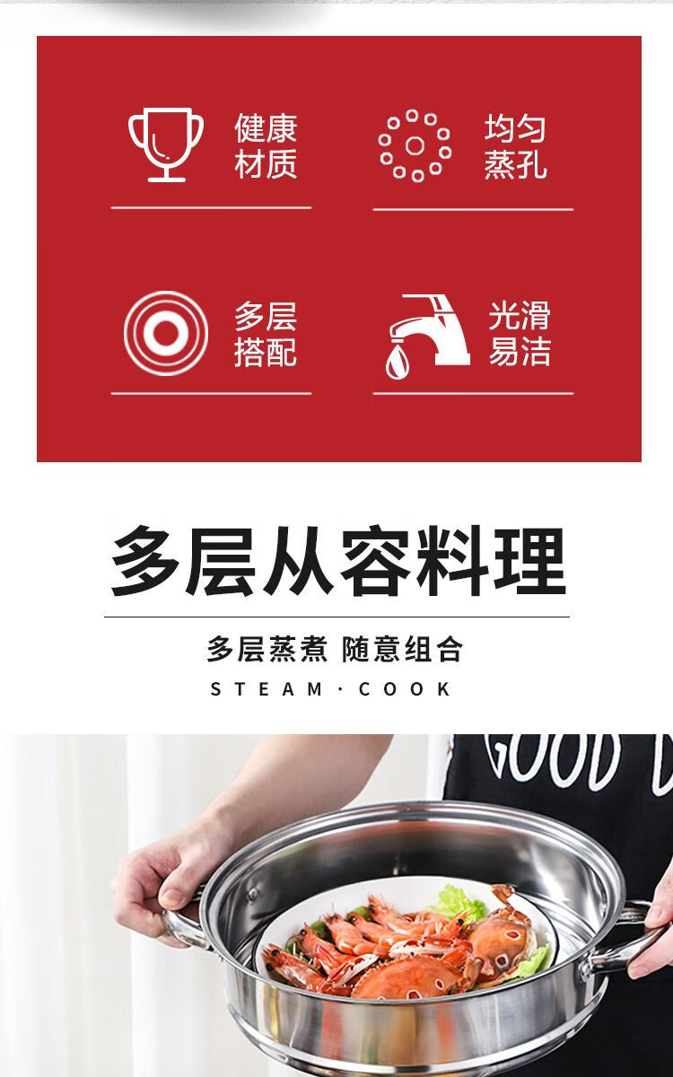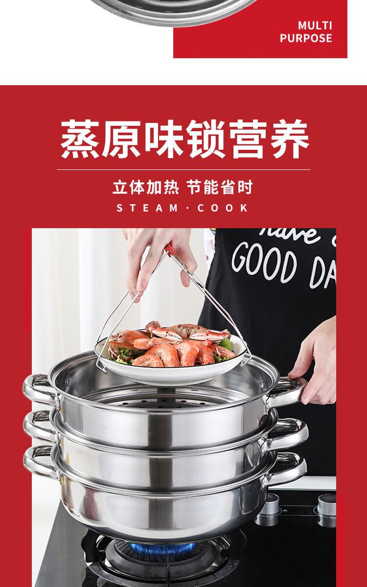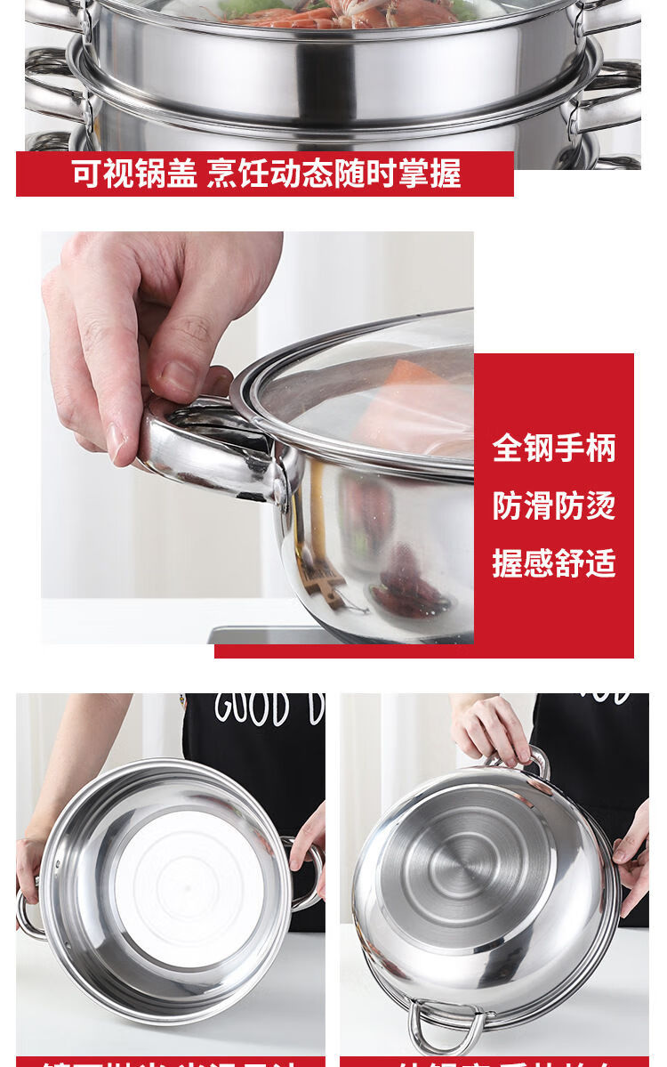 Hua Muxi thickened stainless steel steamer steamed buns soup pot hot pot two-layer three-layer multi-layer steamer induction cooker gas stove pot extra thick and deepened 34cm five layers 1 pot + 4 steamers free steaming cloth scouring pad