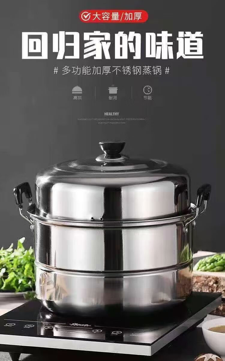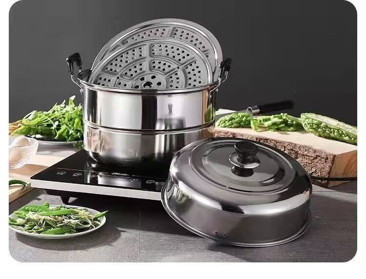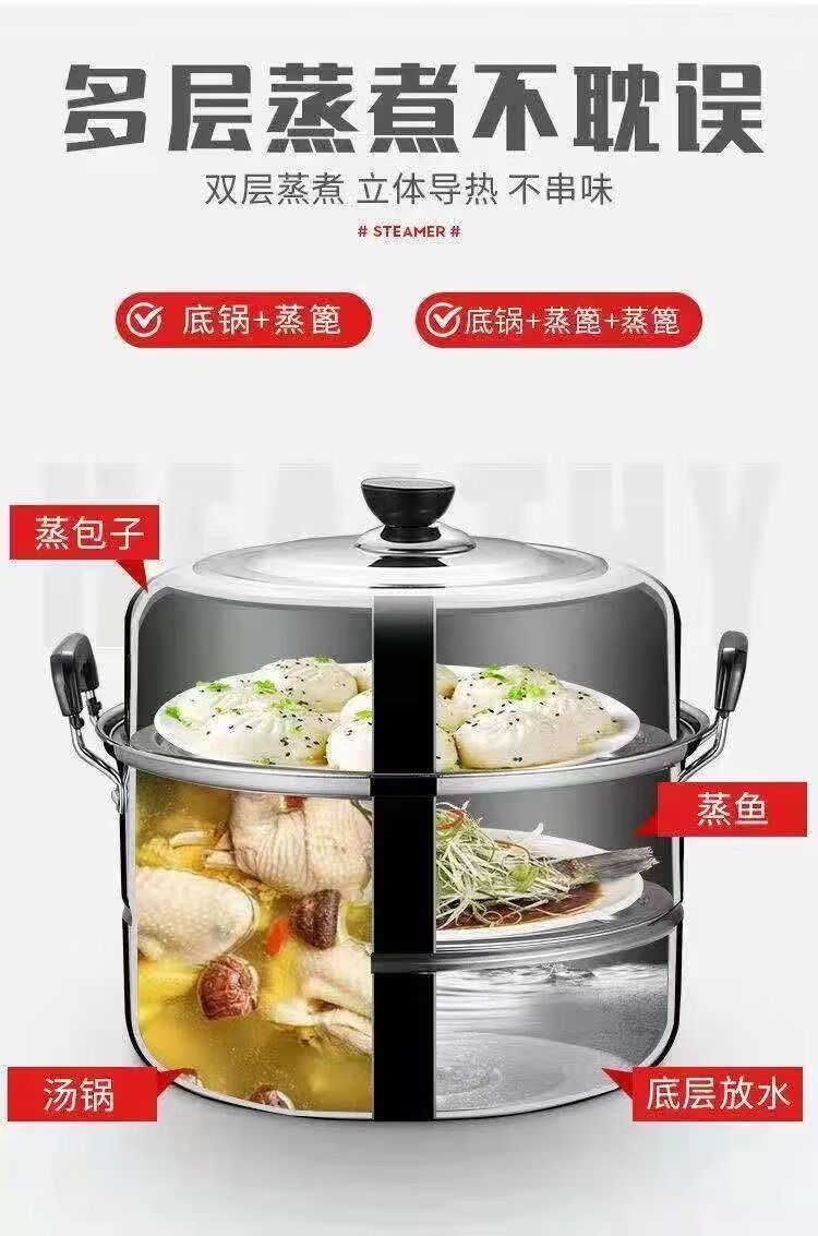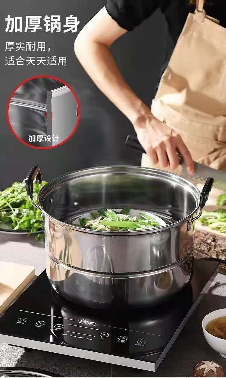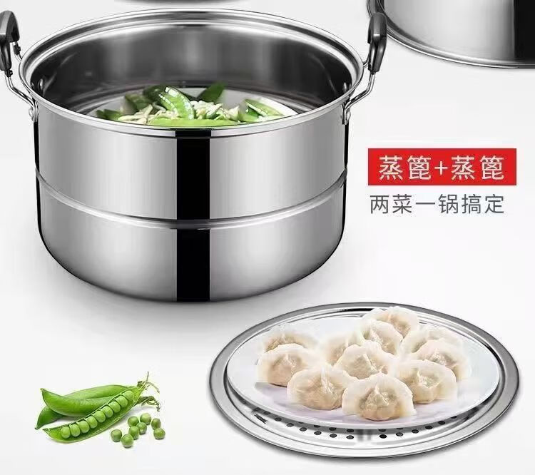 Ye Yu thickened large steamer stainless steel household two-layer double-layer steamed buns steel pot soup pot induction cooker gas stove pot upgraded extra thick double layer heightening anti-overflow 30cm export genuine inventory special deal