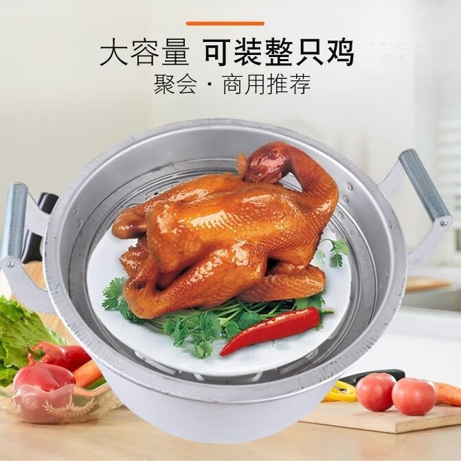 Huamuxi aluminum pot thickened old-fashioned traditional aluminum pot steamer household gas stove steamed buns, porridge and soup aluminum steamer 30 pieces with steaming sheet 1 outer diameter 32cm