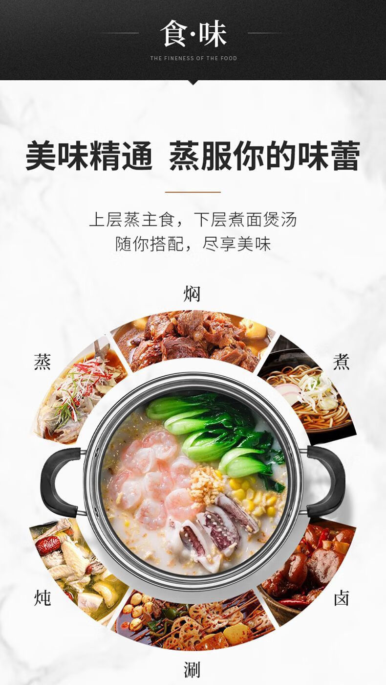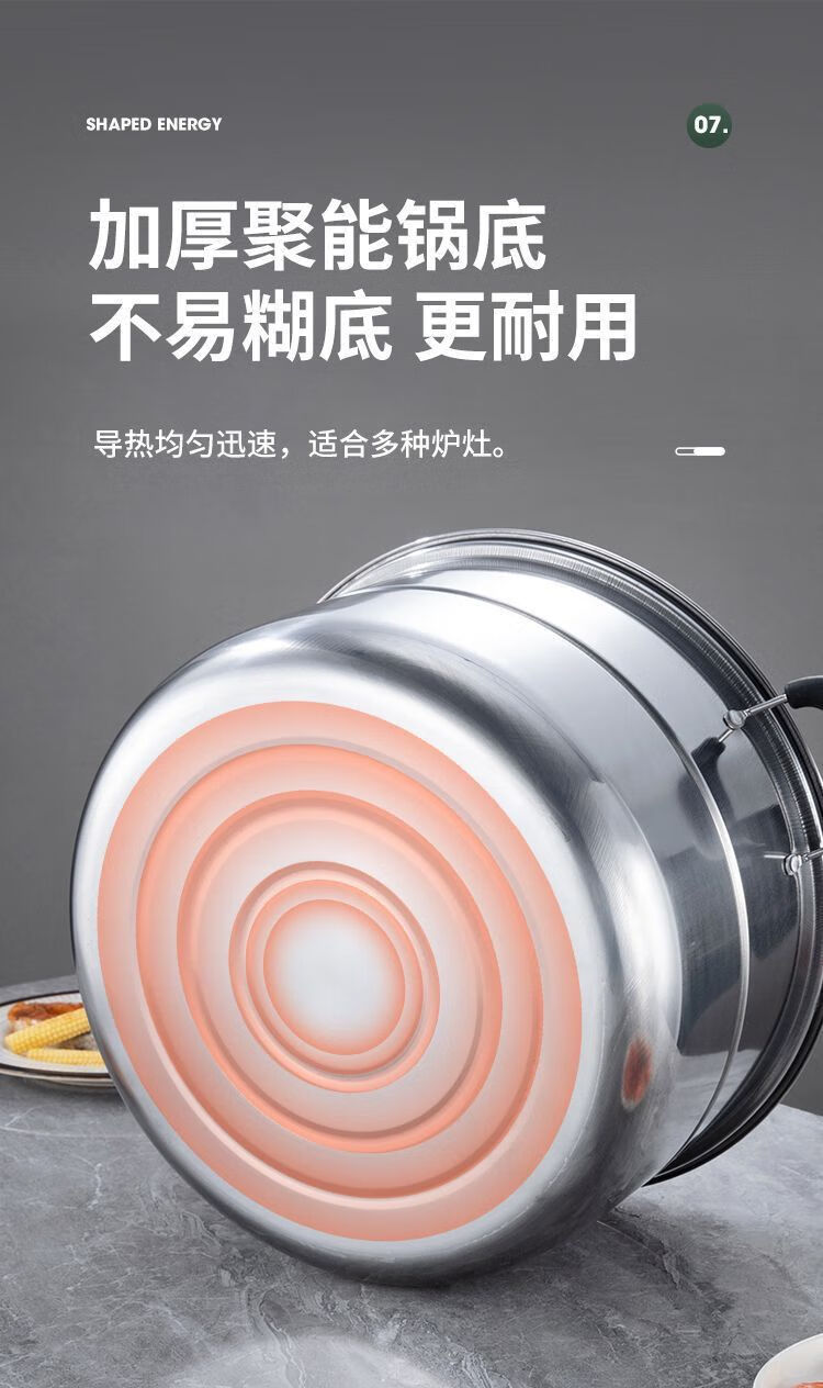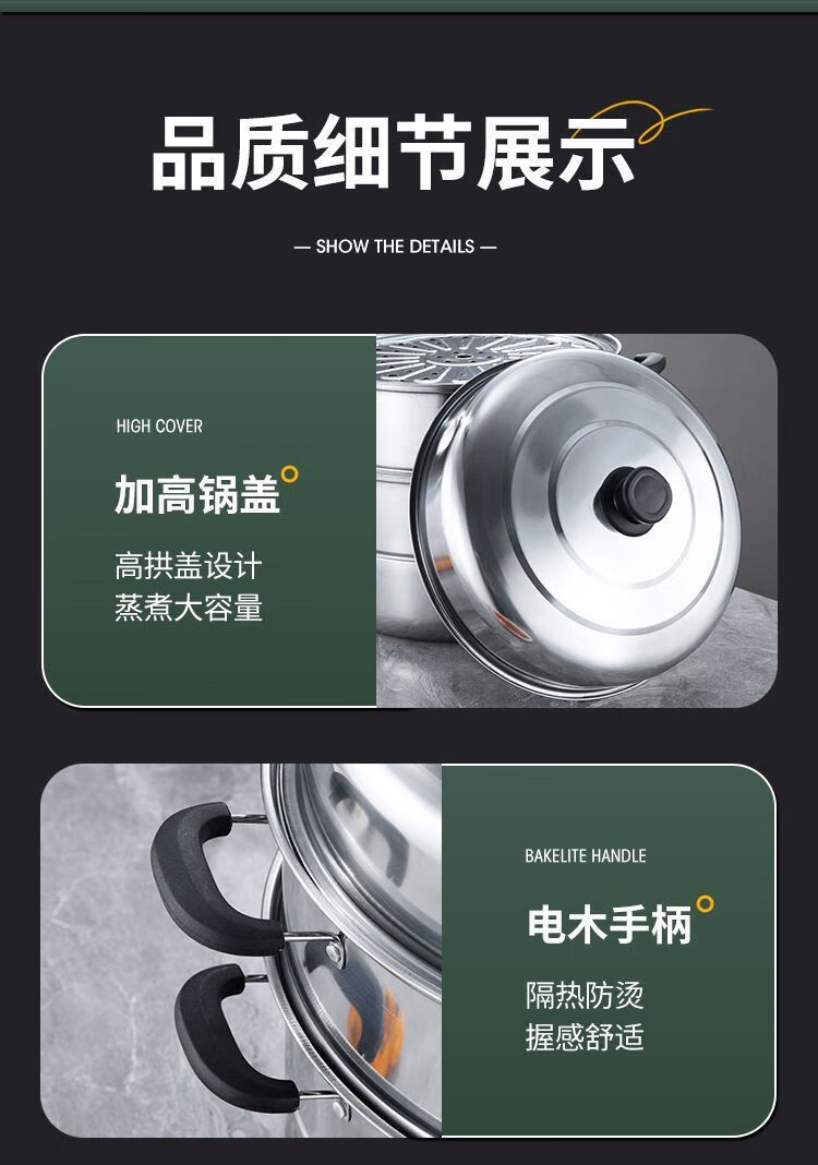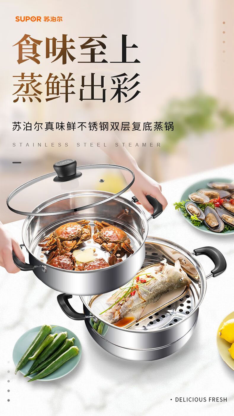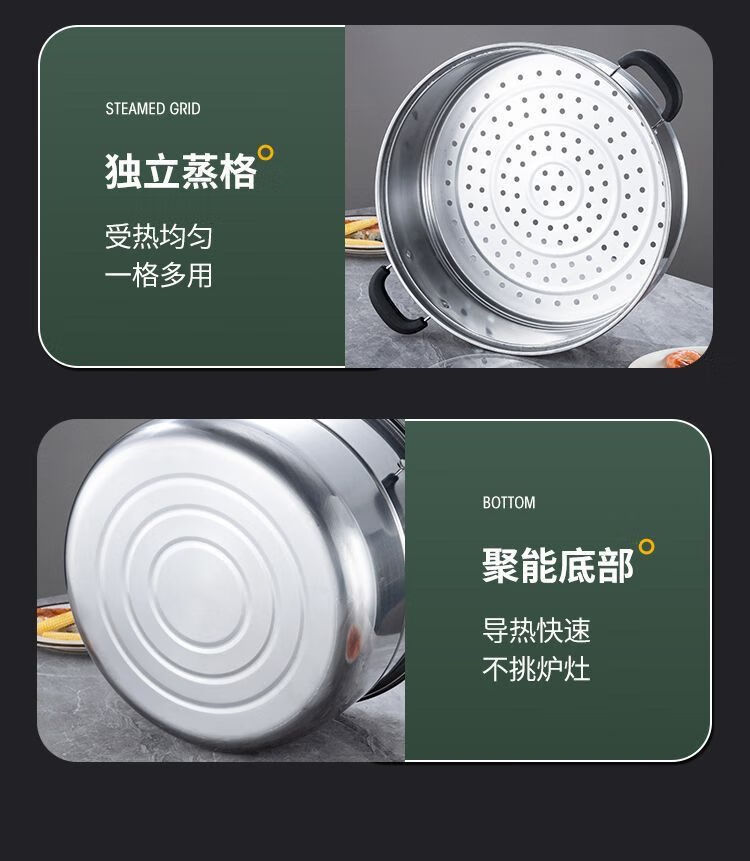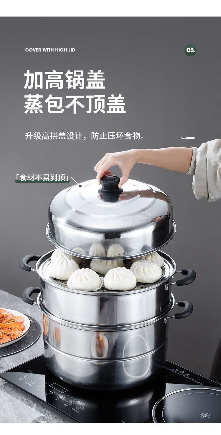 Thickened steamer stainless steel soup pot household two-layer three-layer multi-layer steamer hot pot induction cooker open flame universal pot silver 2 layers 26cm