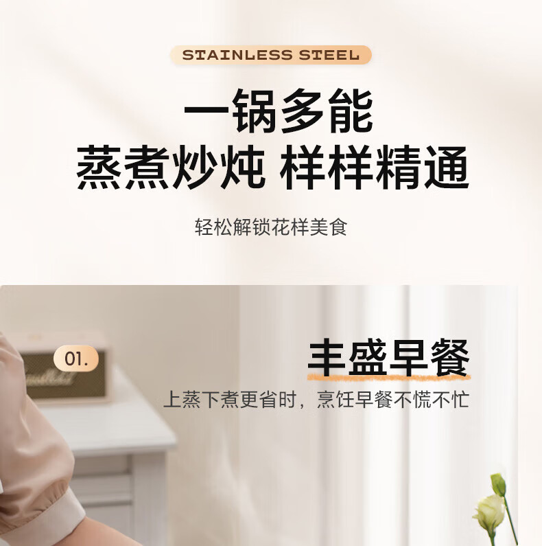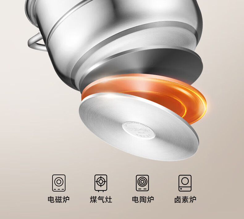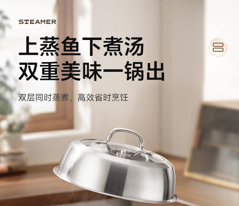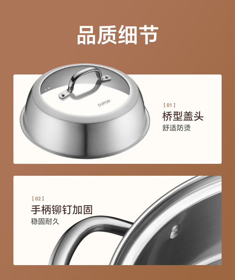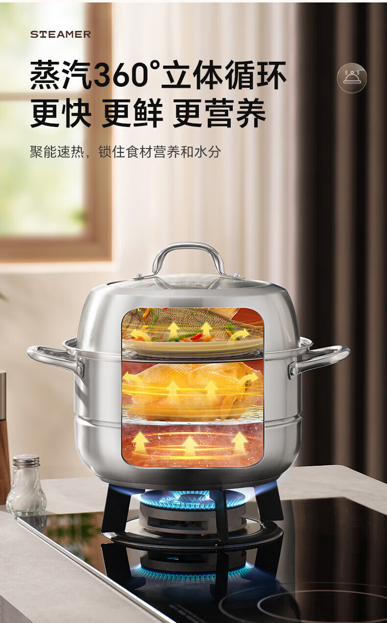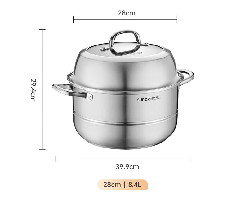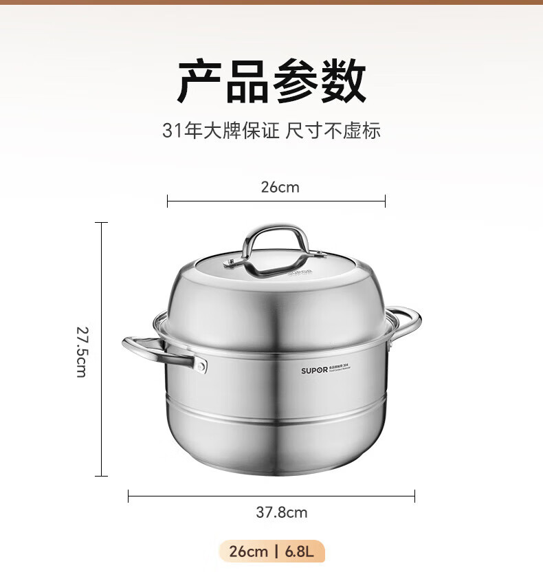 Supor uncoated 304 stainless steel steamer household double-layer large-capacity stew and steam integrated three-layer composite bottom gas stove three-layer large capacity 304 stainless steel 30cm