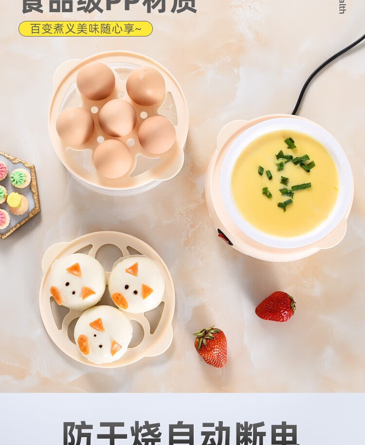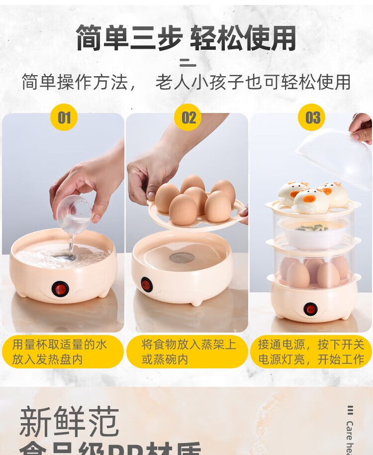 Supor's same type of steamed egg custard and steamed pasta single-layer egg steamer mini automatic power-off household egg cooker multifunctional small breakfast upgraded second layer steaming bowl/measuring cup 0cm