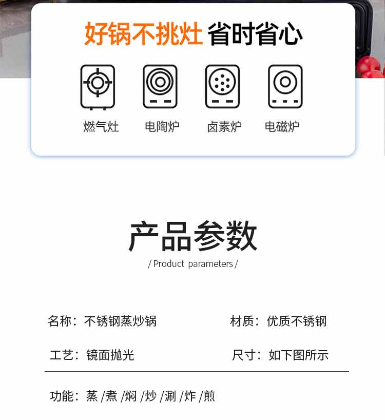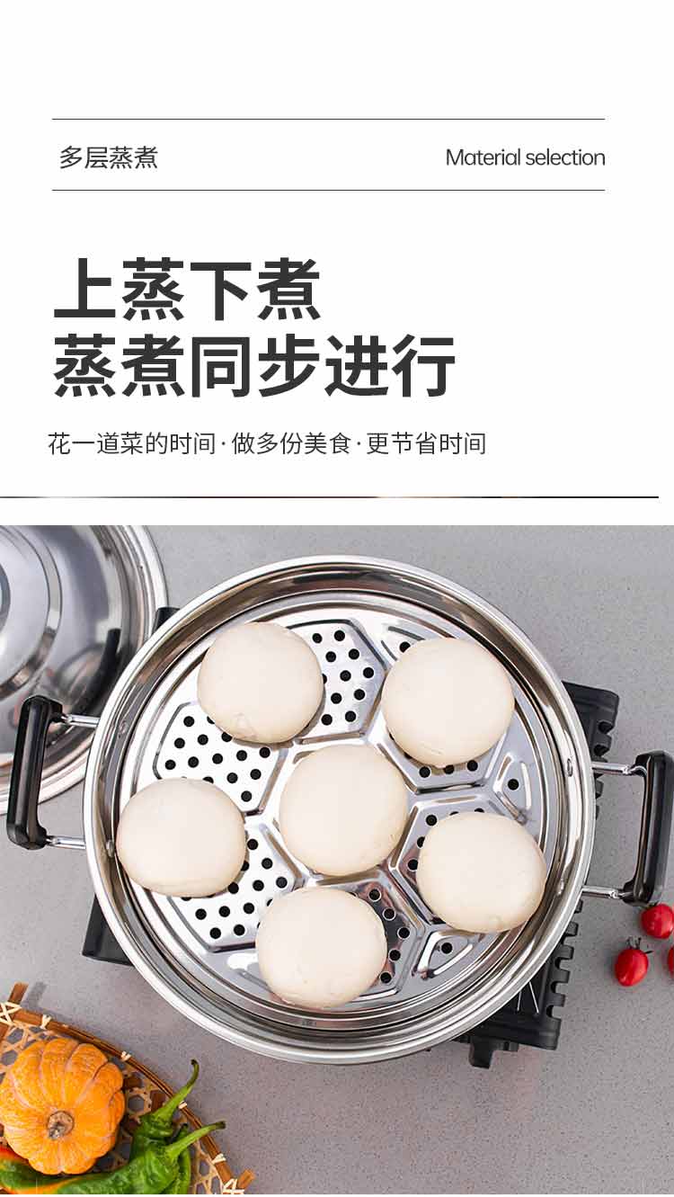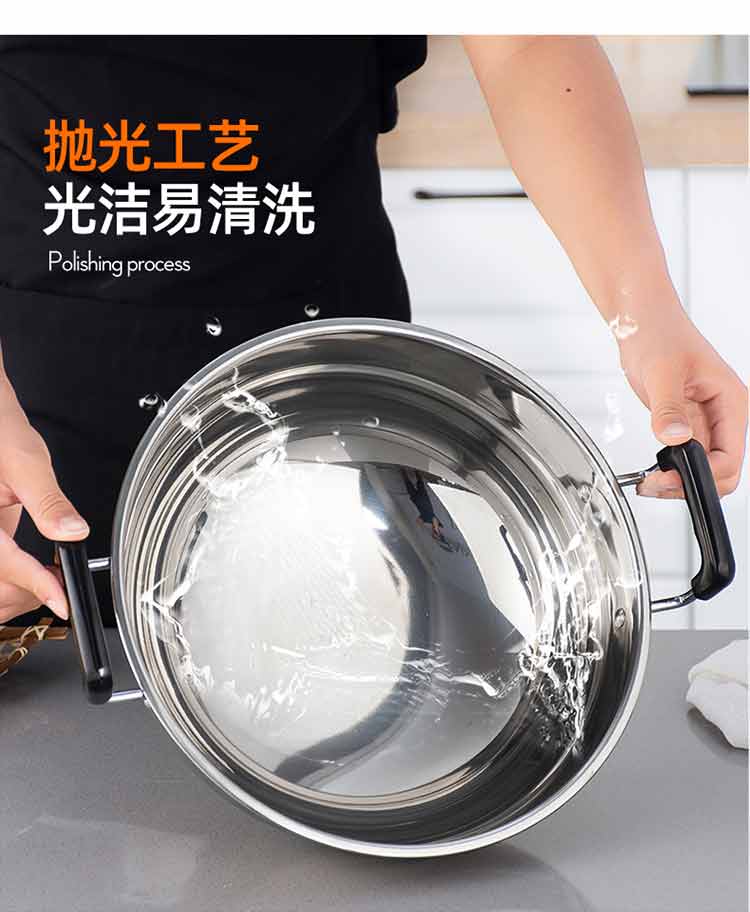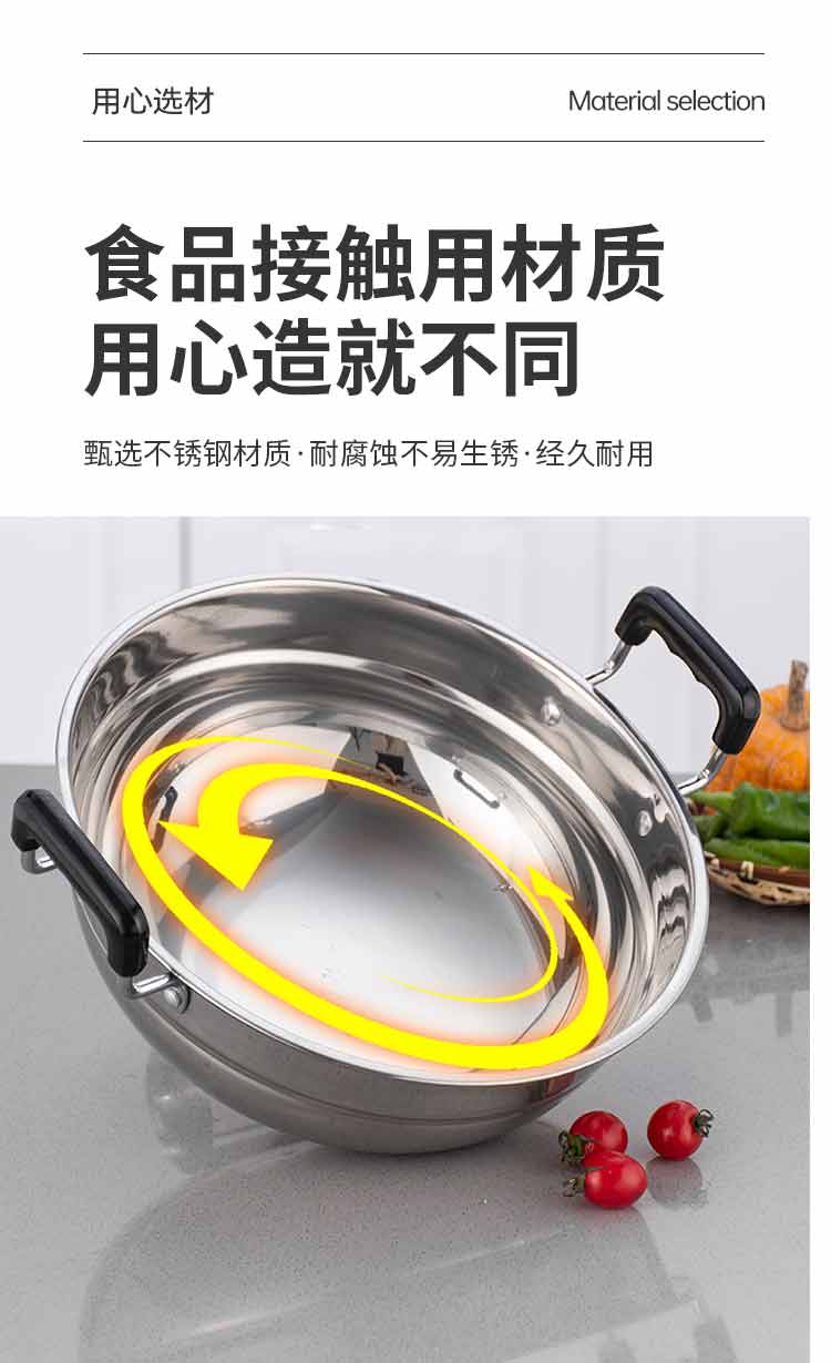 304 stainless steel double-eared wok, steaming and cooking integrated pot, stew and wok, household steamer multi-function, round bottom + steaming sheet + lid 32cm stainless steel steamer