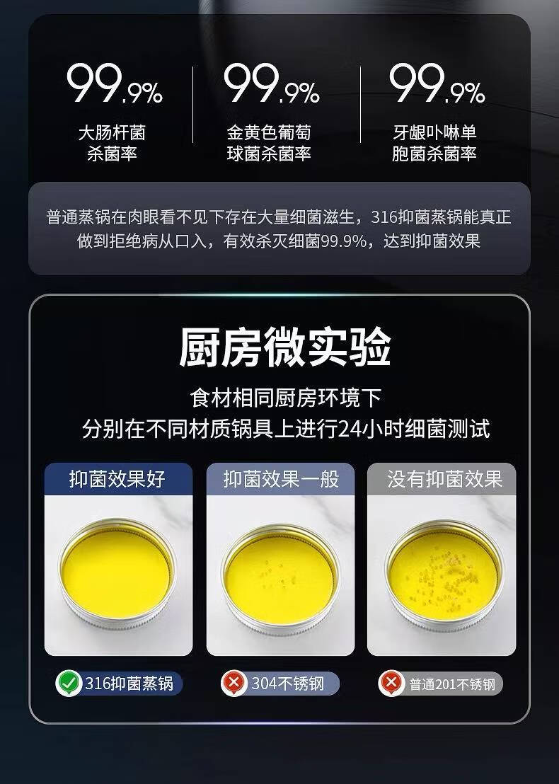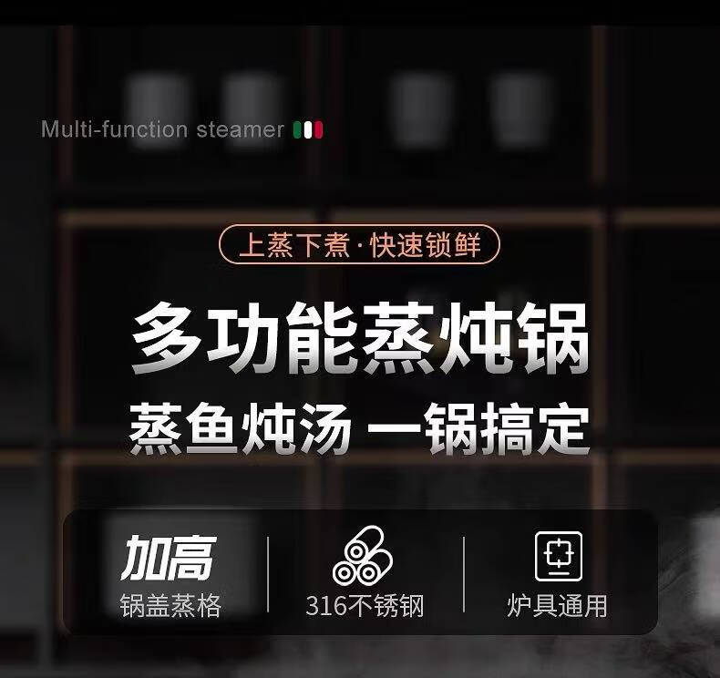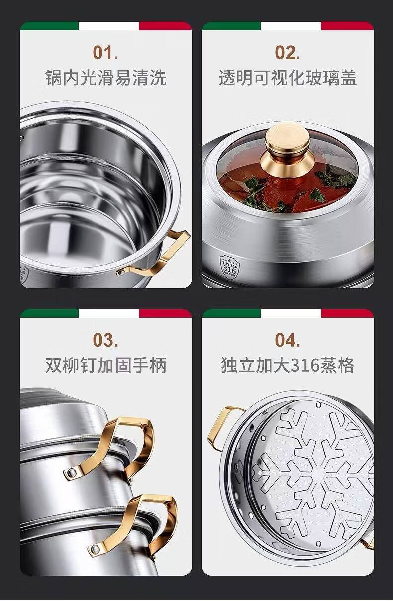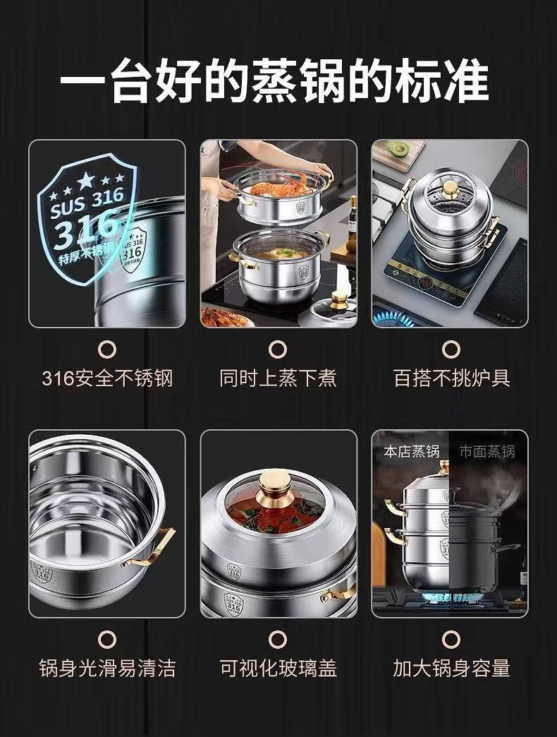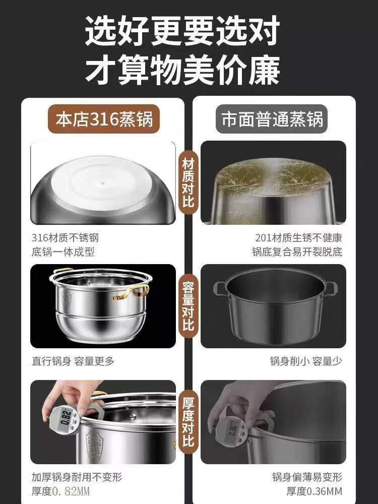 Steamer imported from Germany 316 stainless steel food grade thickened household steaming dual-purpose induction cooker gas universal upgraded 304 steaming sheet (antibacterial grade) 316 gold ear 2 layers 32cm lifetime warranty