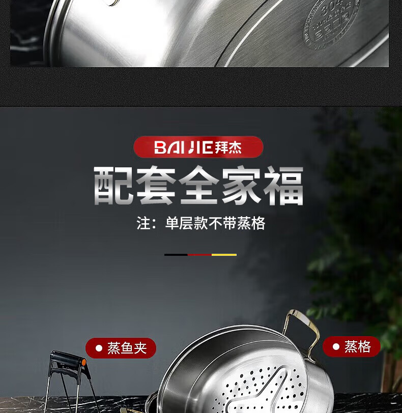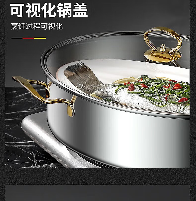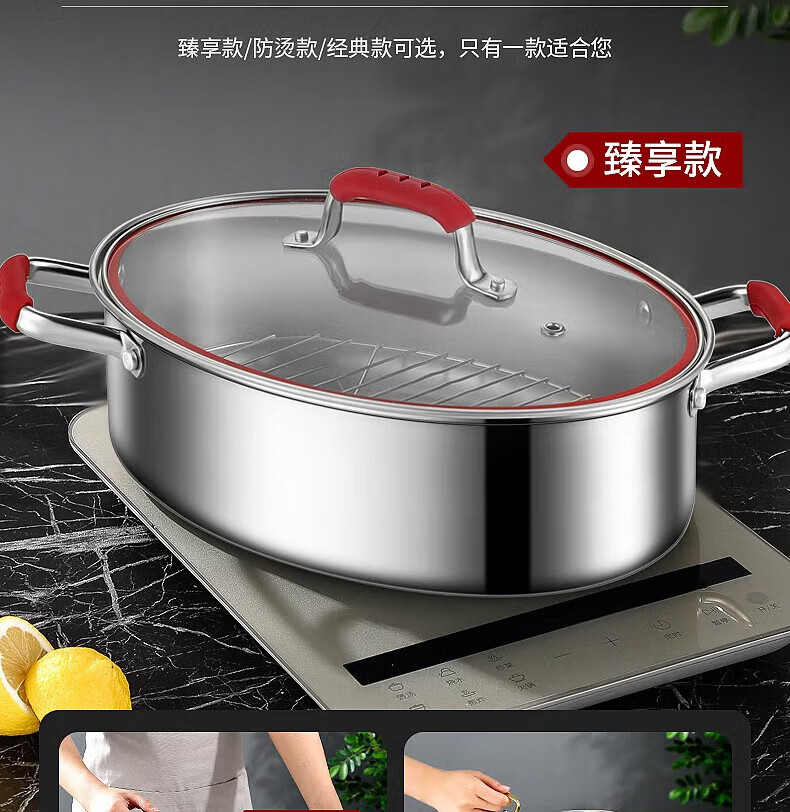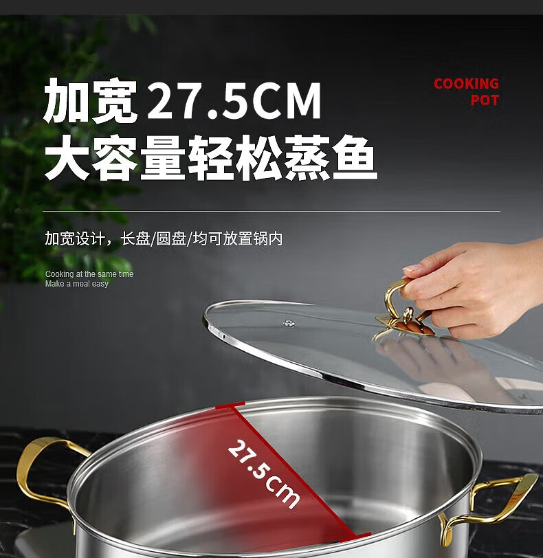 Fish steamer household steamer 304 stainless steel large capacity thickened steamer steamer induction cooker gas oval pot enlarged diameter/large capacity 1 layer 39cm