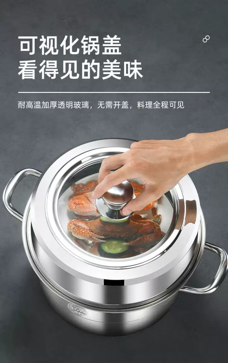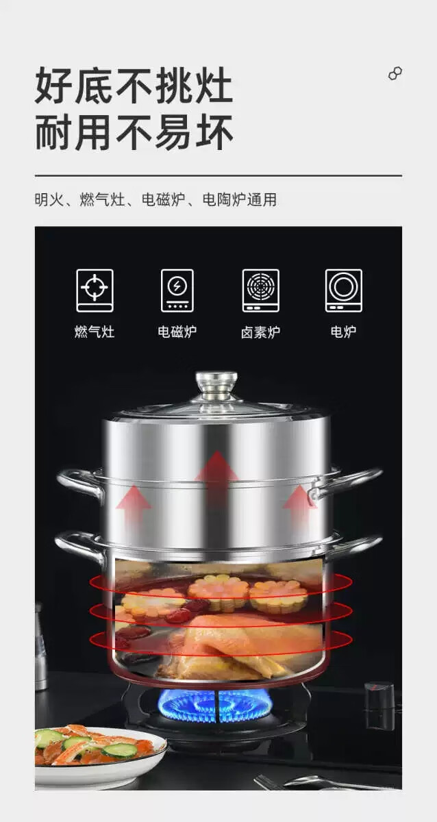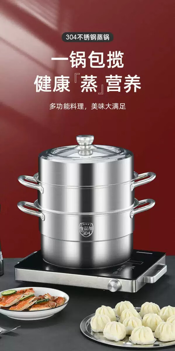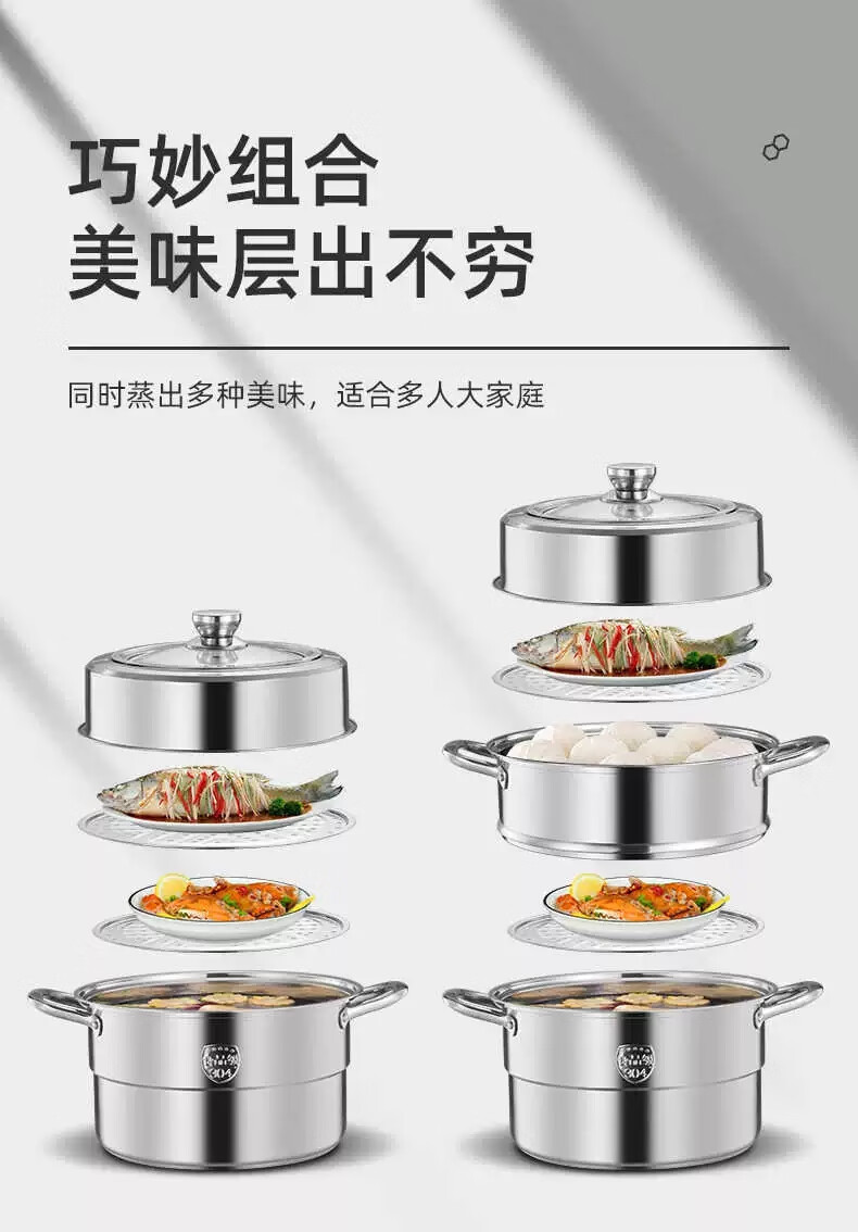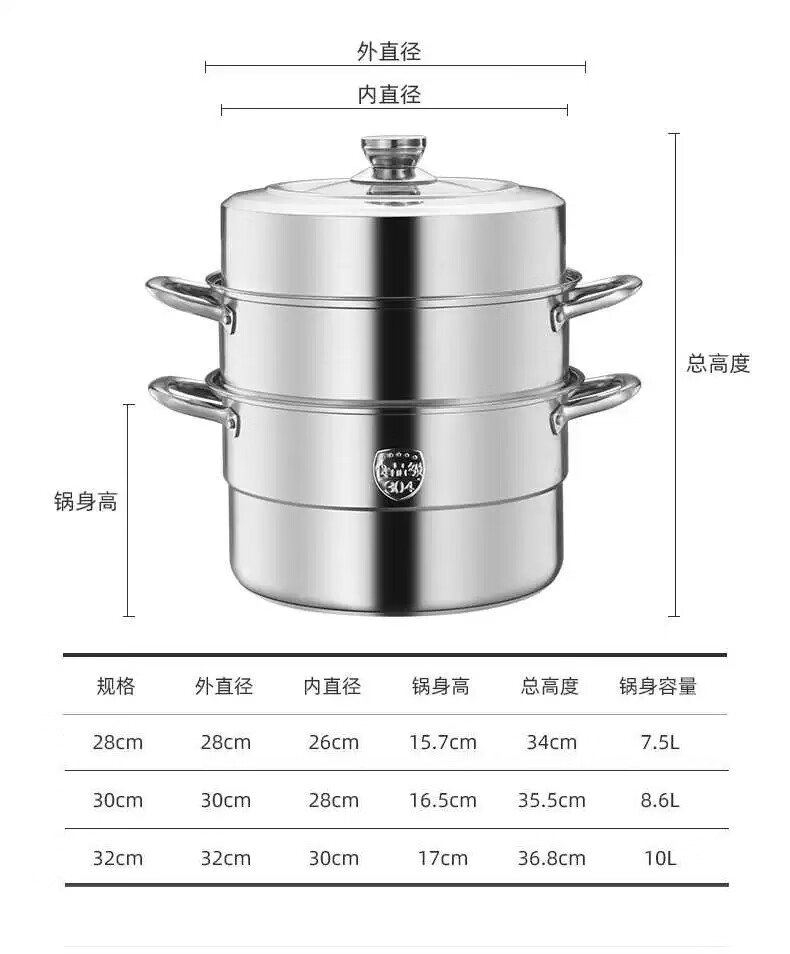 304 stainless steel multi-layer steamer thickened double bottom straight steamer induction cooker gas stove universal 3 layers 32cm