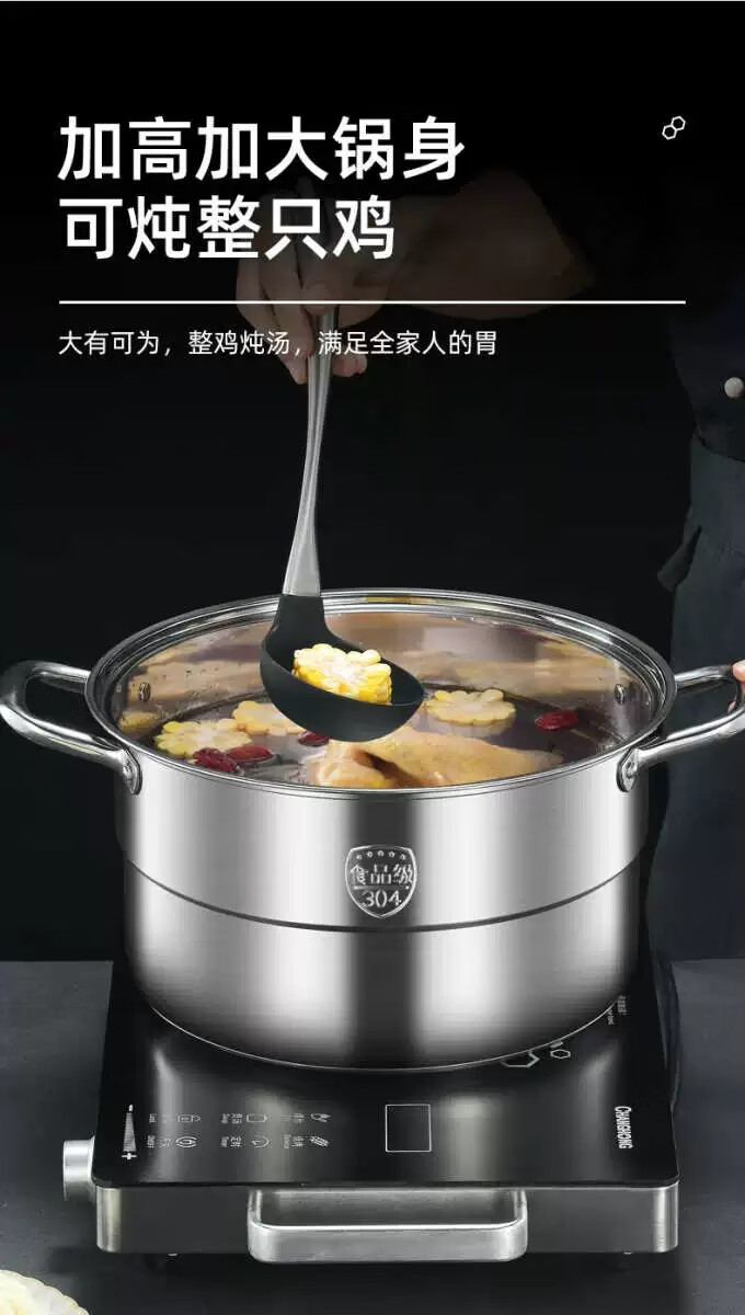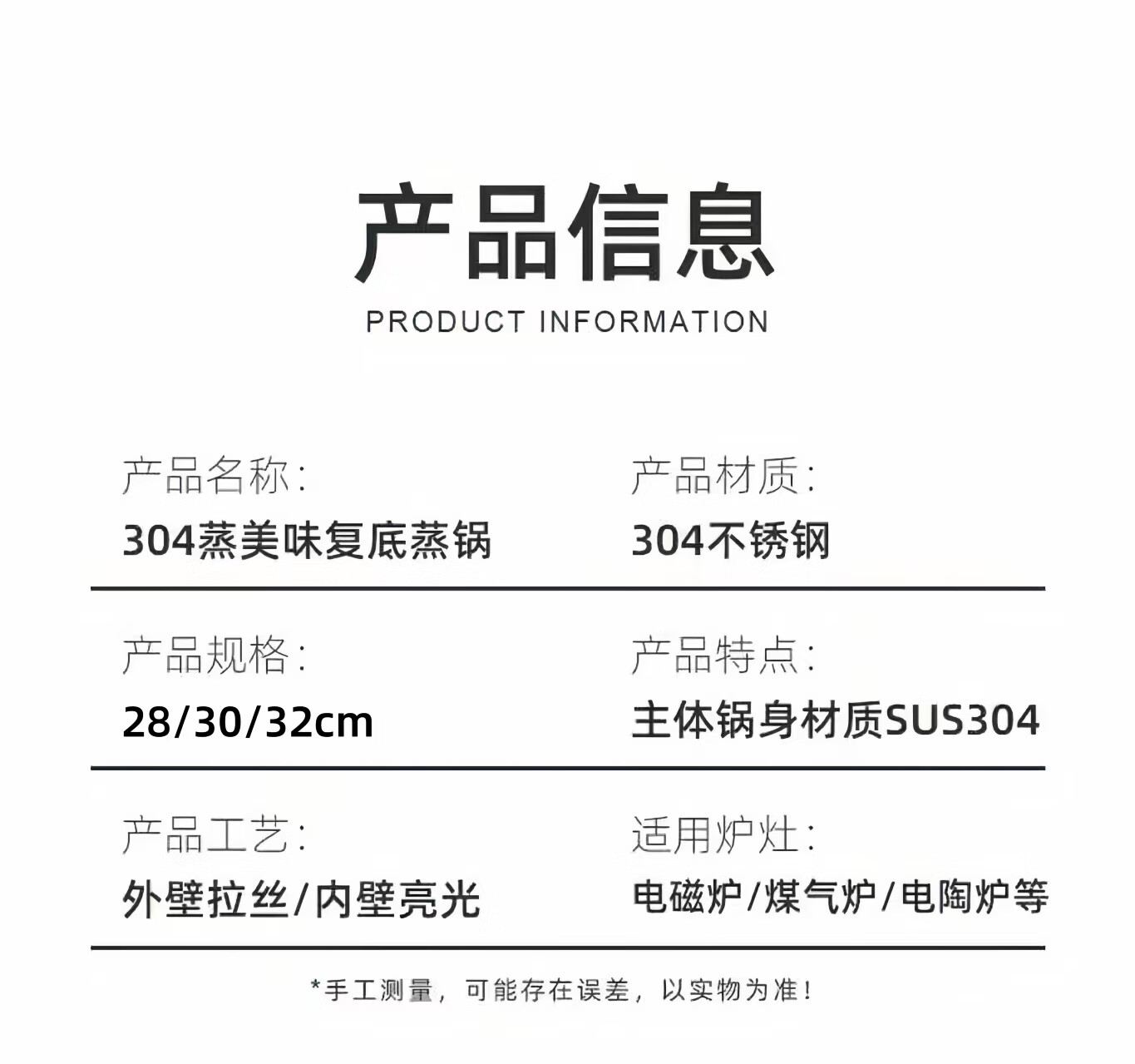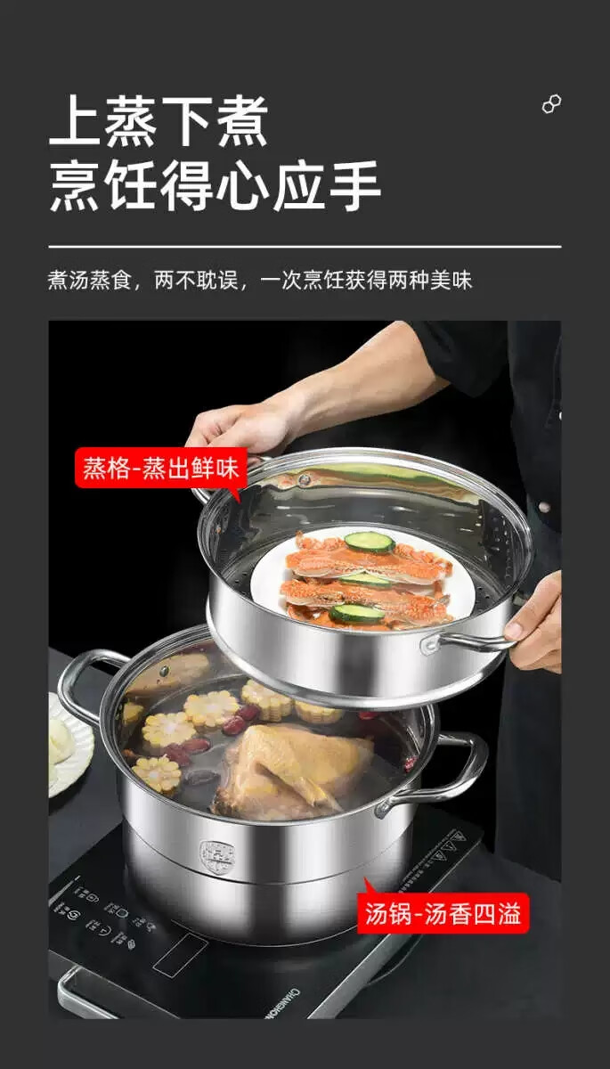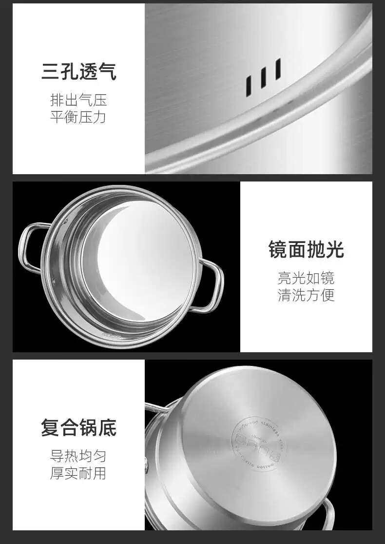 304 stainless steel multi-layer steamer thickened double bottom straight steamer induction cooker gas stove universal 3 layers 32cm
