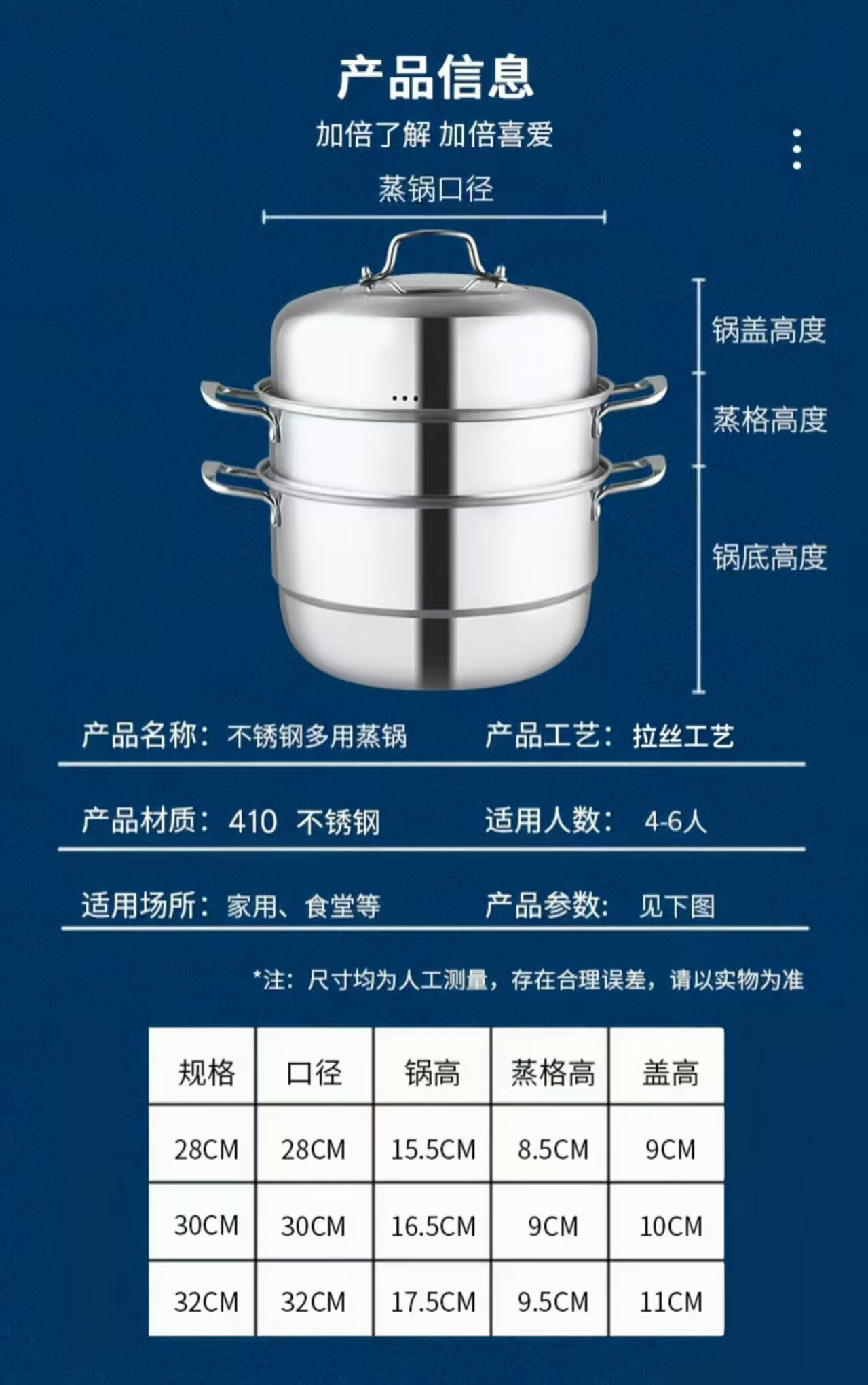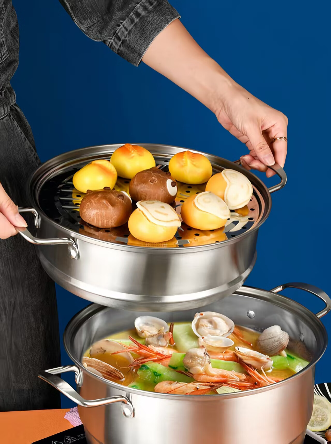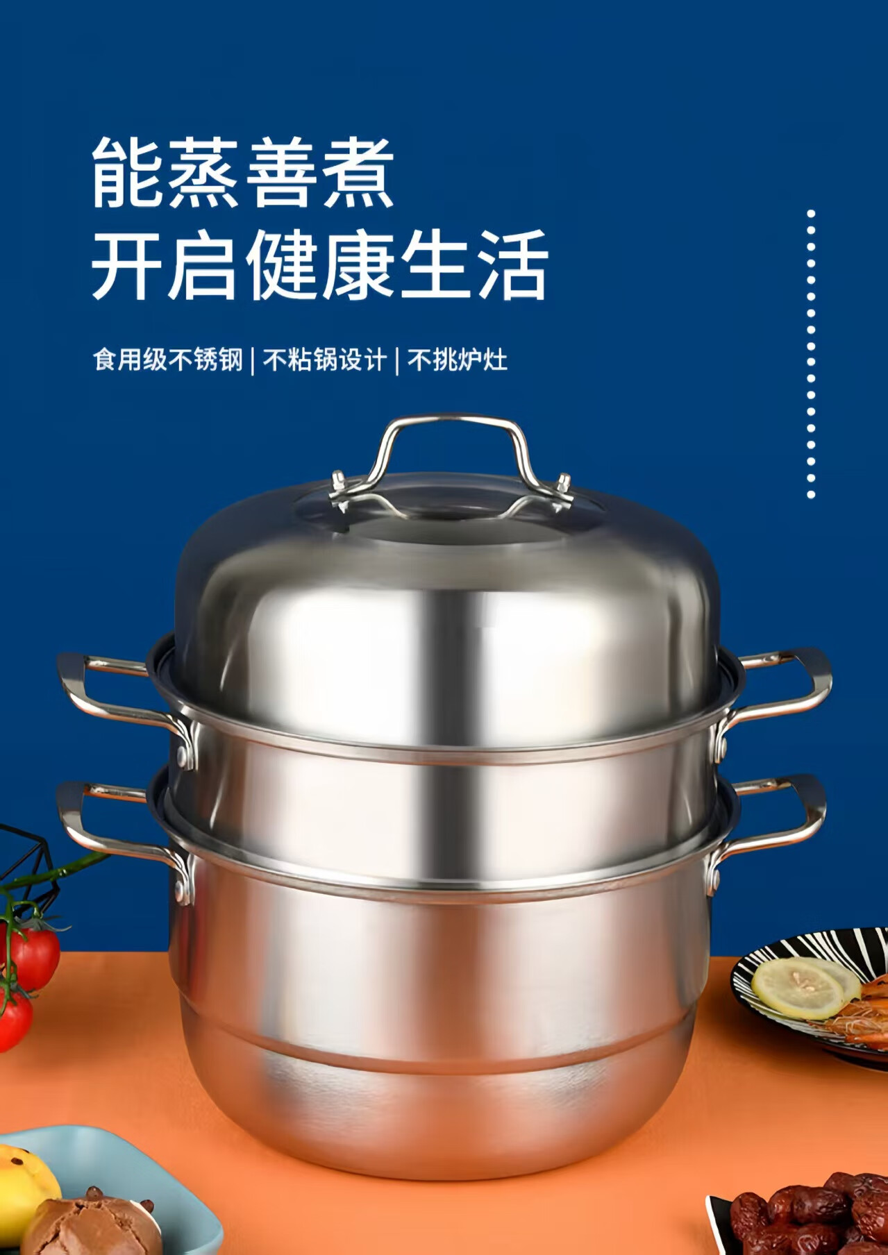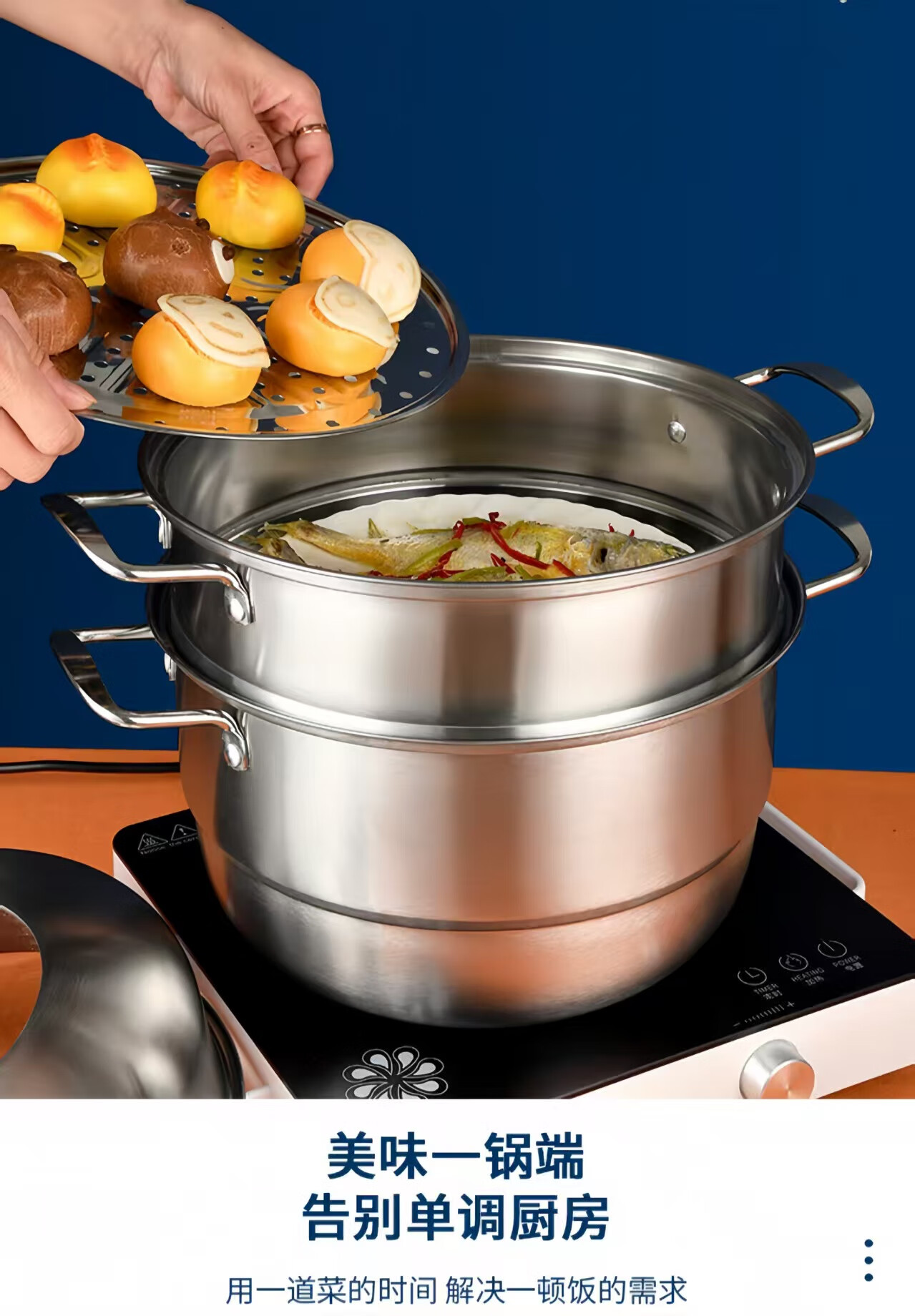 Stainless steel thickened multi-layer steamer steamer induction cooker gas stove universal soup pot multi-function pot 2 layers 24cm