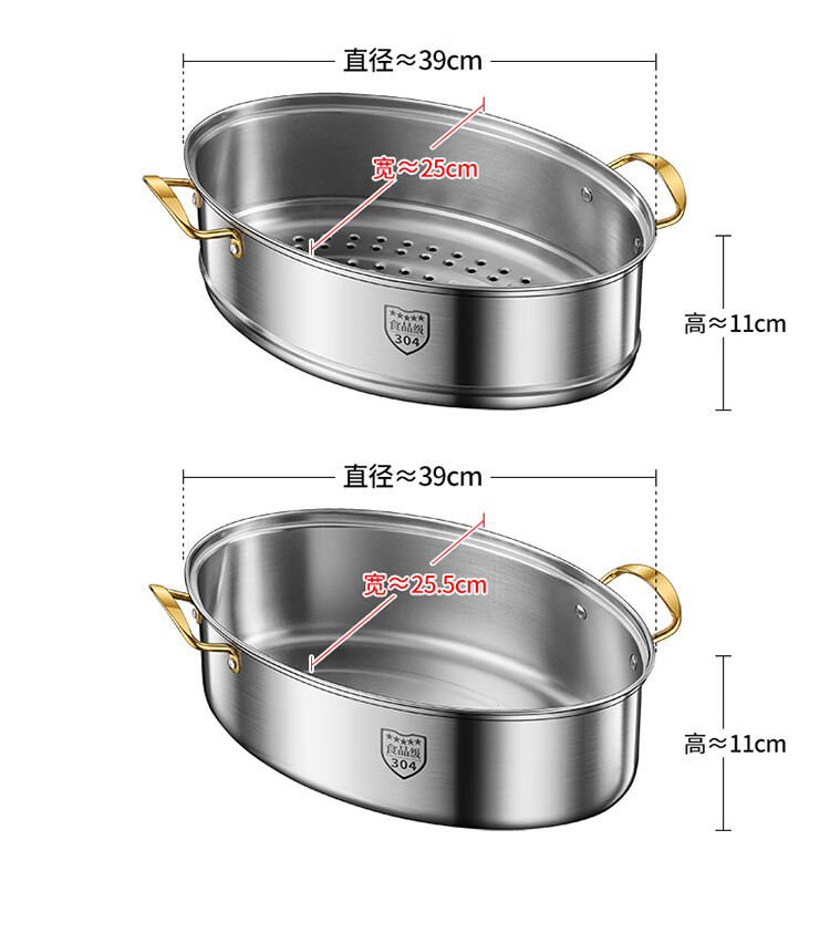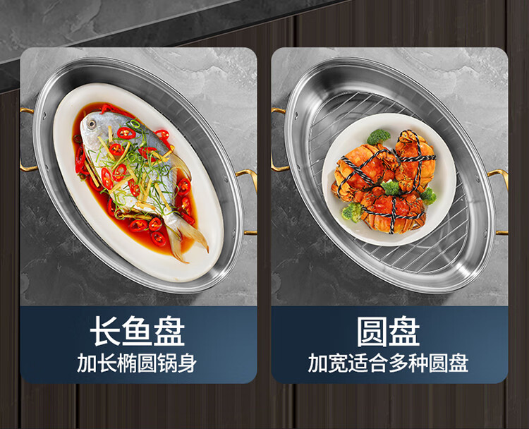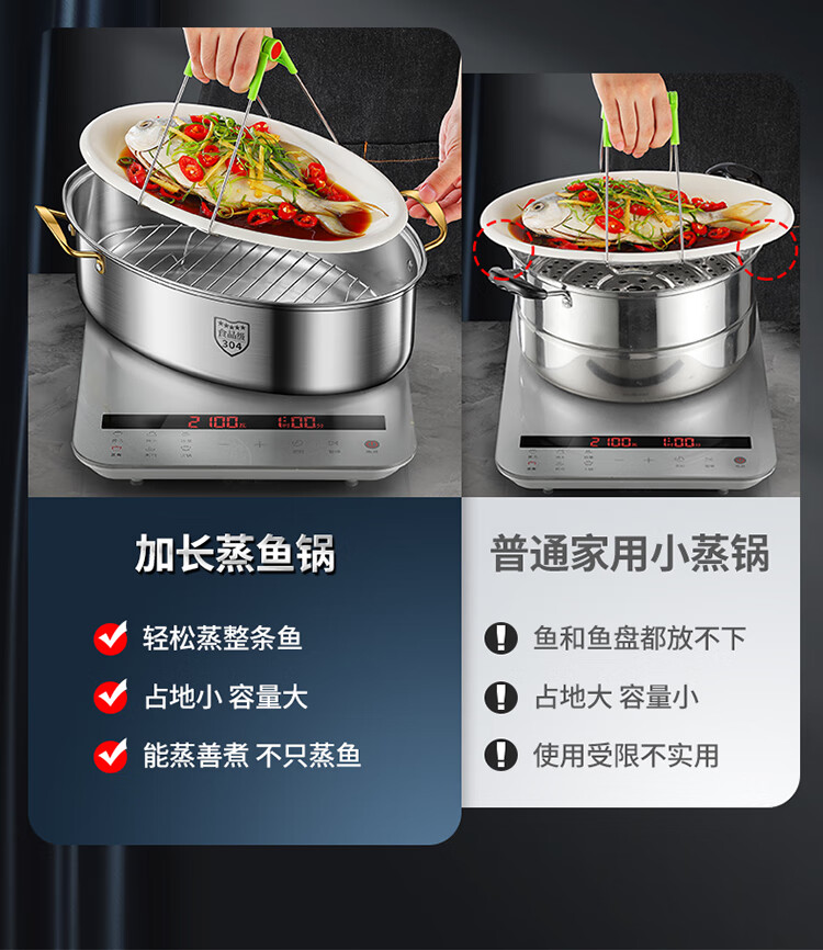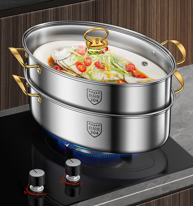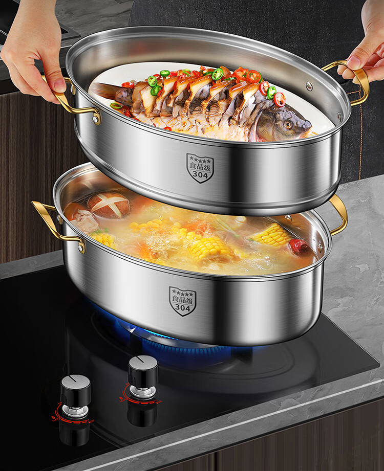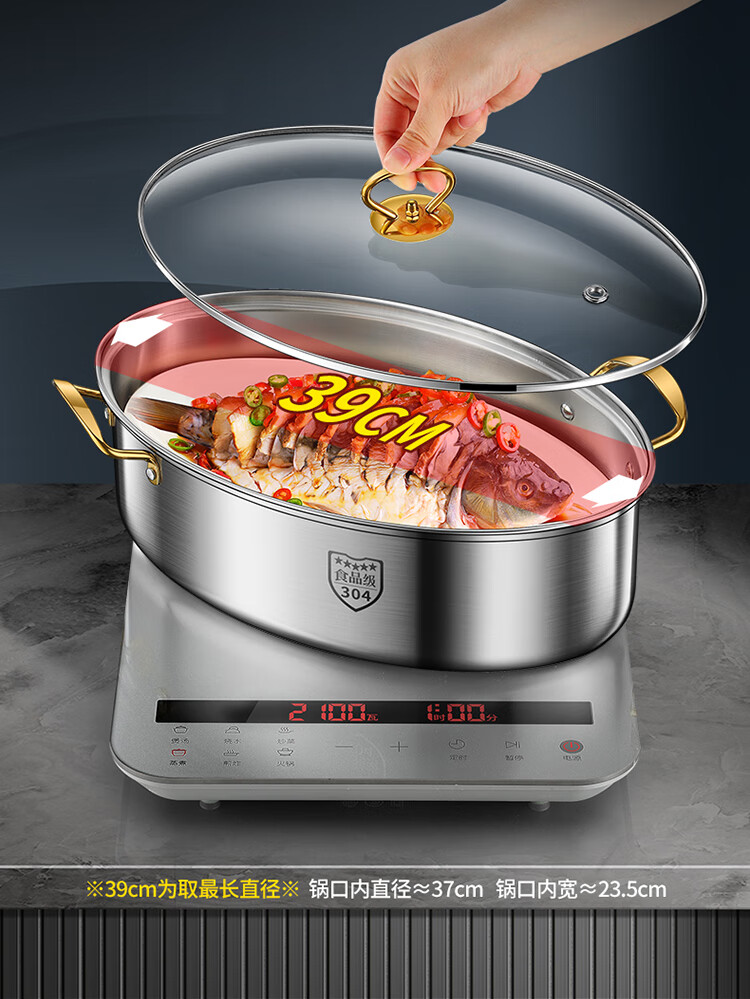 304 fish steamer household artifact stainless steel large capacity large steamer steamer induction cooker oval fish pot 410 food contact steel thickened single layer 1 layer 39cm