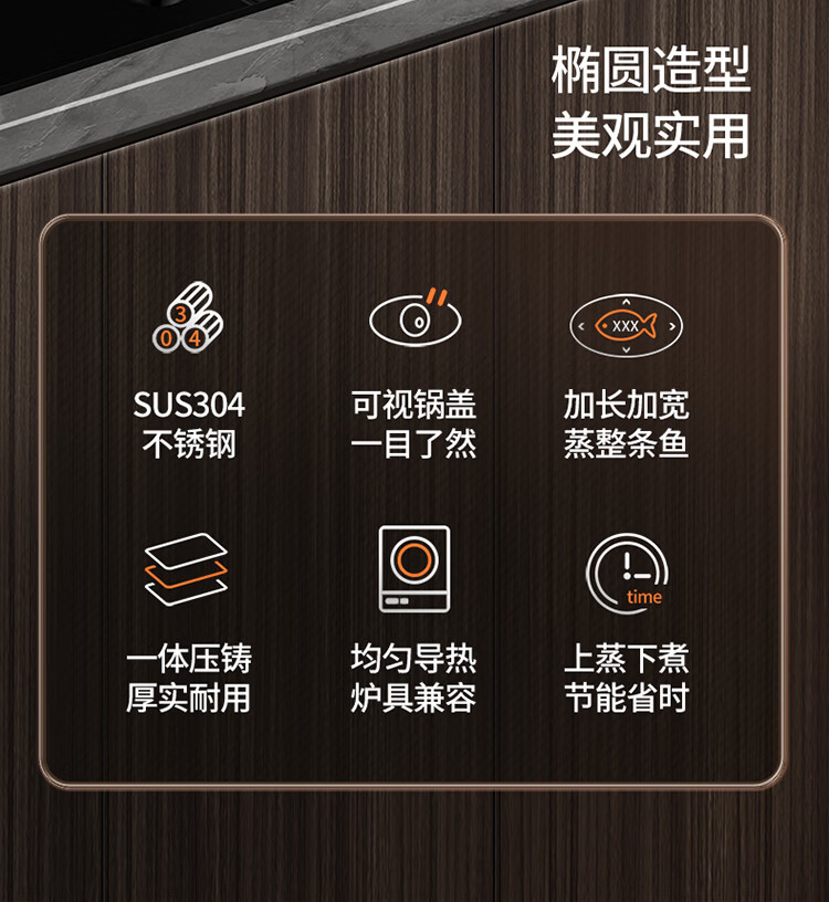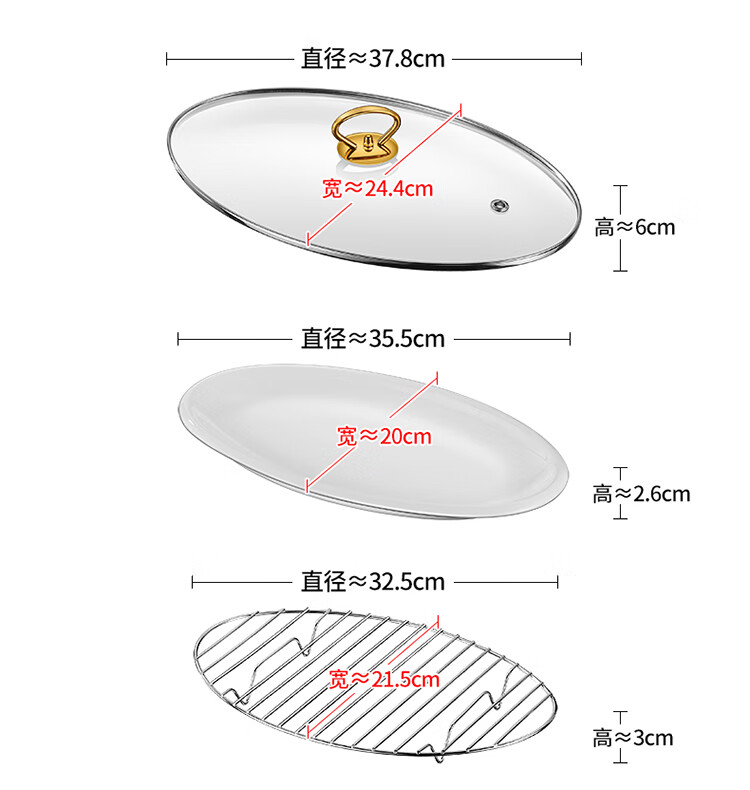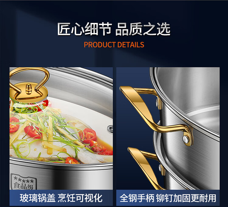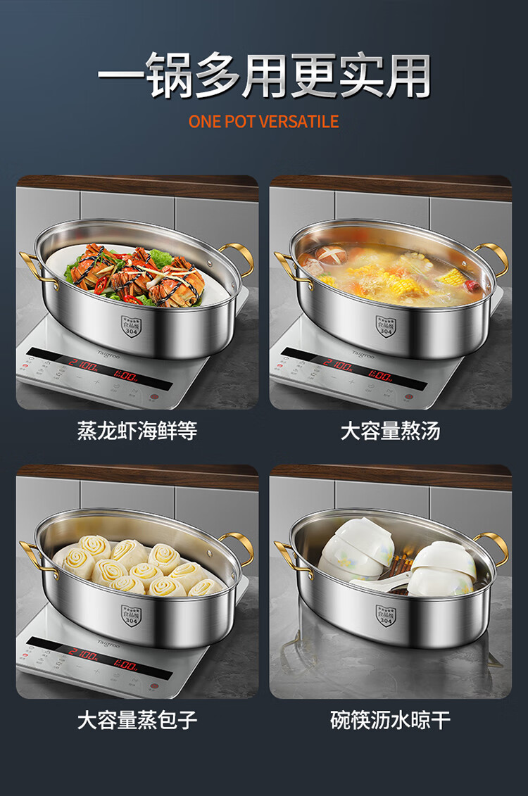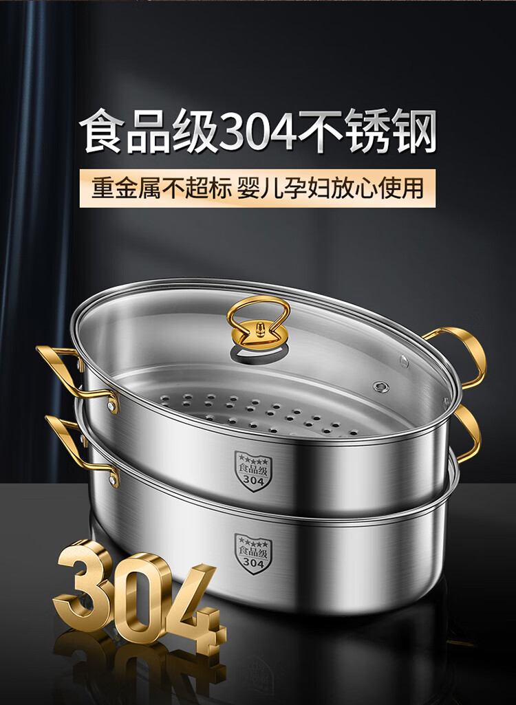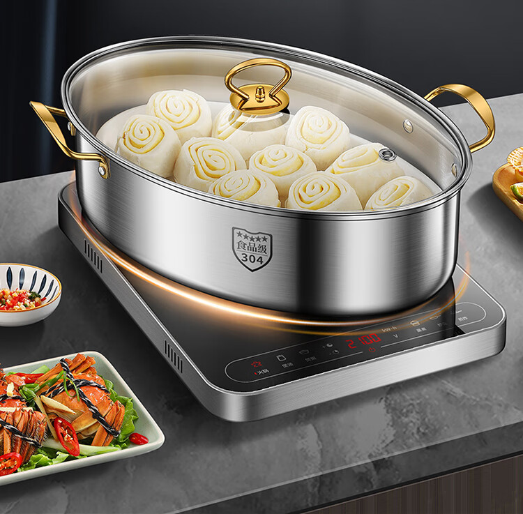 304 fish steamer household artifact stainless steel large capacity large steamer steamer induction cooker oval fish pot 410 food contact steel thickened single layer 1 layer 39cm