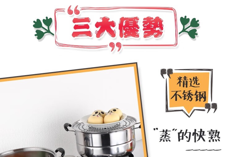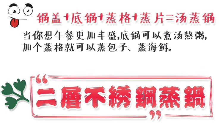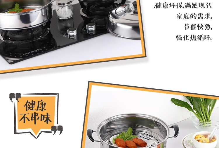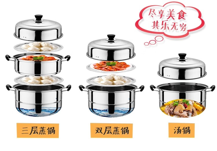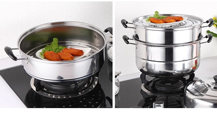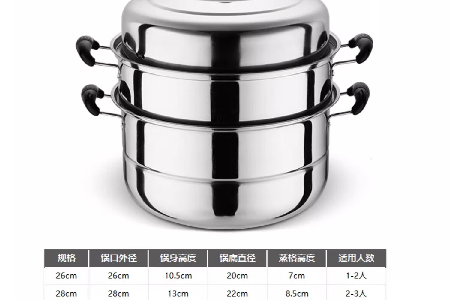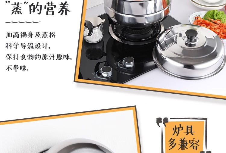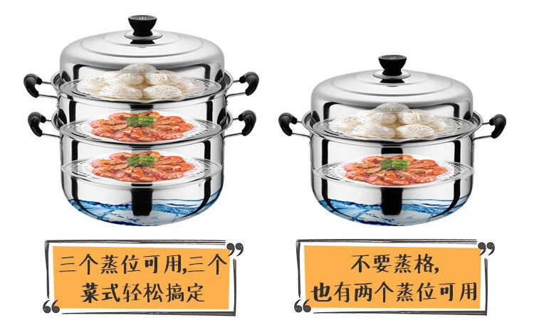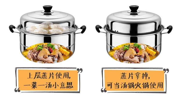 Thickened double-layer stainless steel steamer household two-layer steamed buns and fish steamer extra large commercial soup pot large capacity steamer 2 layers 34cm