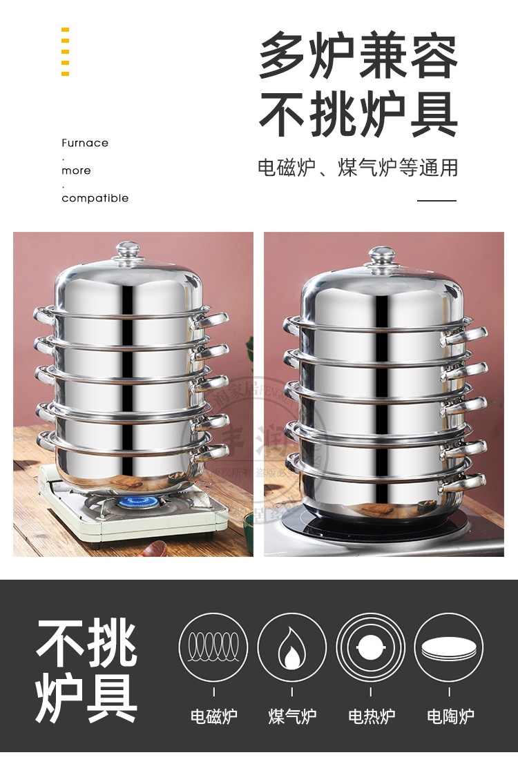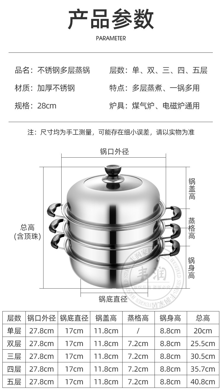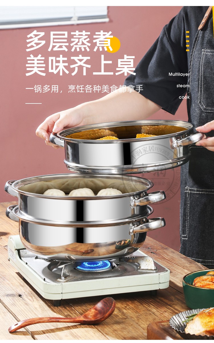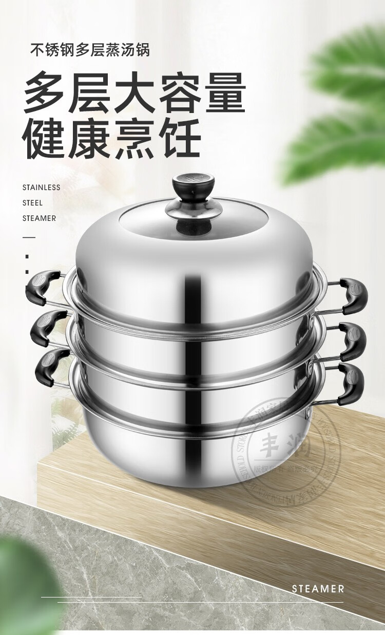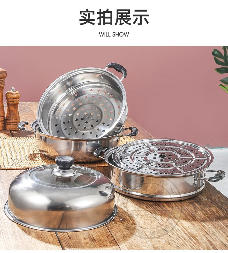 28cm stainless steel steamer, thickened soup and steaming dual-purpose pot, single-layer steaming pot, hot pot, steamed buns and buns pot, induction cooker, gas stove, universal 28cm single-layer soup steamer (electric fungus)