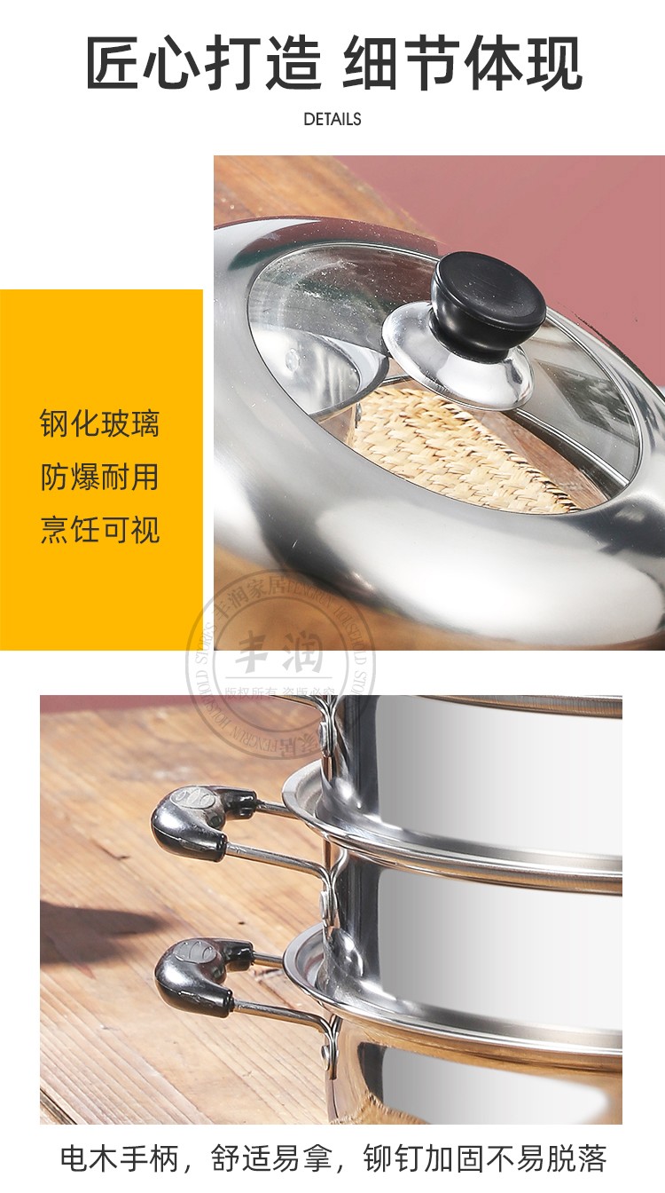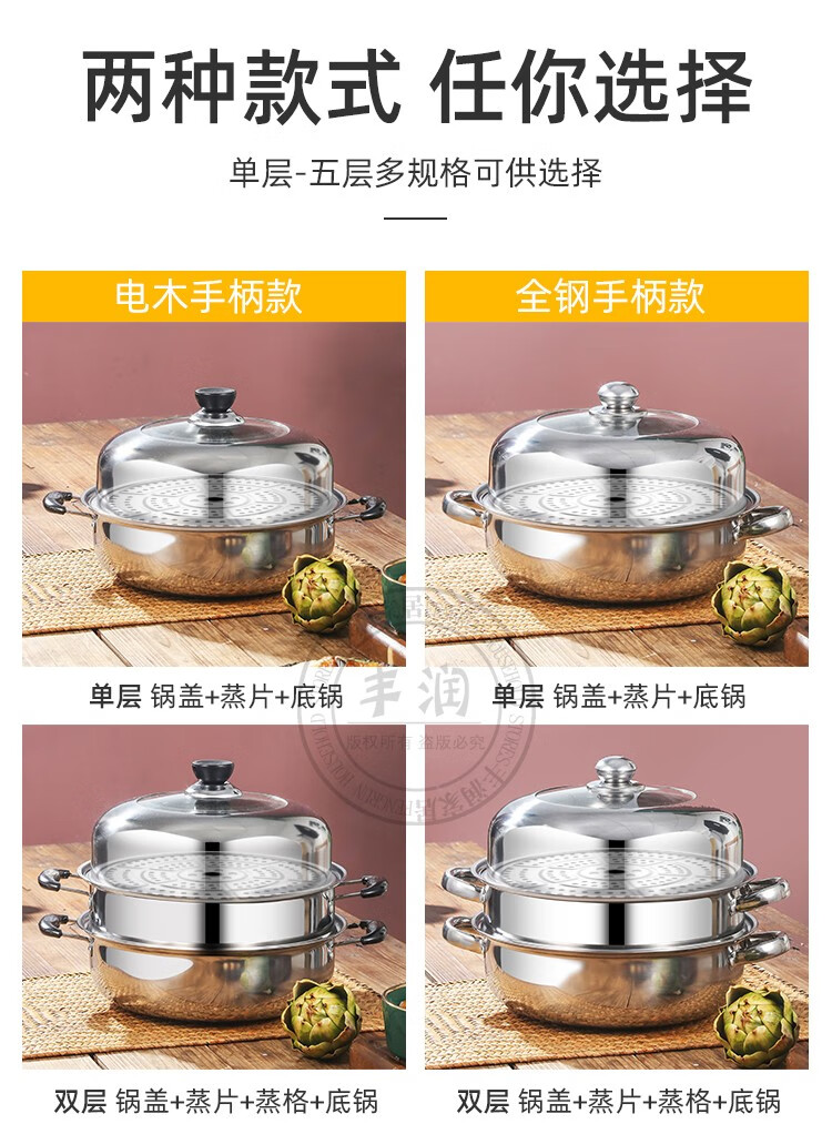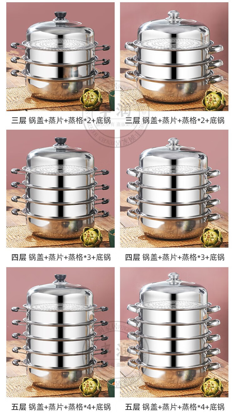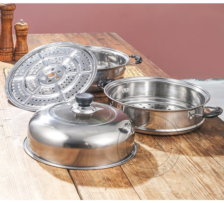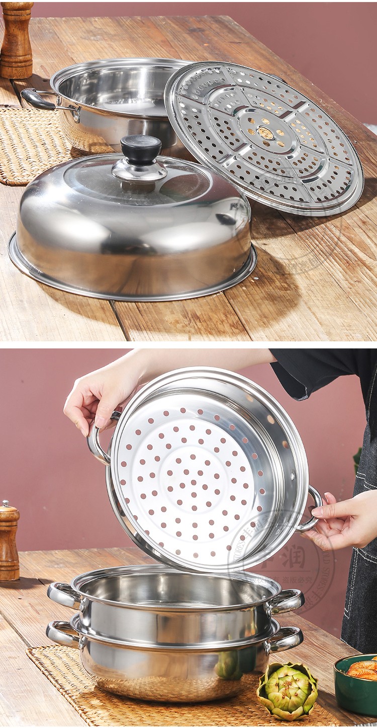 28cm stainless steel steamer, thickened soup and steaming dual-purpose pot, single-layer steaming pot, hot pot, steamed buns and buns pot, induction cooker, gas stove, universal 28cm single-layer soup steamer (electric fungus)