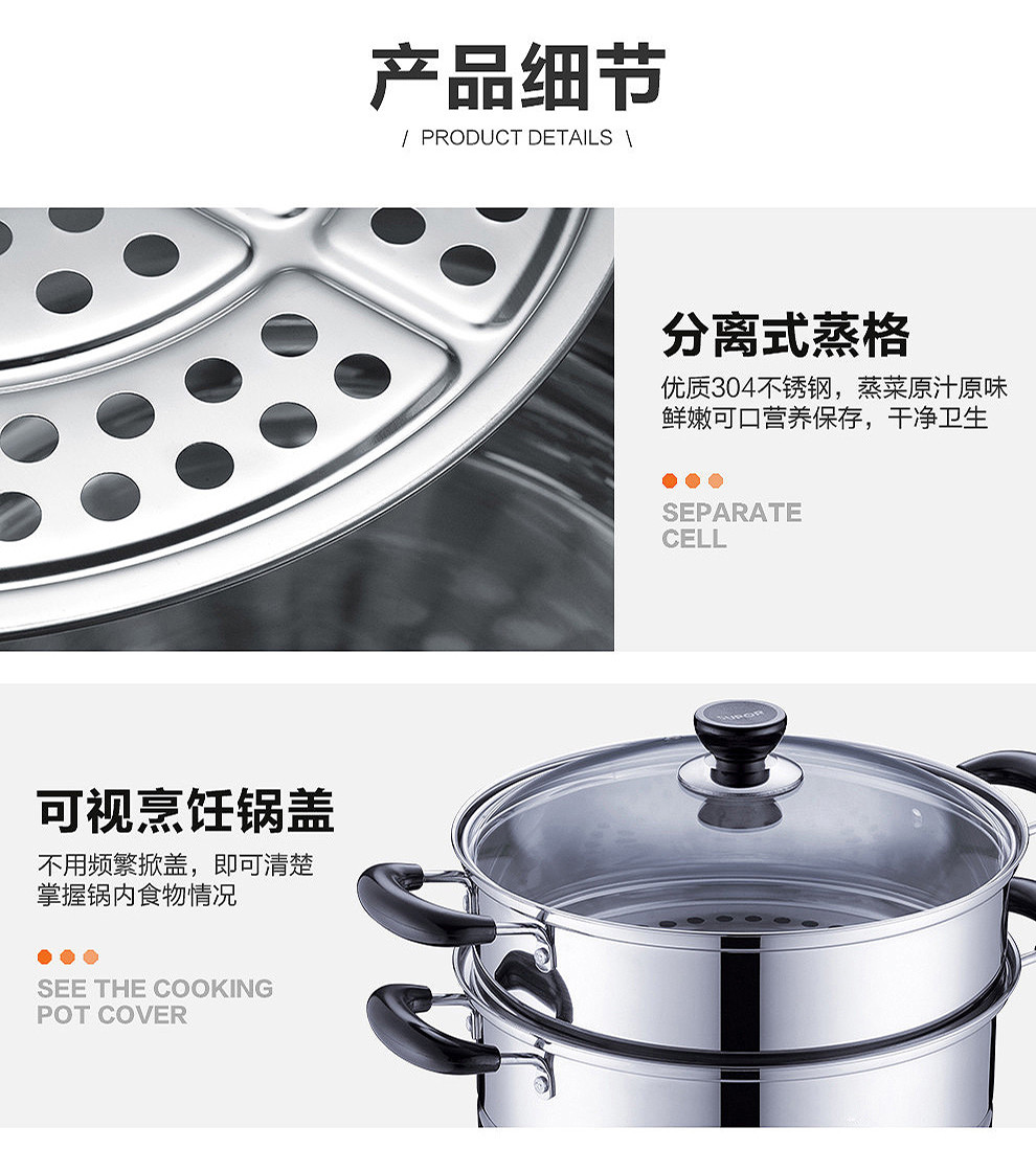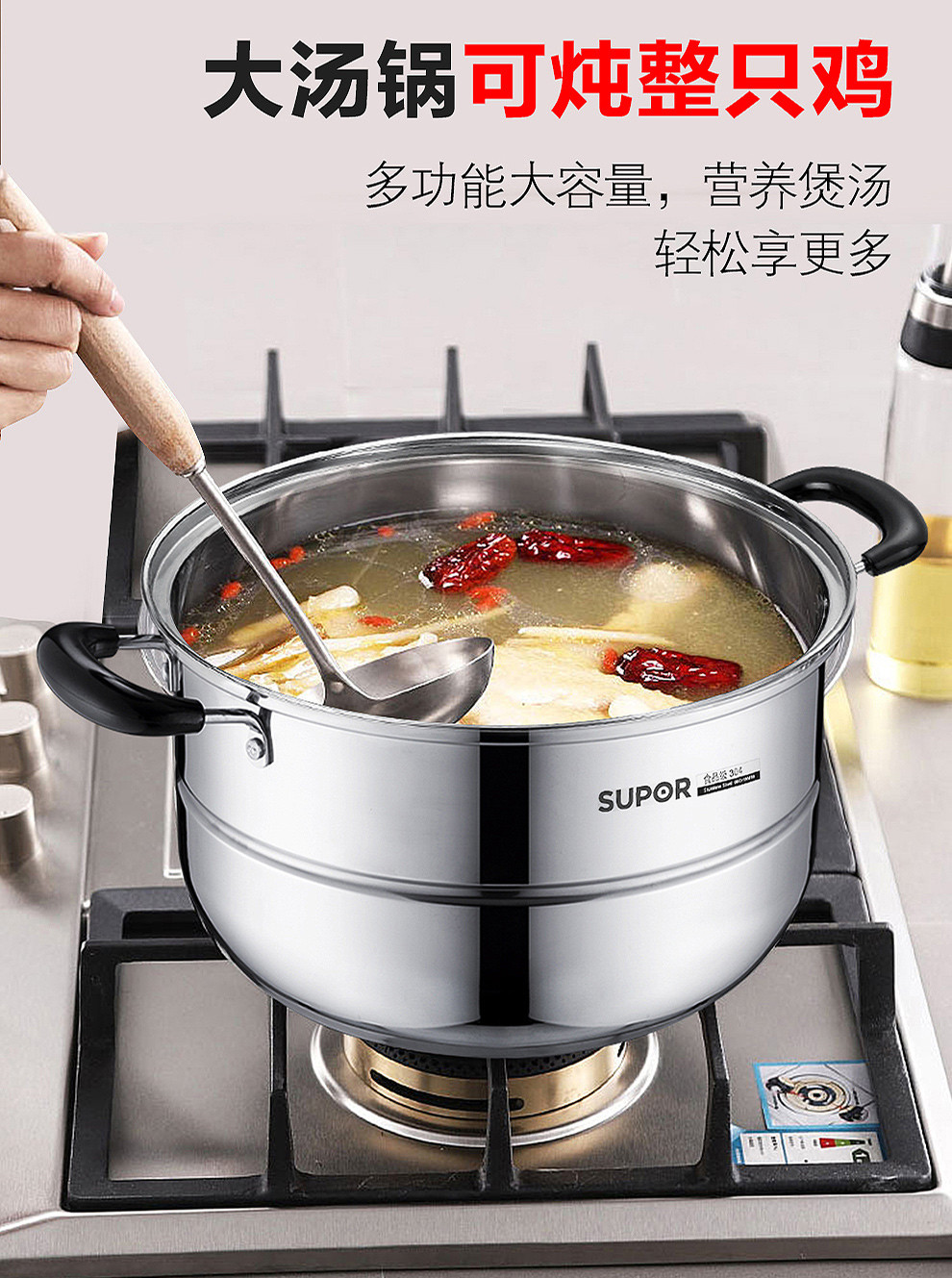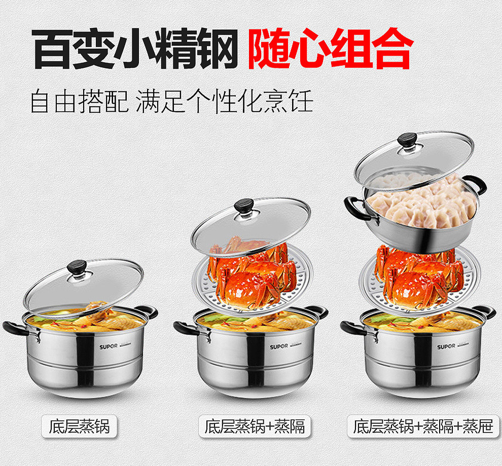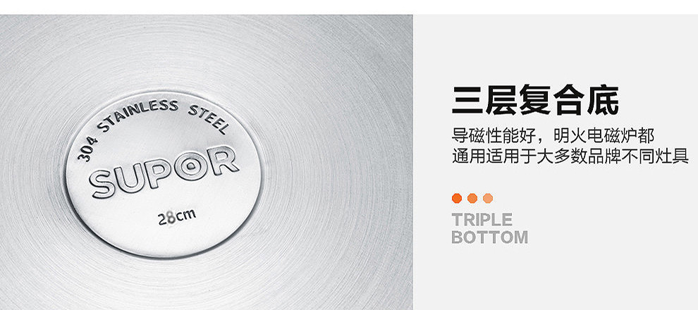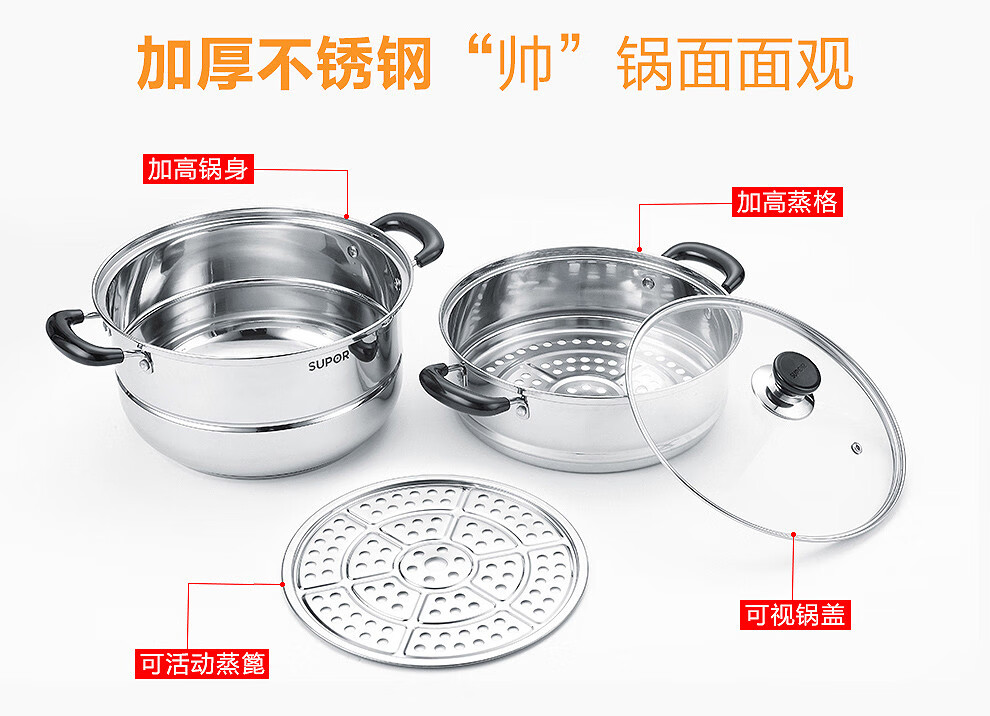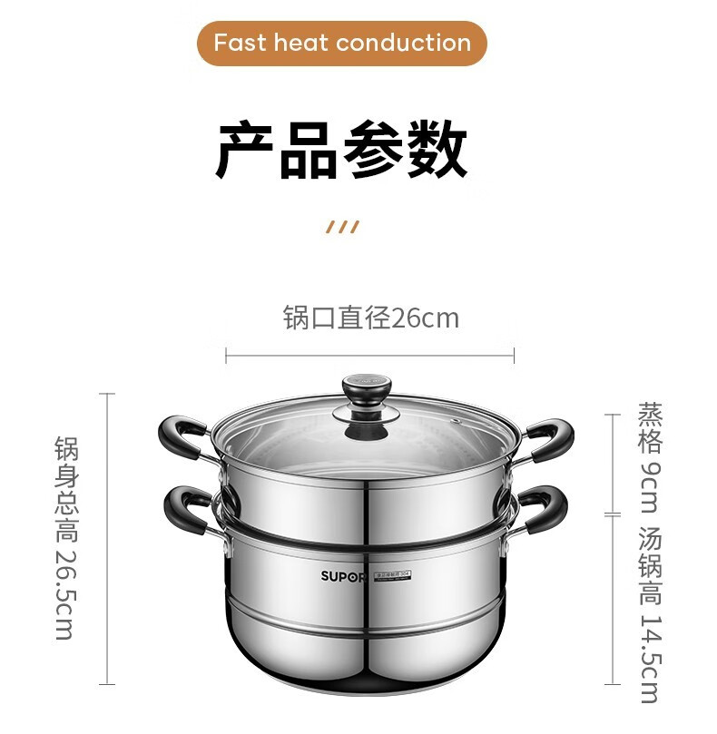 SUPOR steamer, two-layer, 28cm double-bottom thickened 304 stainless steel steamer, suitable for both induction and gas stoves
