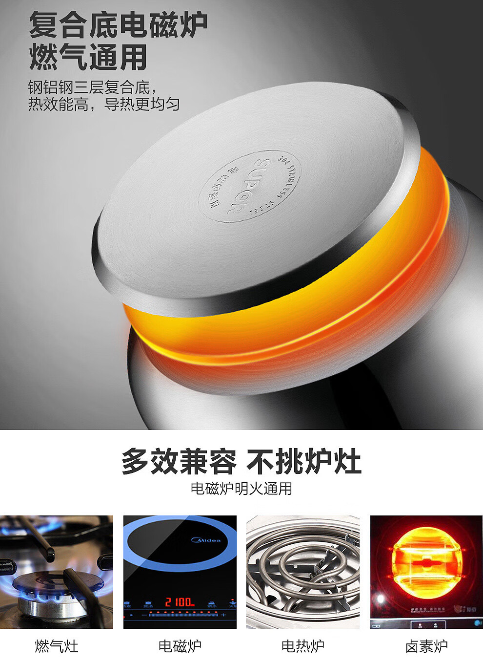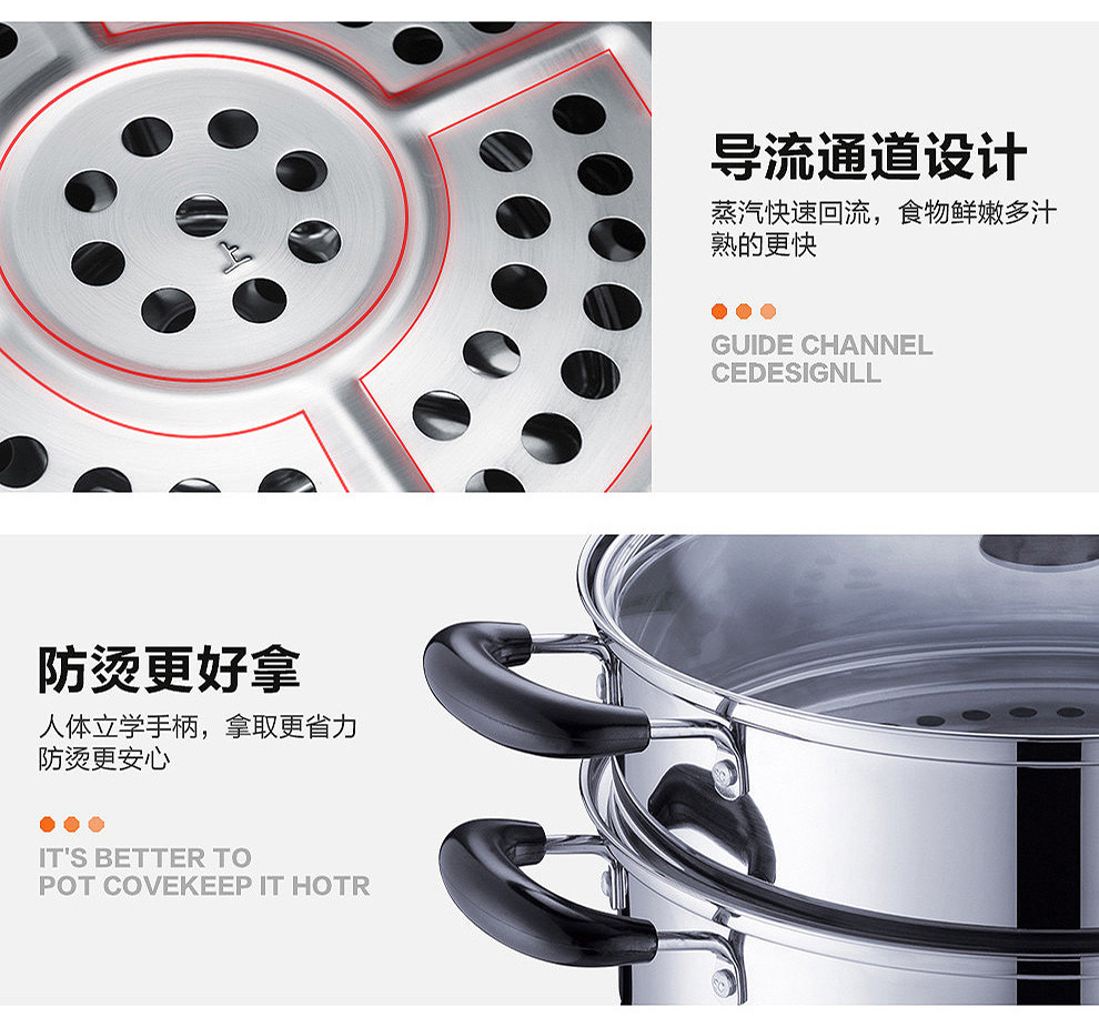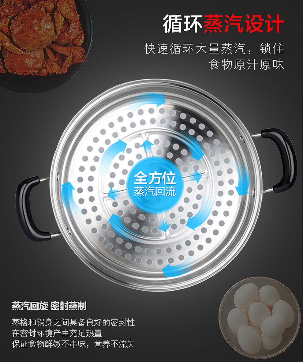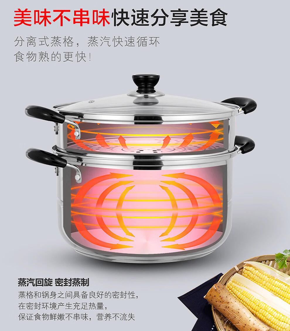 SUPOR steamer, two-layer, 28cm double-bottom thickened 304 stainless steel steamer, suitable for both induction and gas stoves