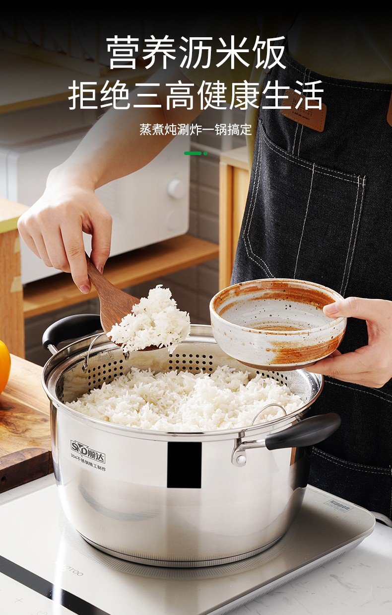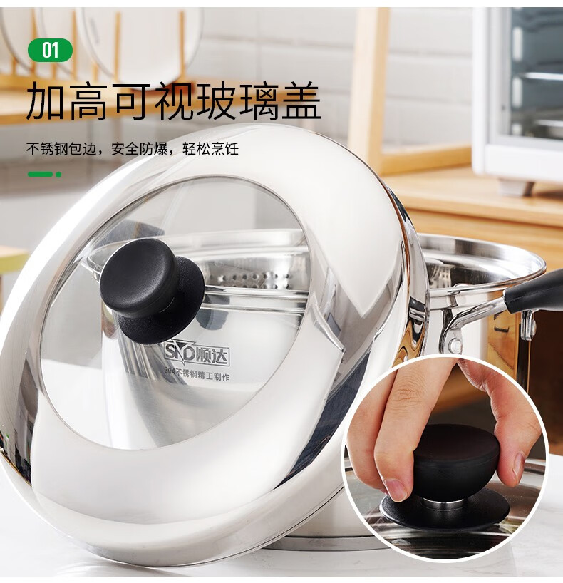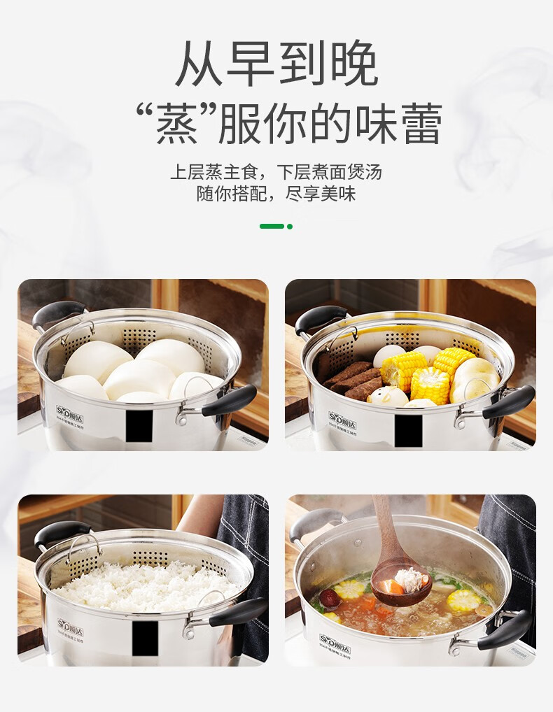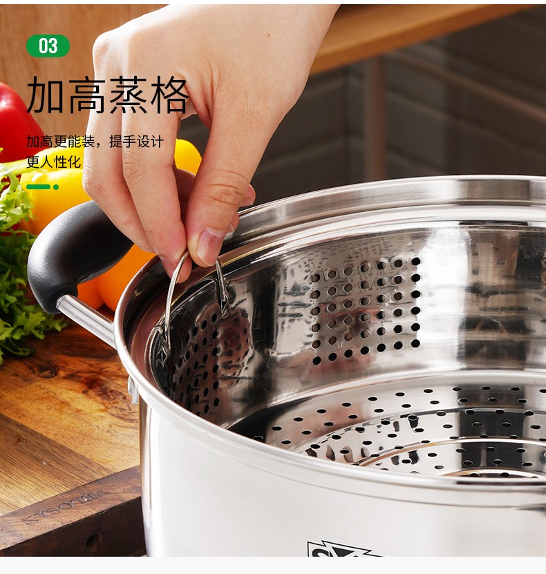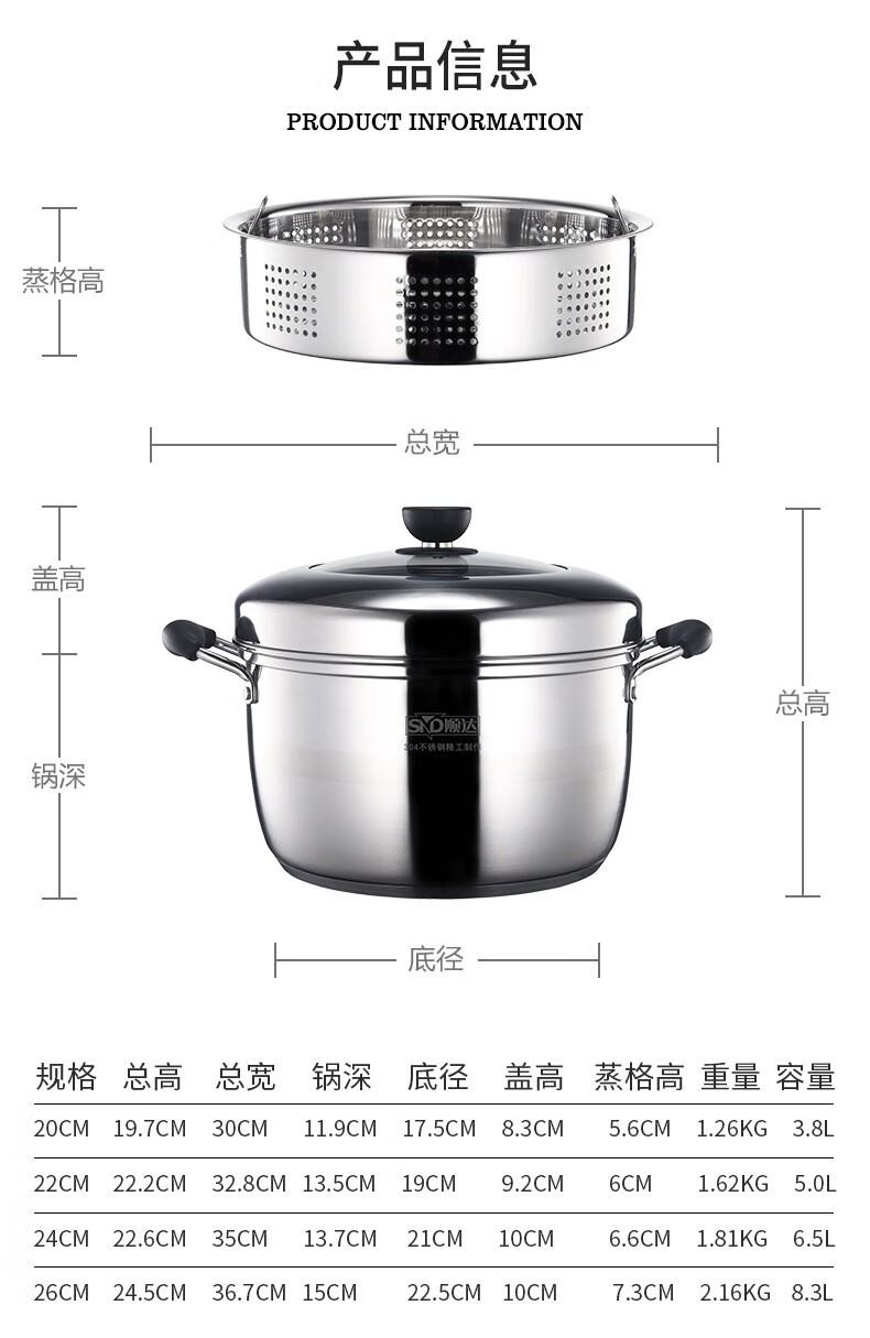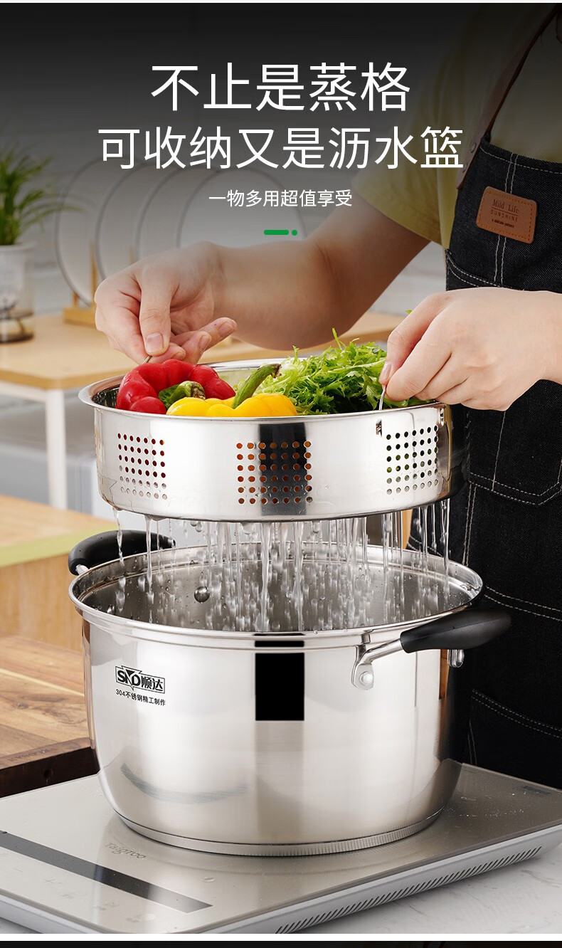 Shunda (SND) Japanese steamer 304 stainless steel thickened double bottom single layer multi-purpose soup pot open flame induction cooker universal 26cm