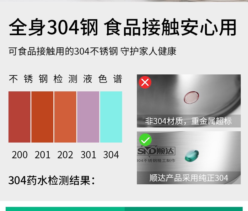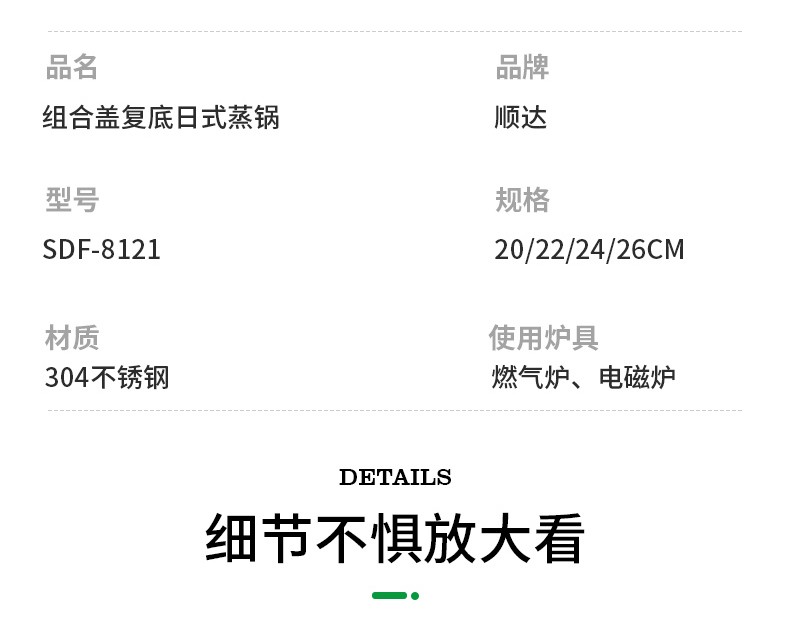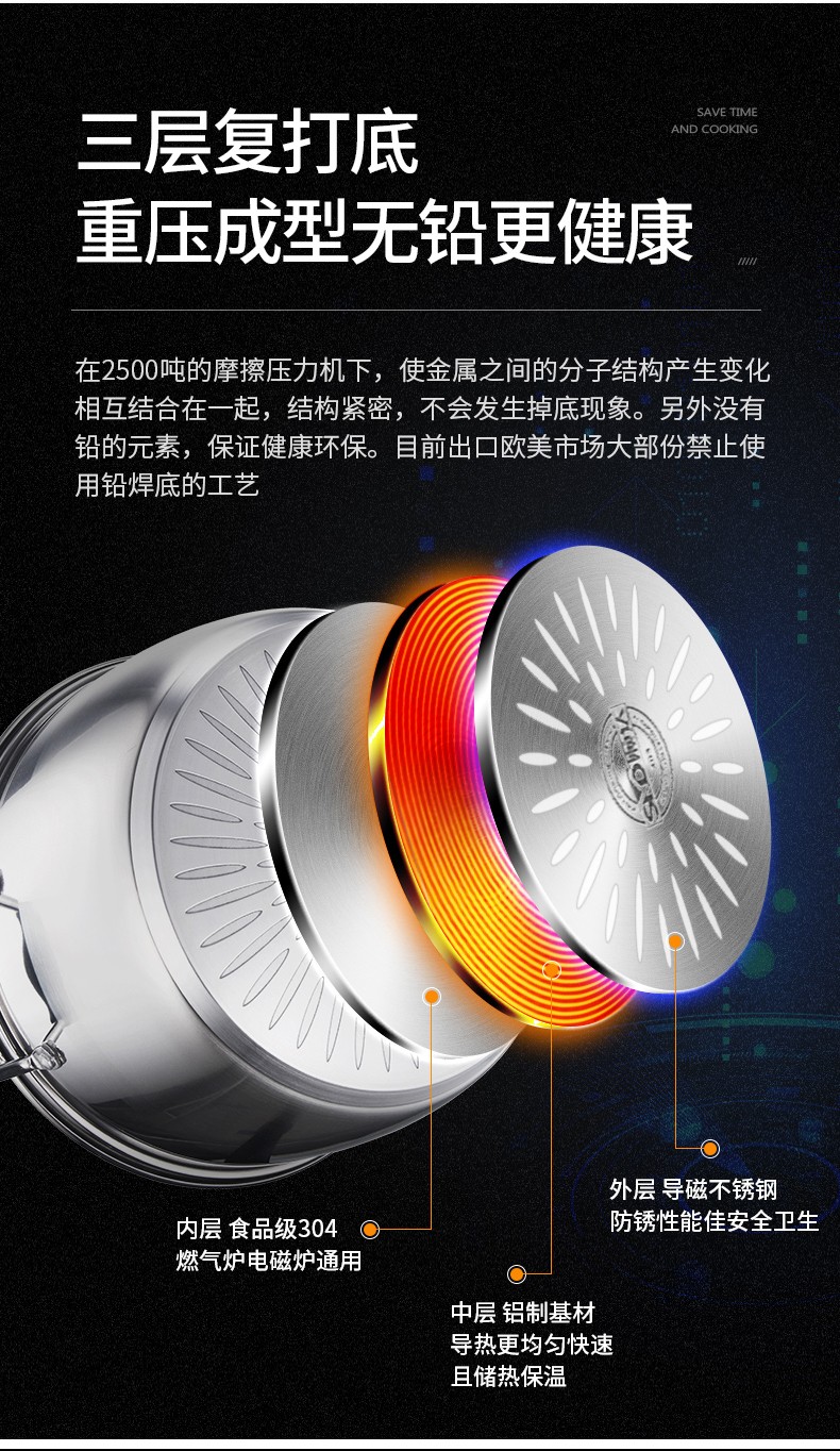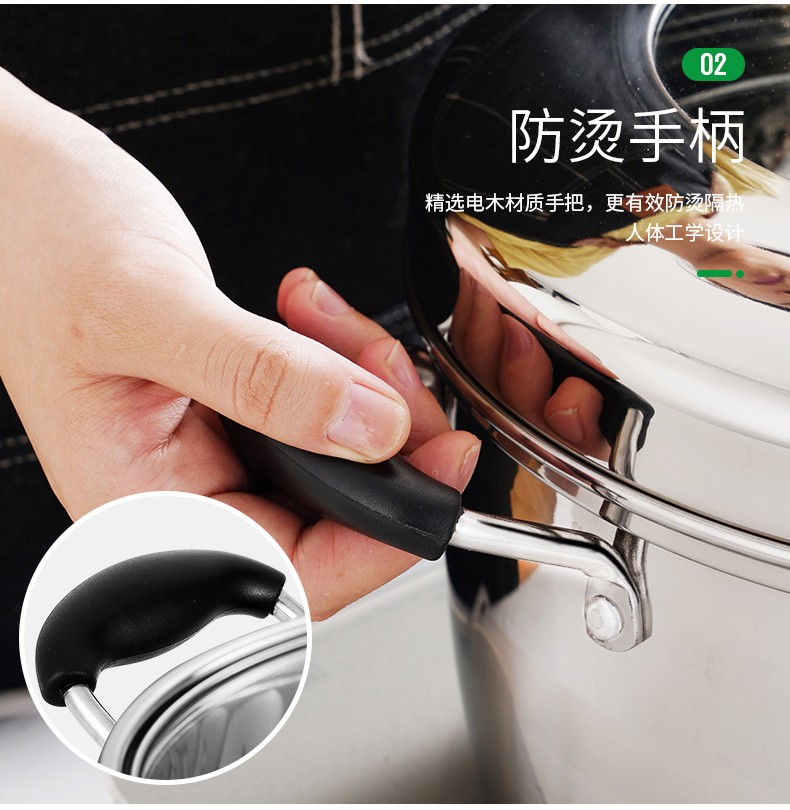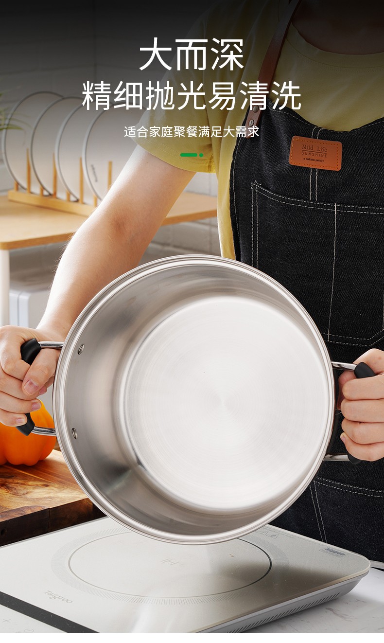 Shunda (SND) Japanese steamer 304 stainless steel thickened double bottom single layer multi-purpose soup pot open flame induction cooker universal 26cm