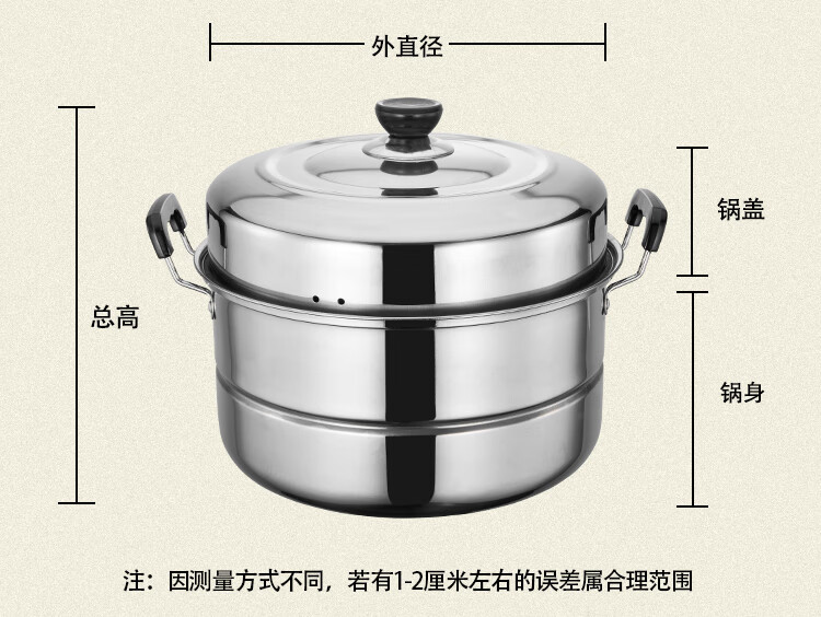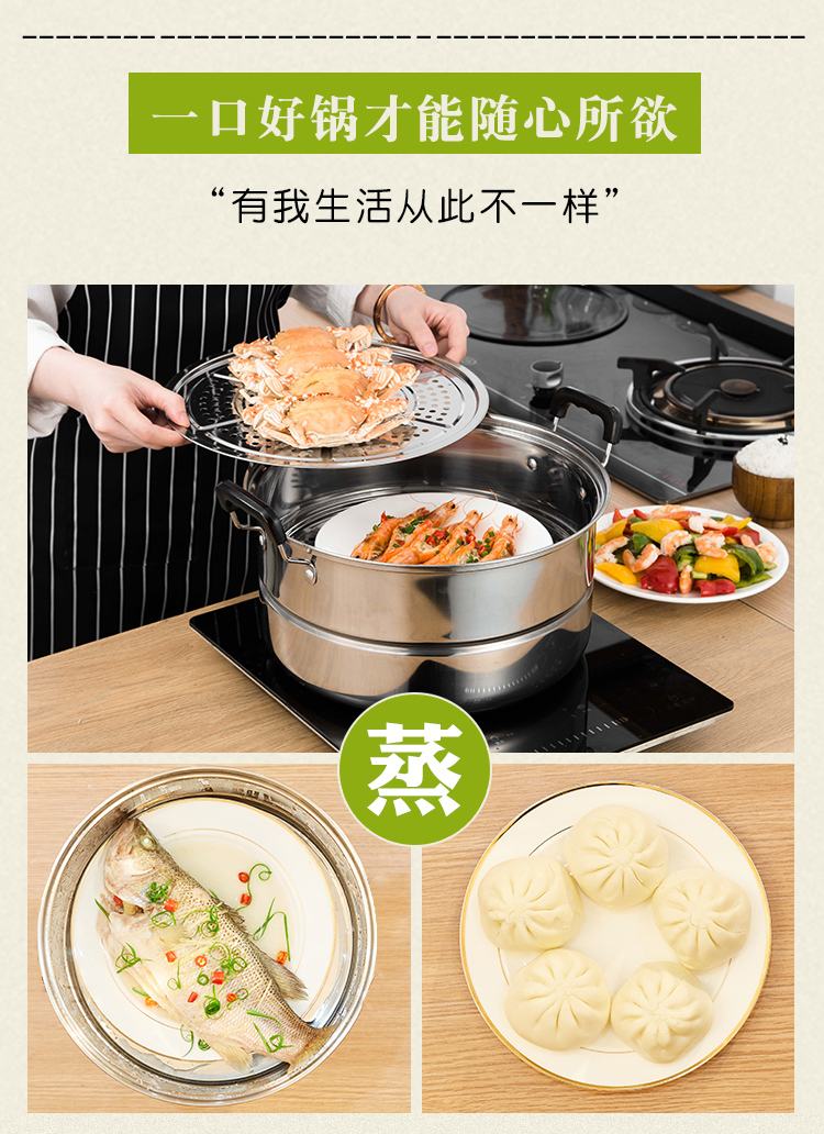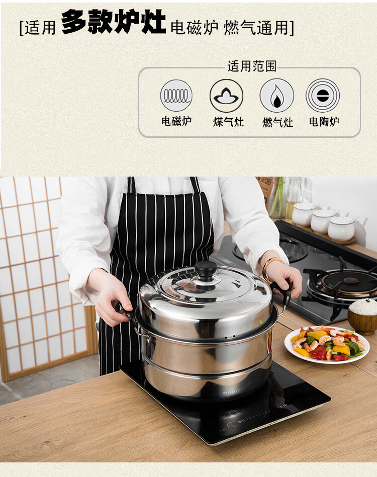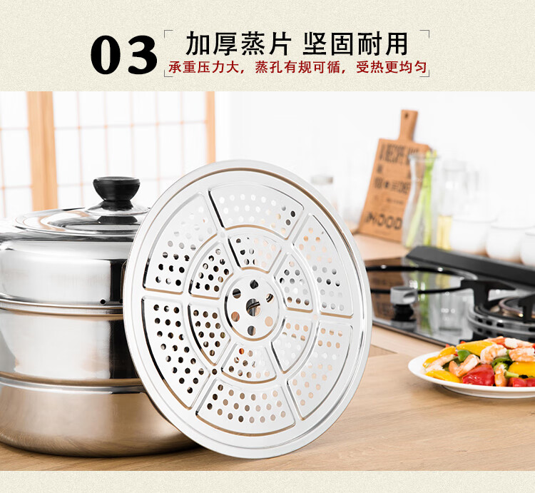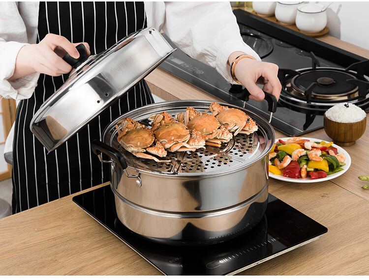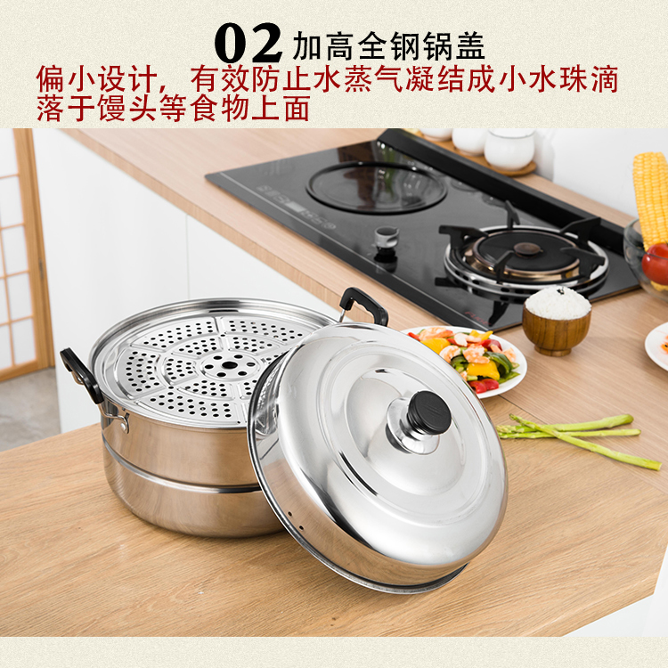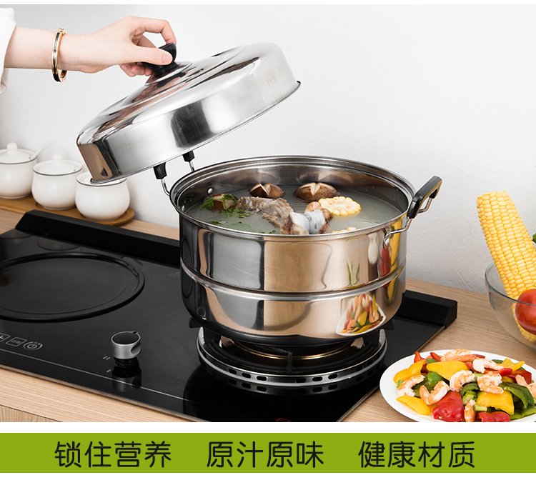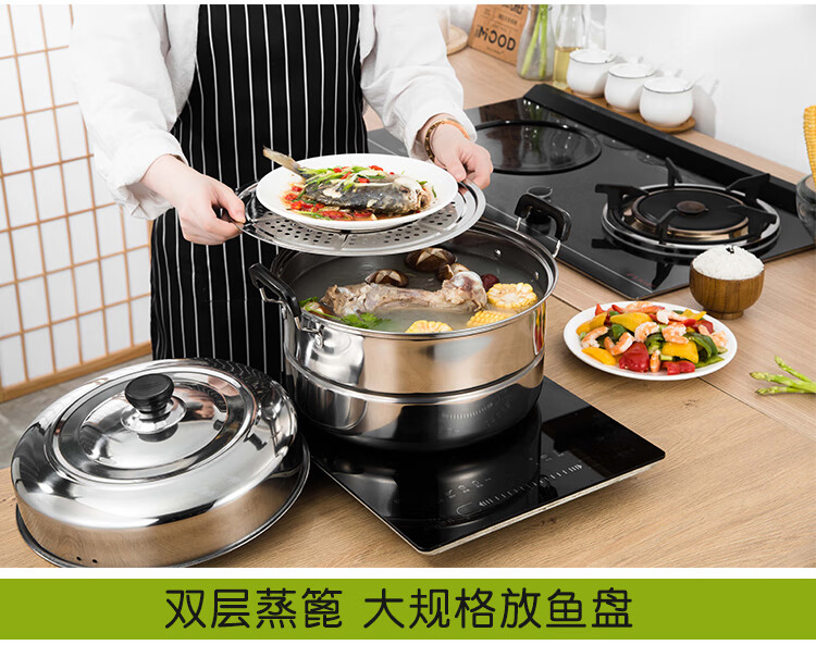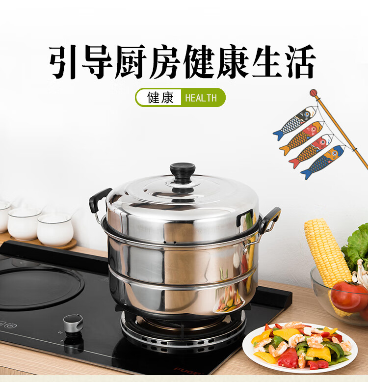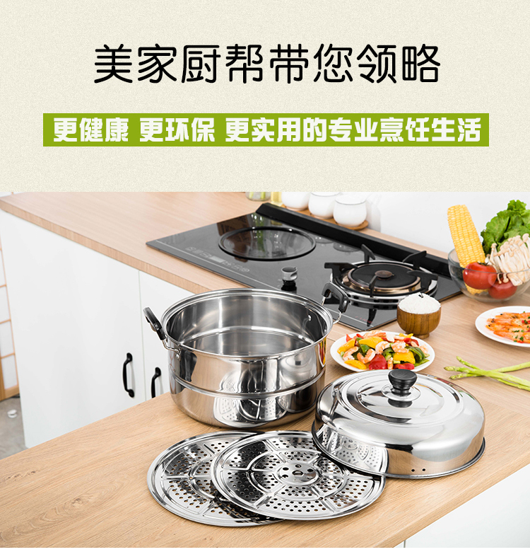 Meijia Kitchen Aid stainless steel 28cm thickened steamer 2-layer double-layer steamer drawer double grate household kitchen utensils steamed buns steamed fish gas induction cooker universal soup steamer cooking pot
