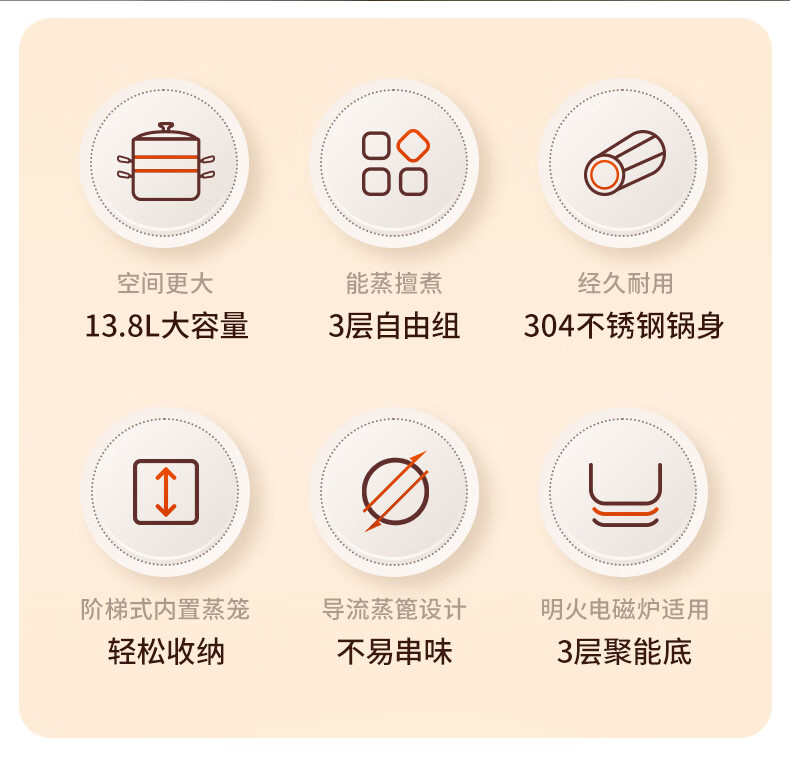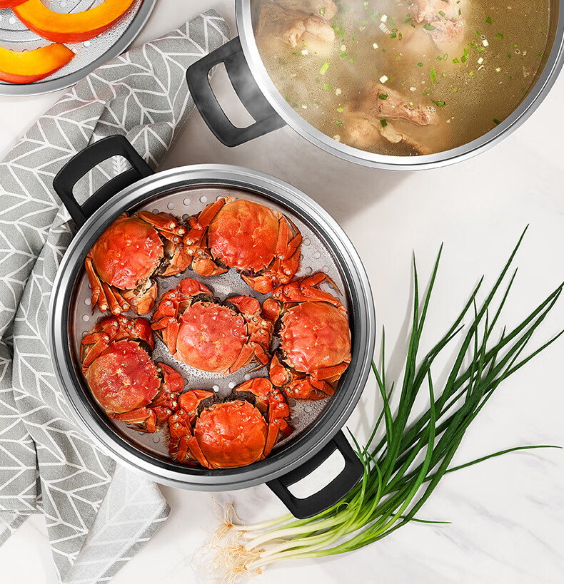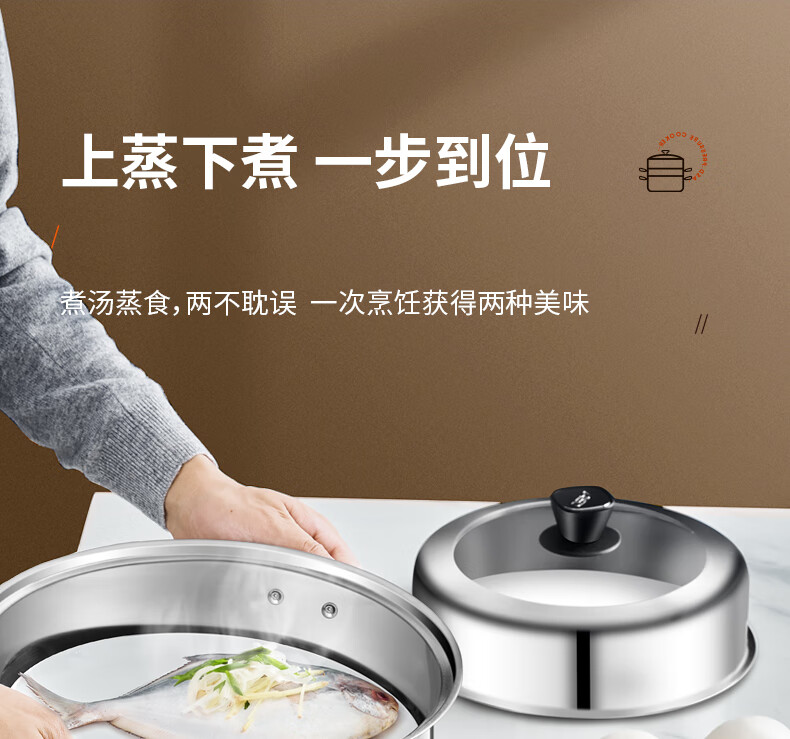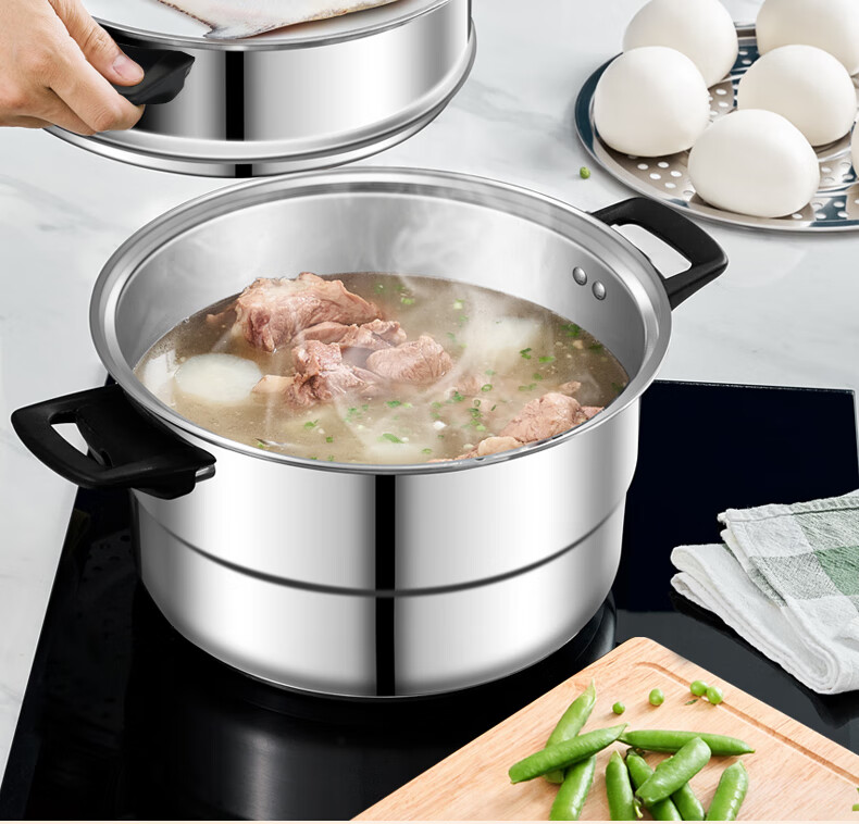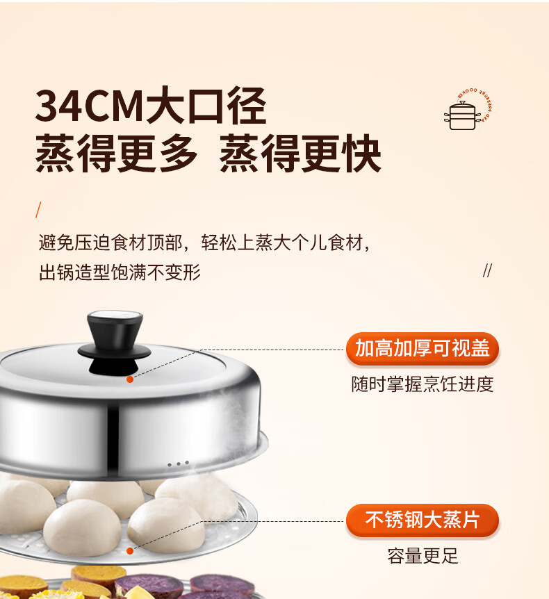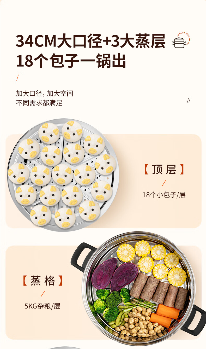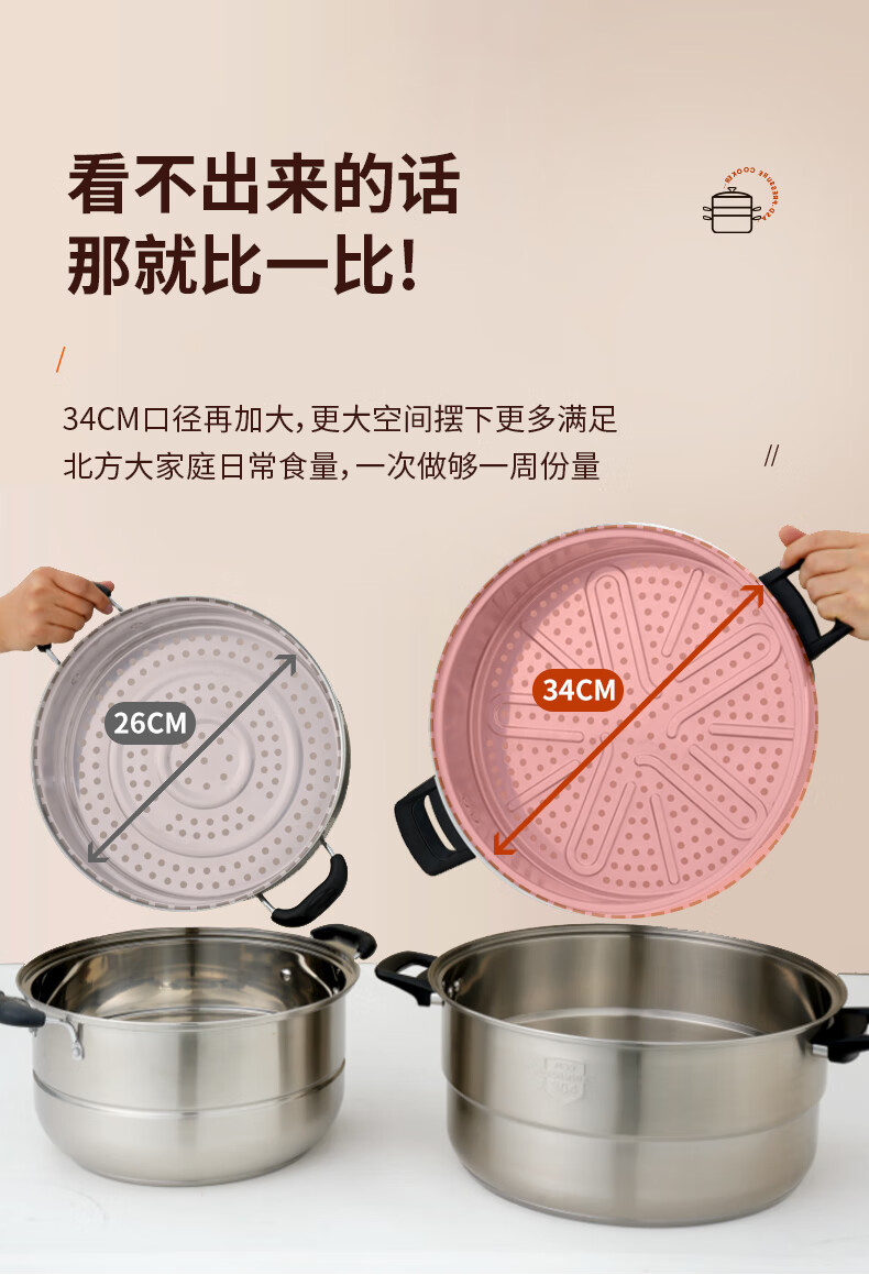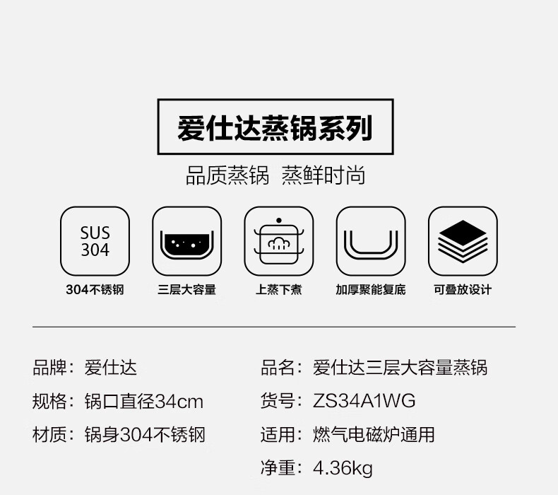 ASD steamer 304 stainless steel true three-layer heightened steamer large capacity steamed bun pot double bottom open flame induction cooker universal large size large capacity steamer 3 layers 34cm