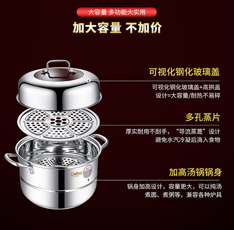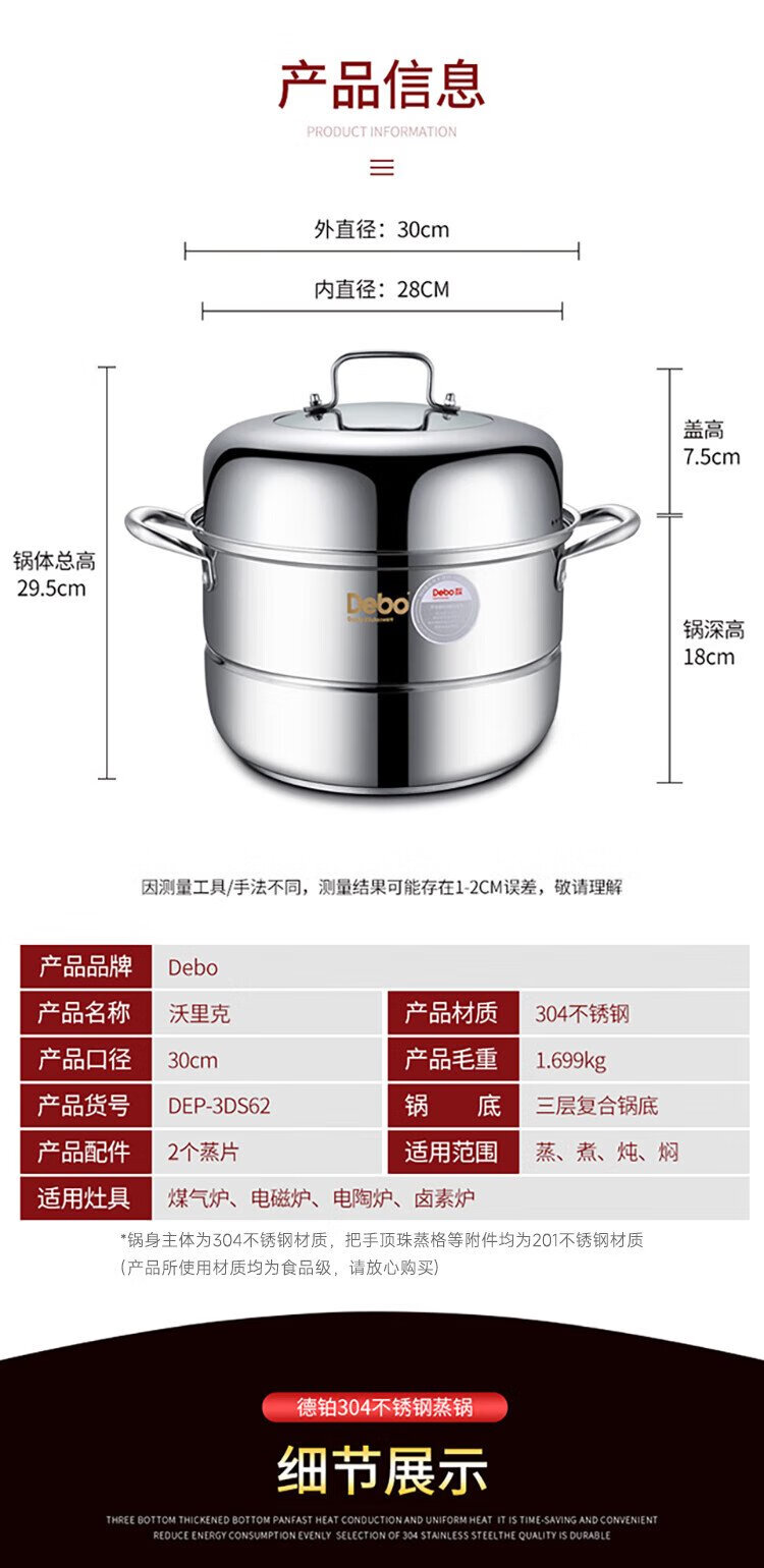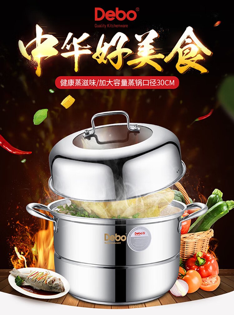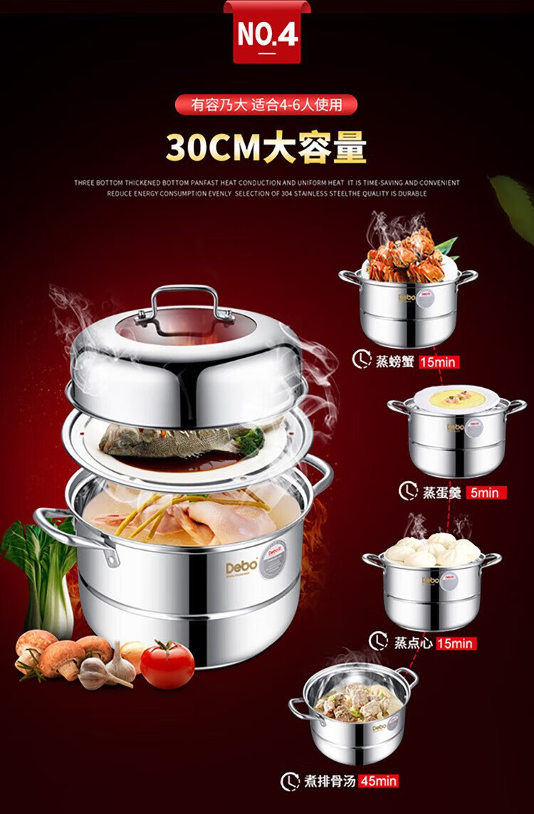 Debo Debo soup steamer 304 stainless steel pot two-layer steamer induction cooker universal Warwick 30cm