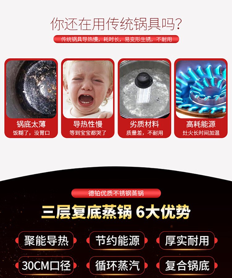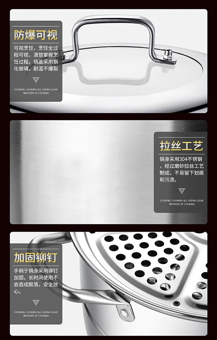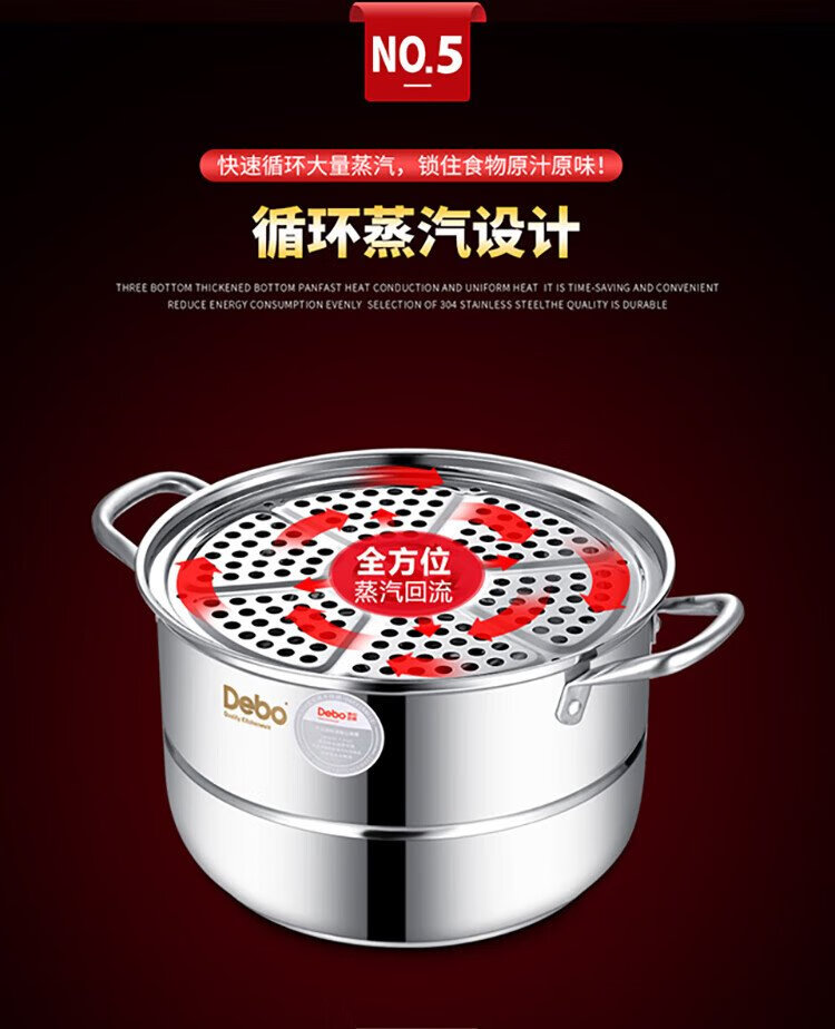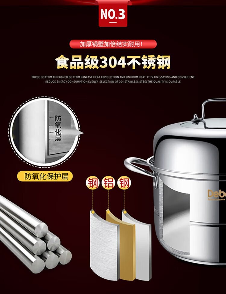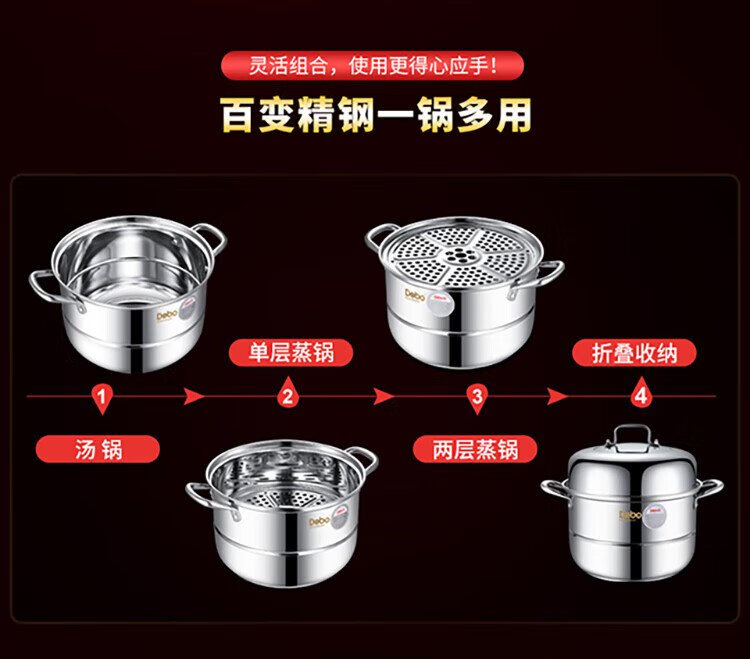 Debo Debo soup steamer 304 stainless steel pot two-layer steamer induction cooker universal Warwick 30cm