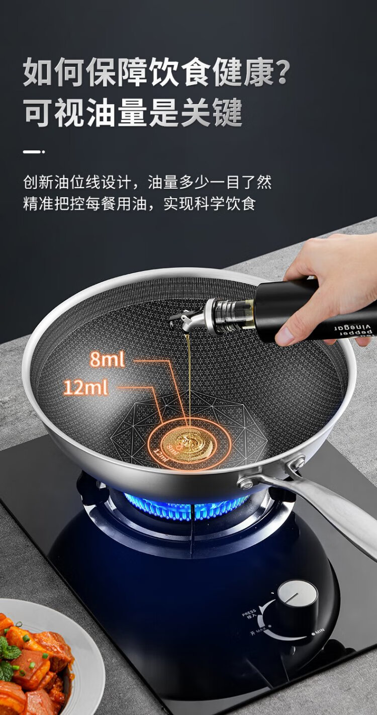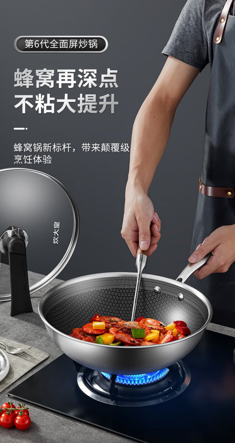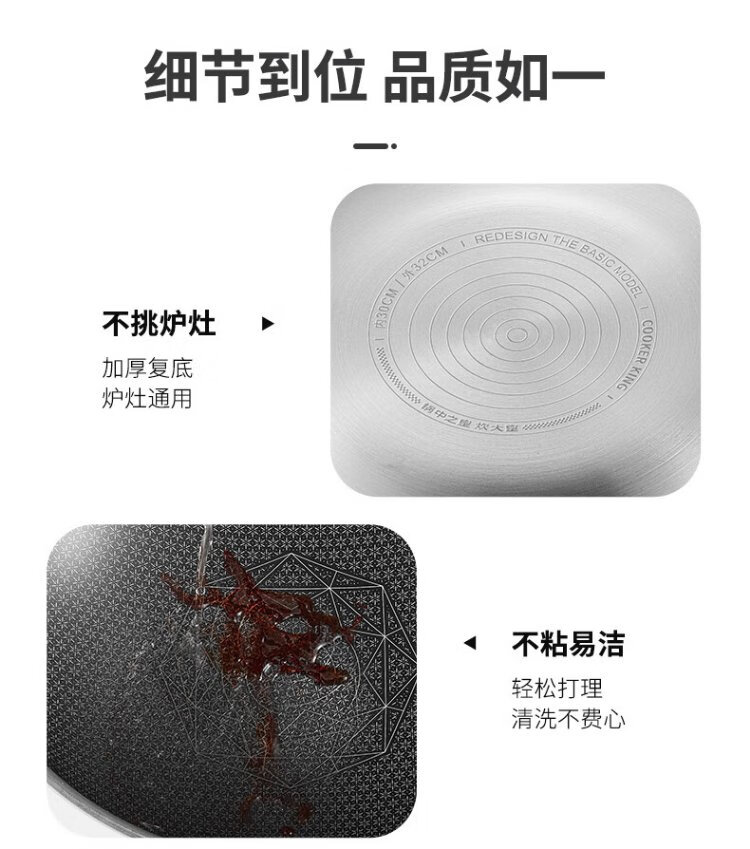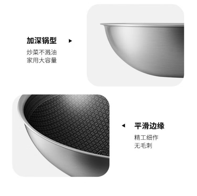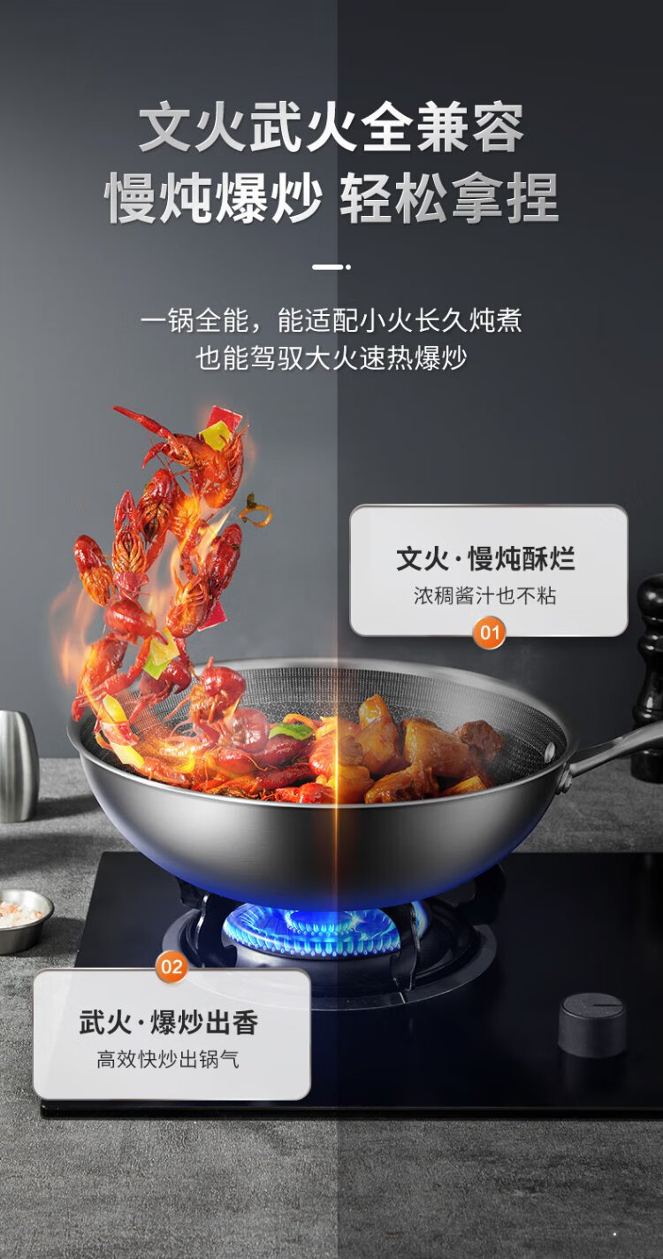 Chuidahuang wok 304 stainless steel wok pan frying pan flat bottom non-stick wok 32cm can be seen immediately without picking up the stove