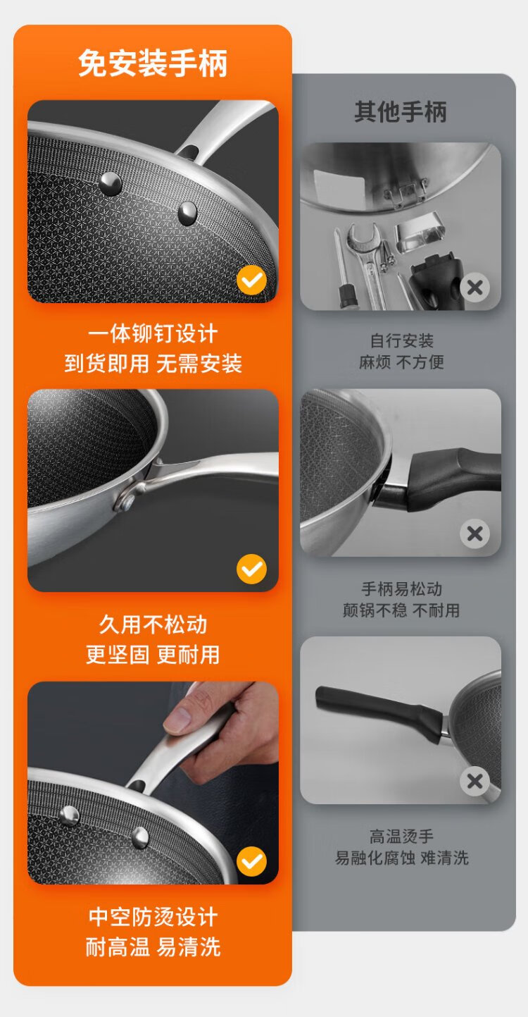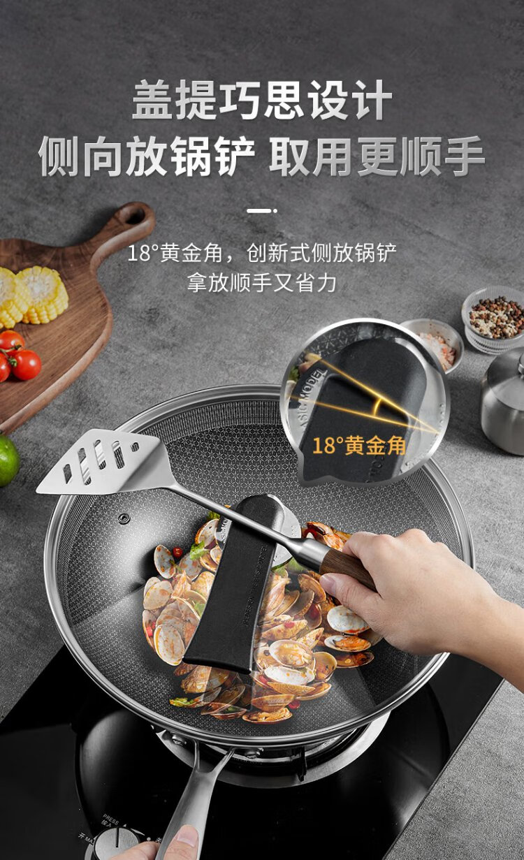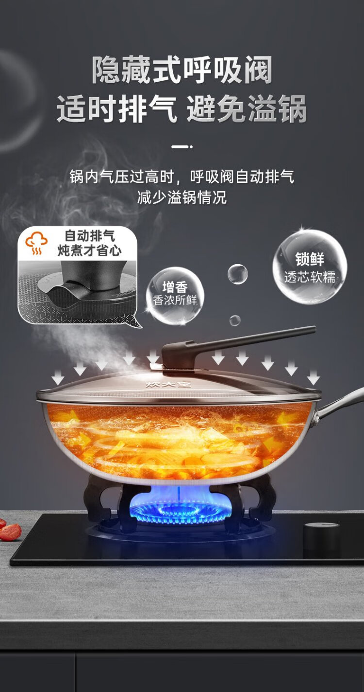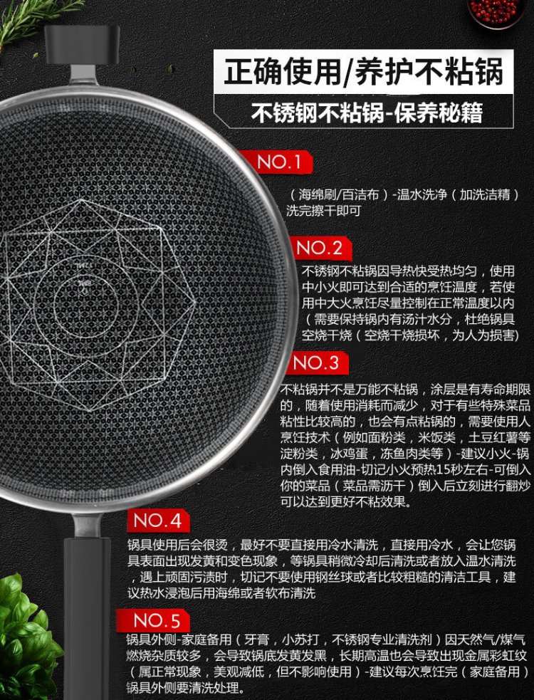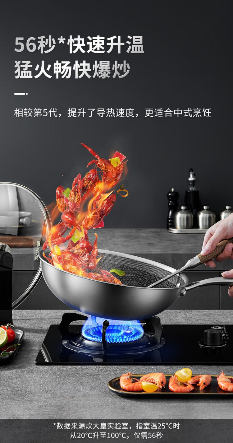 Chuidahuang wok 304 stainless steel wok pan frying pan flat bottom non-stick wok 32cm can be seen immediately without picking up the stove