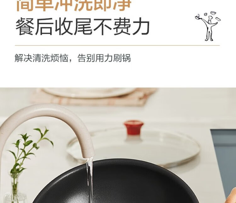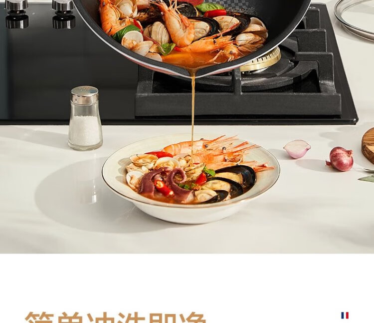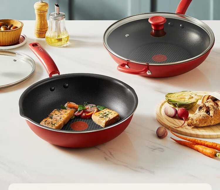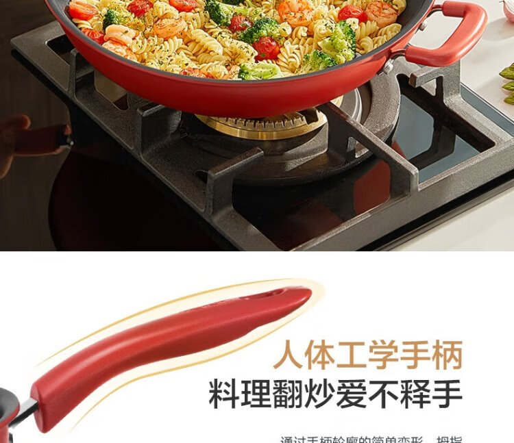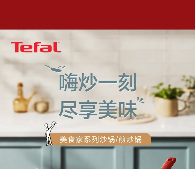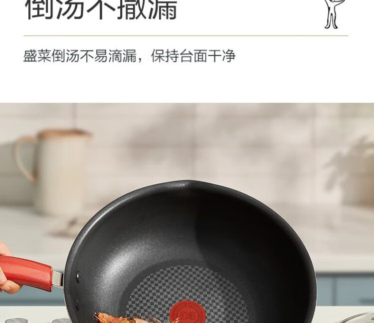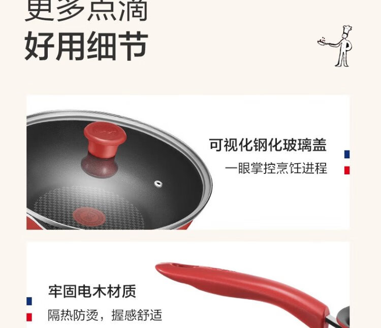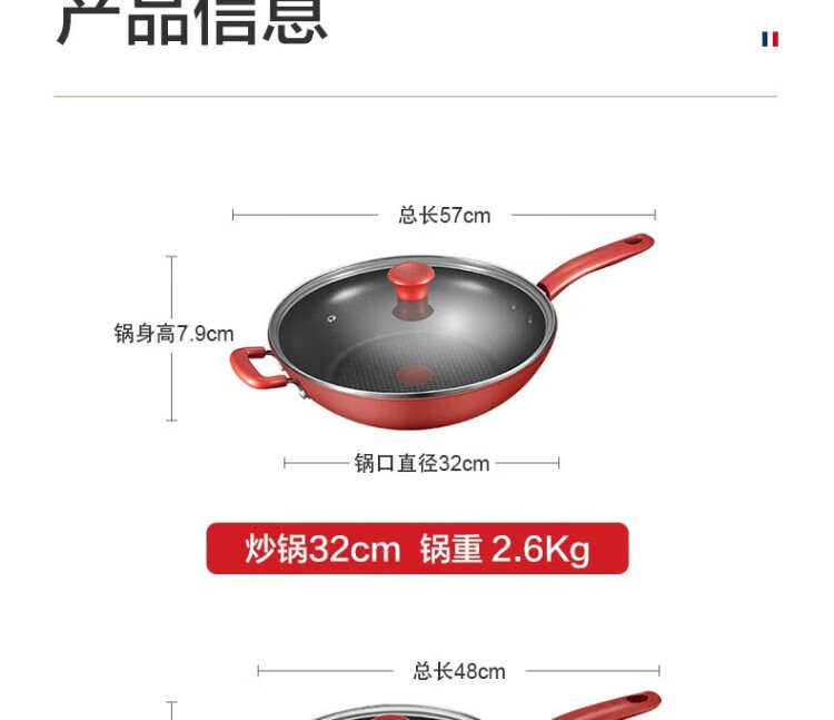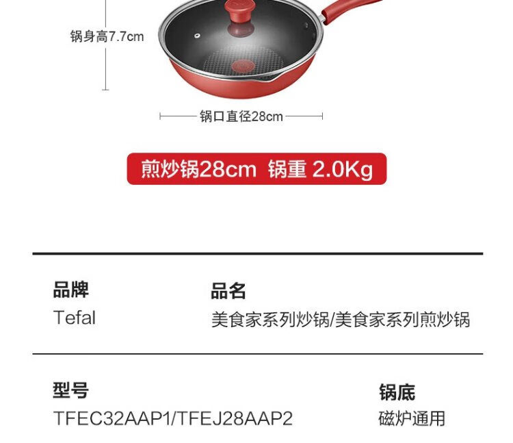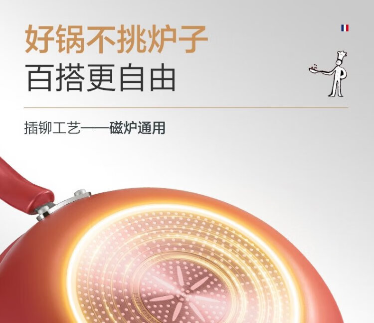 Tefal wok household non-stick pan flat bottom wok 28cm wok induction cooker gas stove universal titanium
