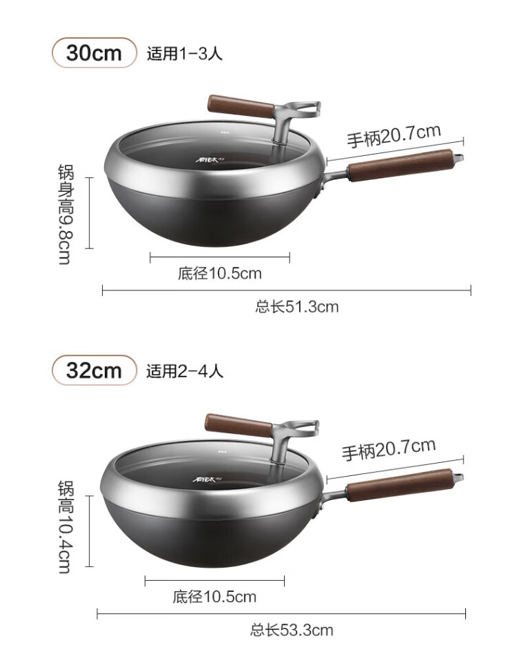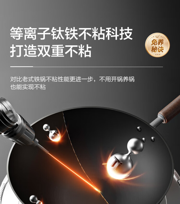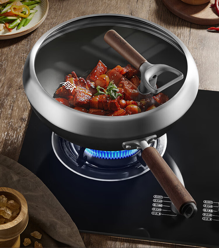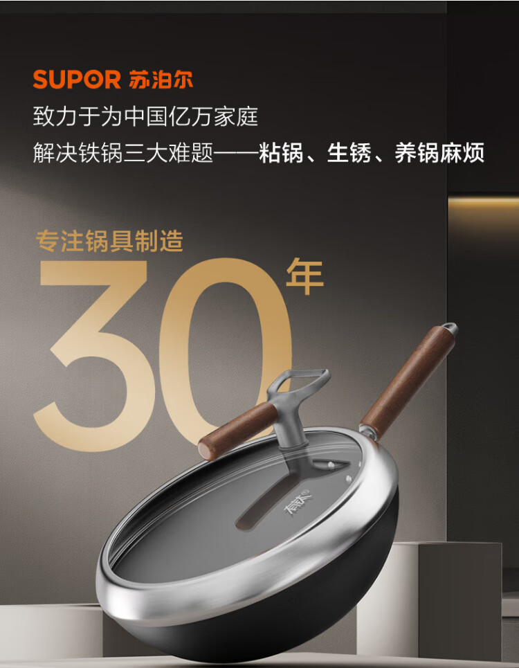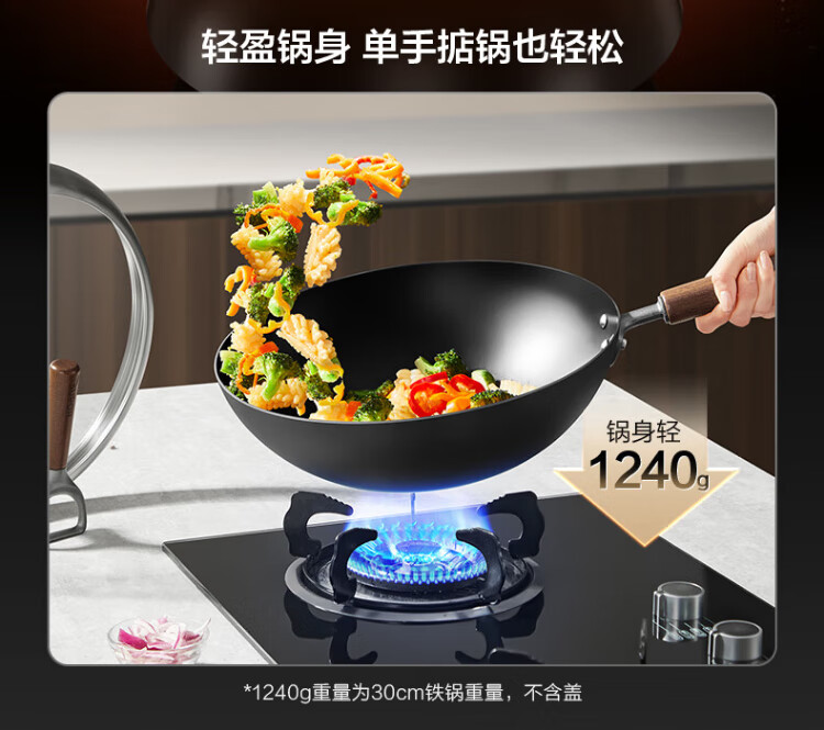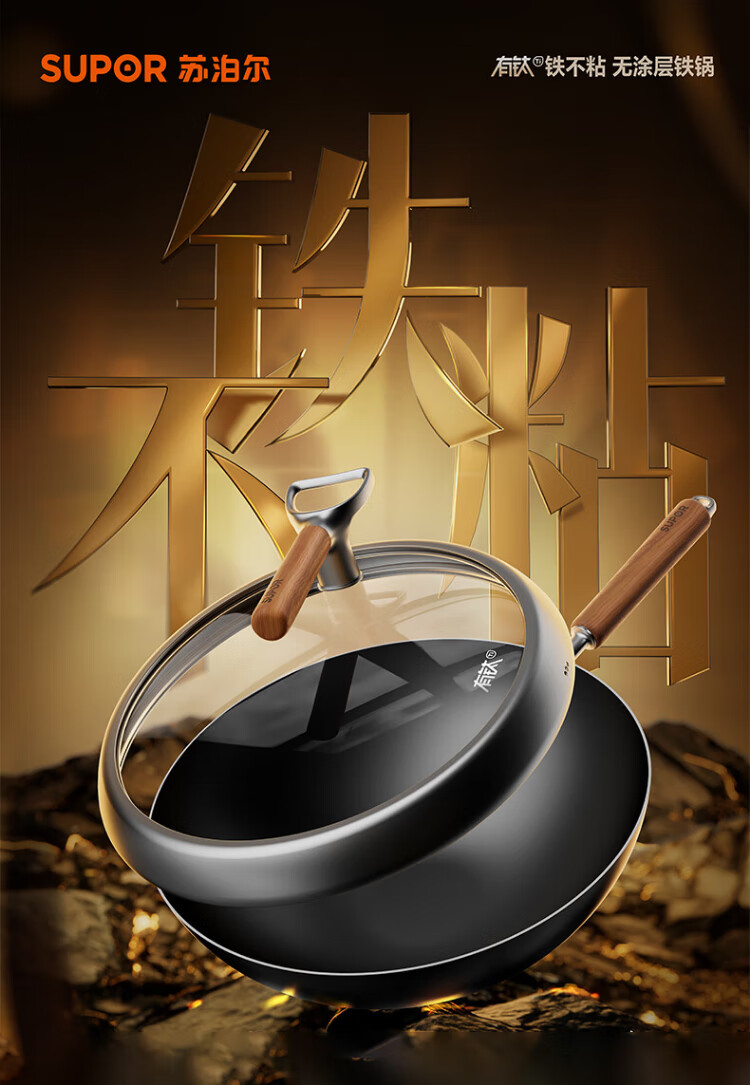 Supor non-stick iron pan with titanium iron non-stick uncoated wok with less oil fume 32cm gas induction cooker universal CC32YT1