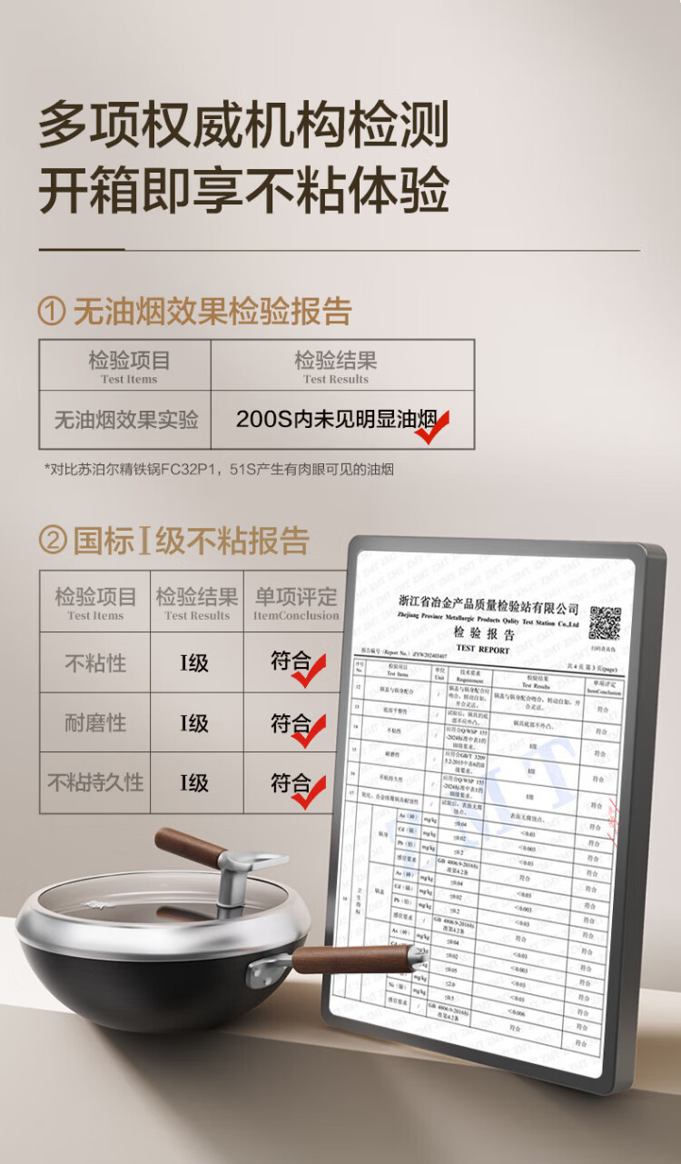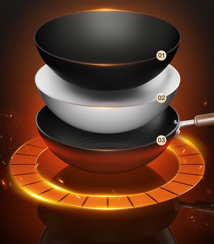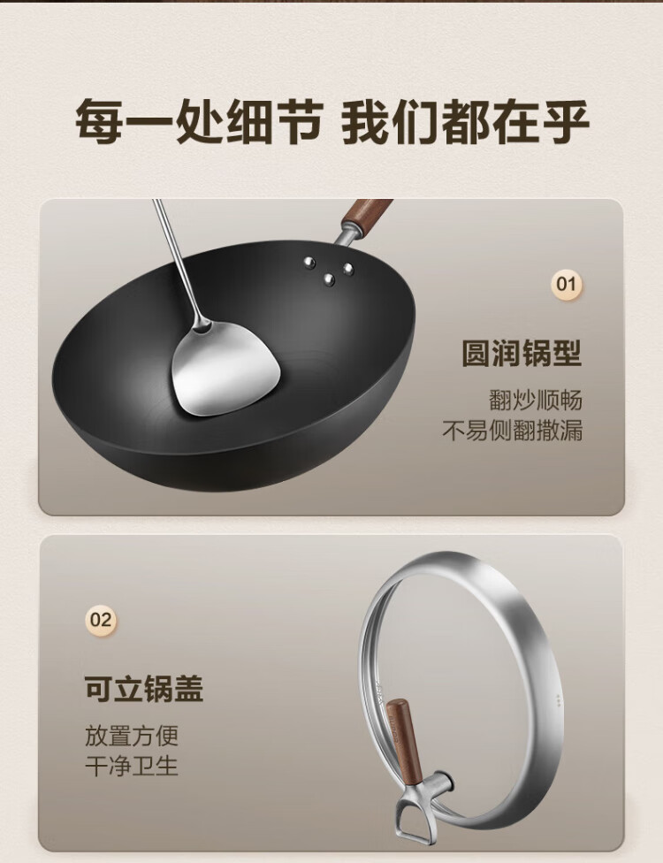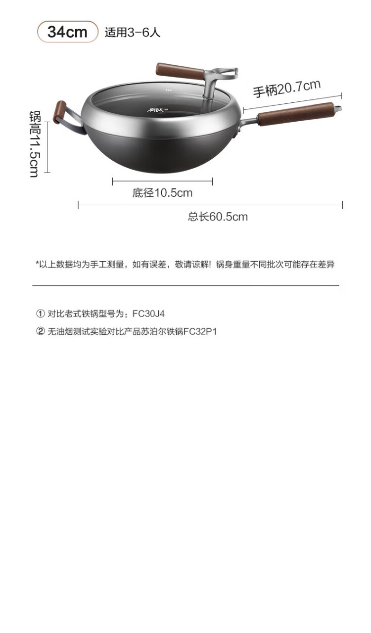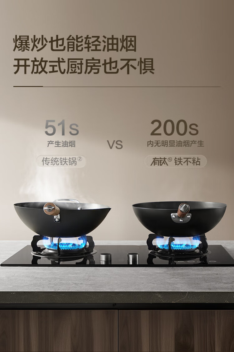 Supor non-stick iron pan with titanium iron non-stick uncoated wok with less oil fume 32cm gas induction cooker universal CC32YT1