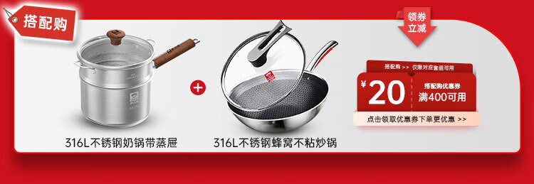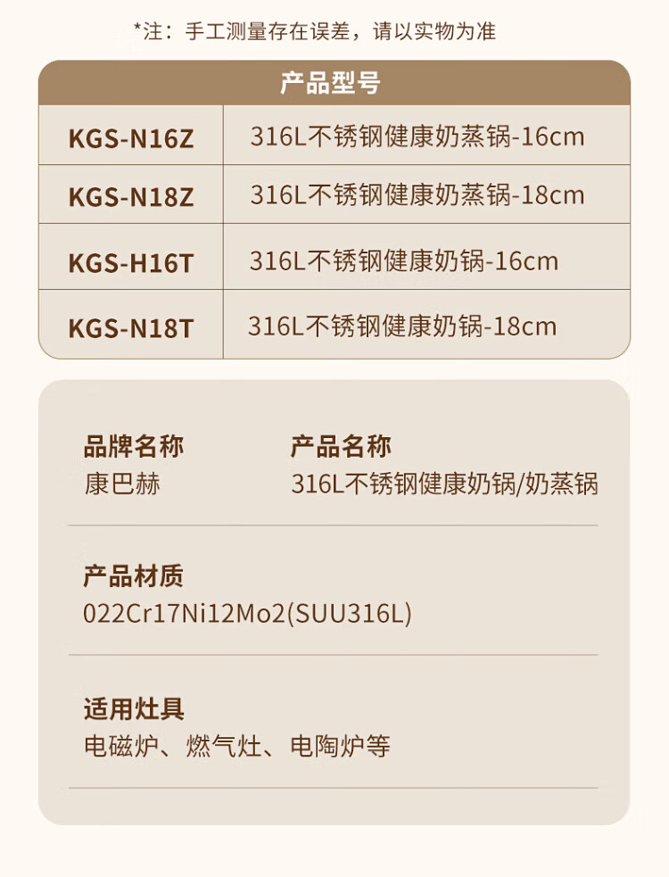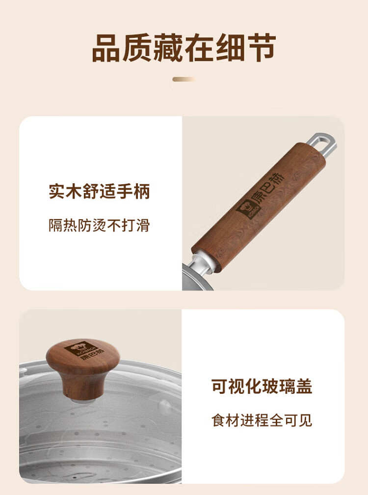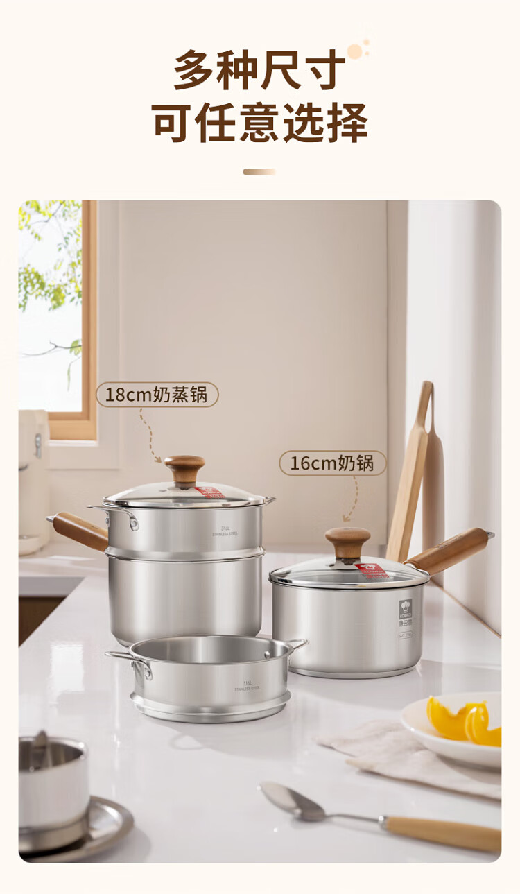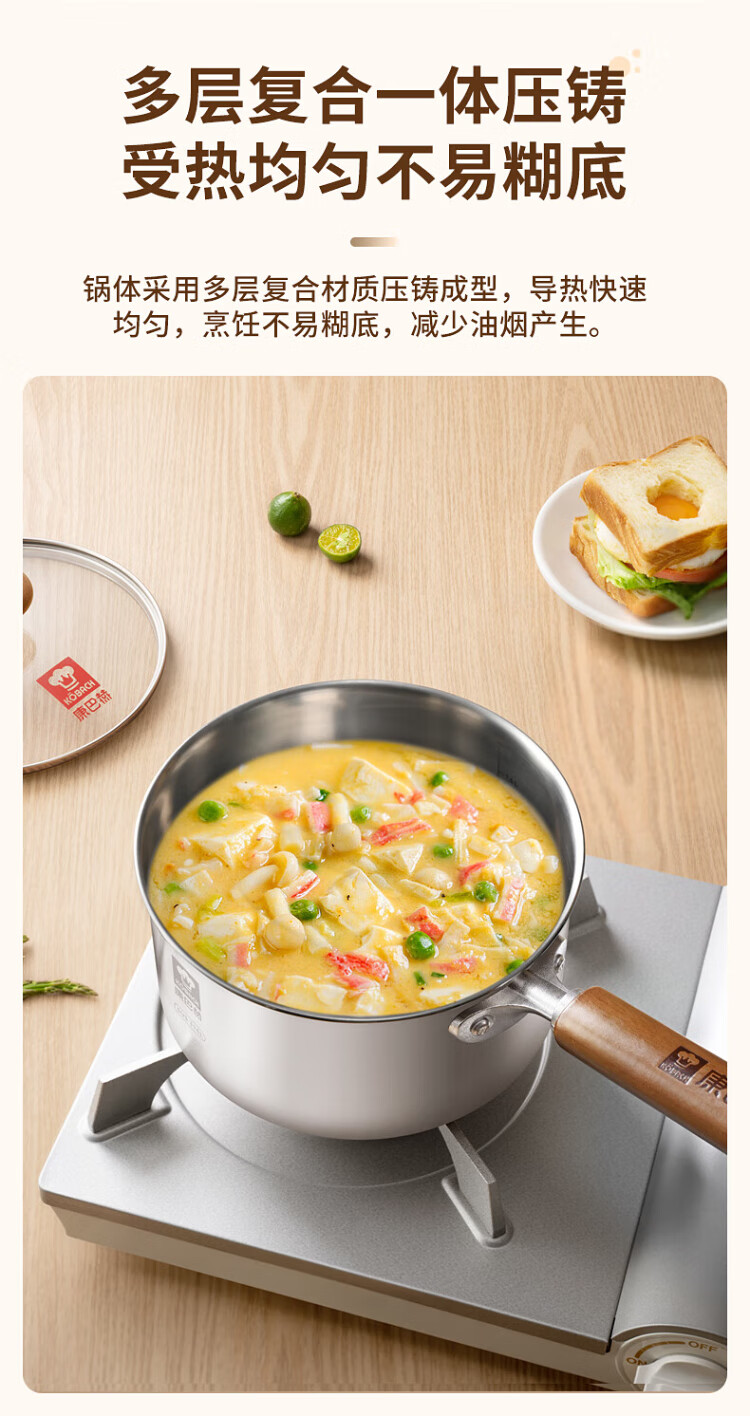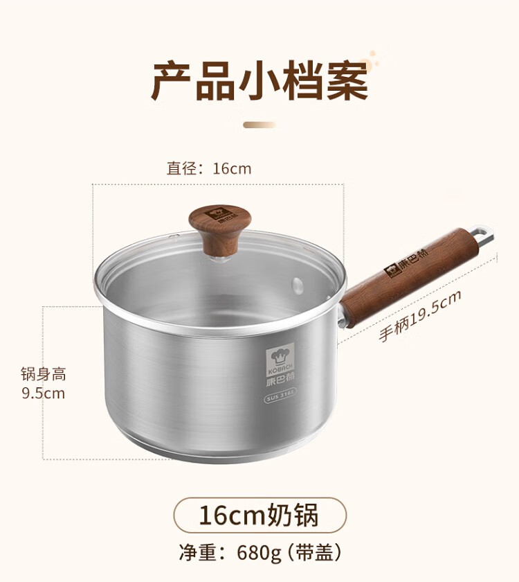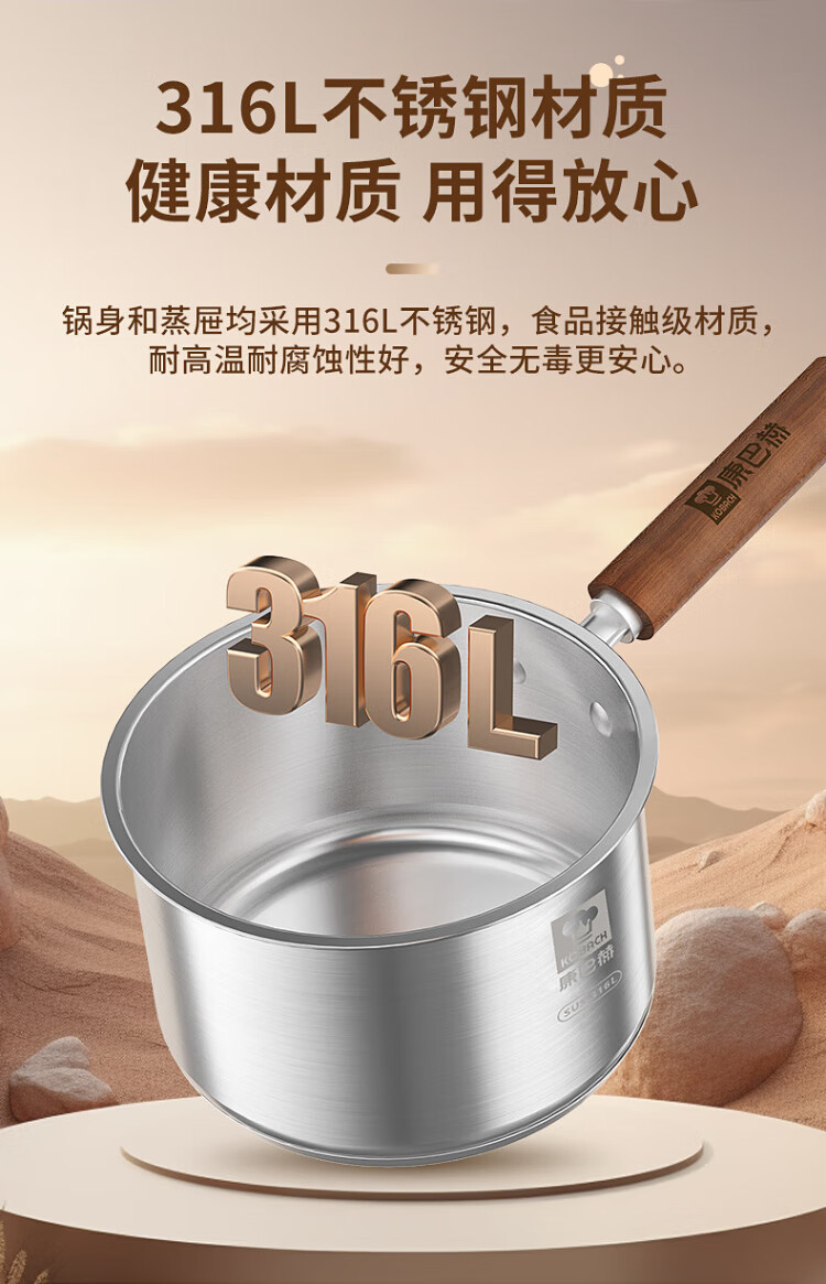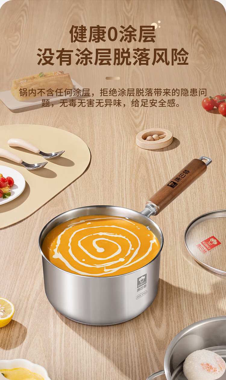 Konbach (KBH) 316L stainless steel milk pot baby food supplement pot with steamer baby frying all-in-one small milk pot noodle pot 18cm