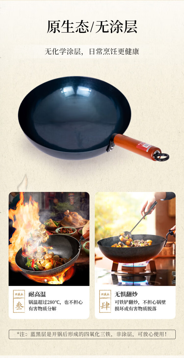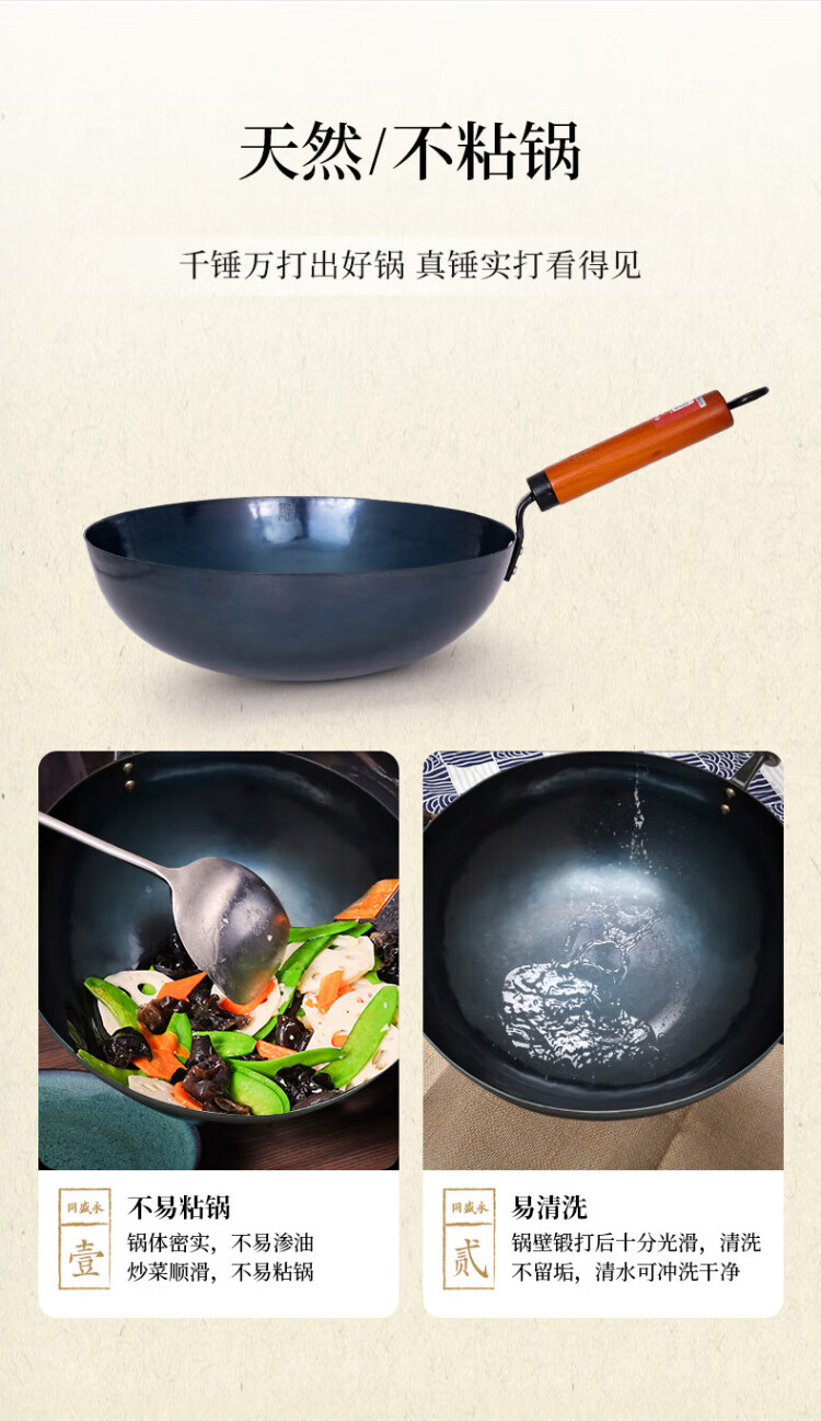 Zhangqiu Iron Wok JD.com limited edition Chinese hand-forged physical non-stick wok wrought iron wok uncoated iron wok 32cm